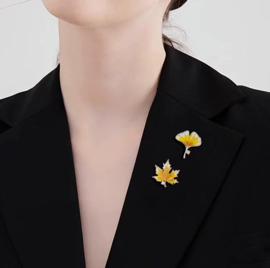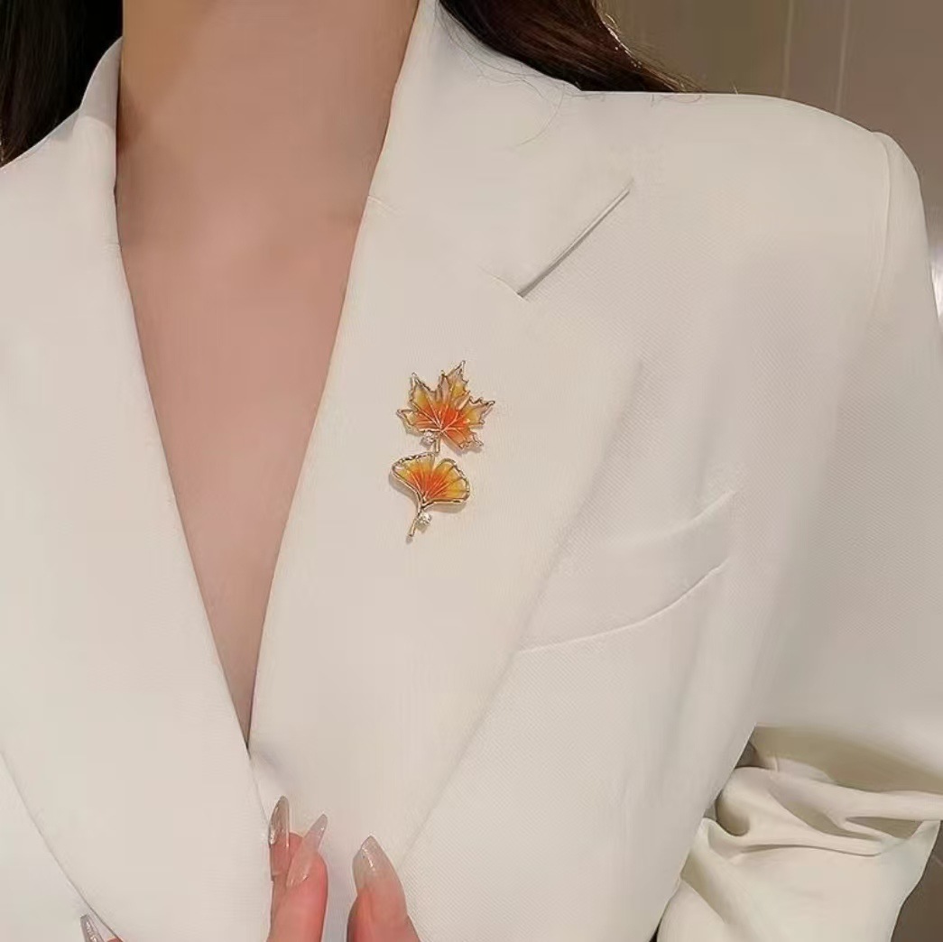 Брошь со стразами в виде кленового и гинкго листьев, нишевый дизайн высококачественного корсажа, элегантный аксессуар-застежка для воротника, предотвращающий обнажение, для костюмов.