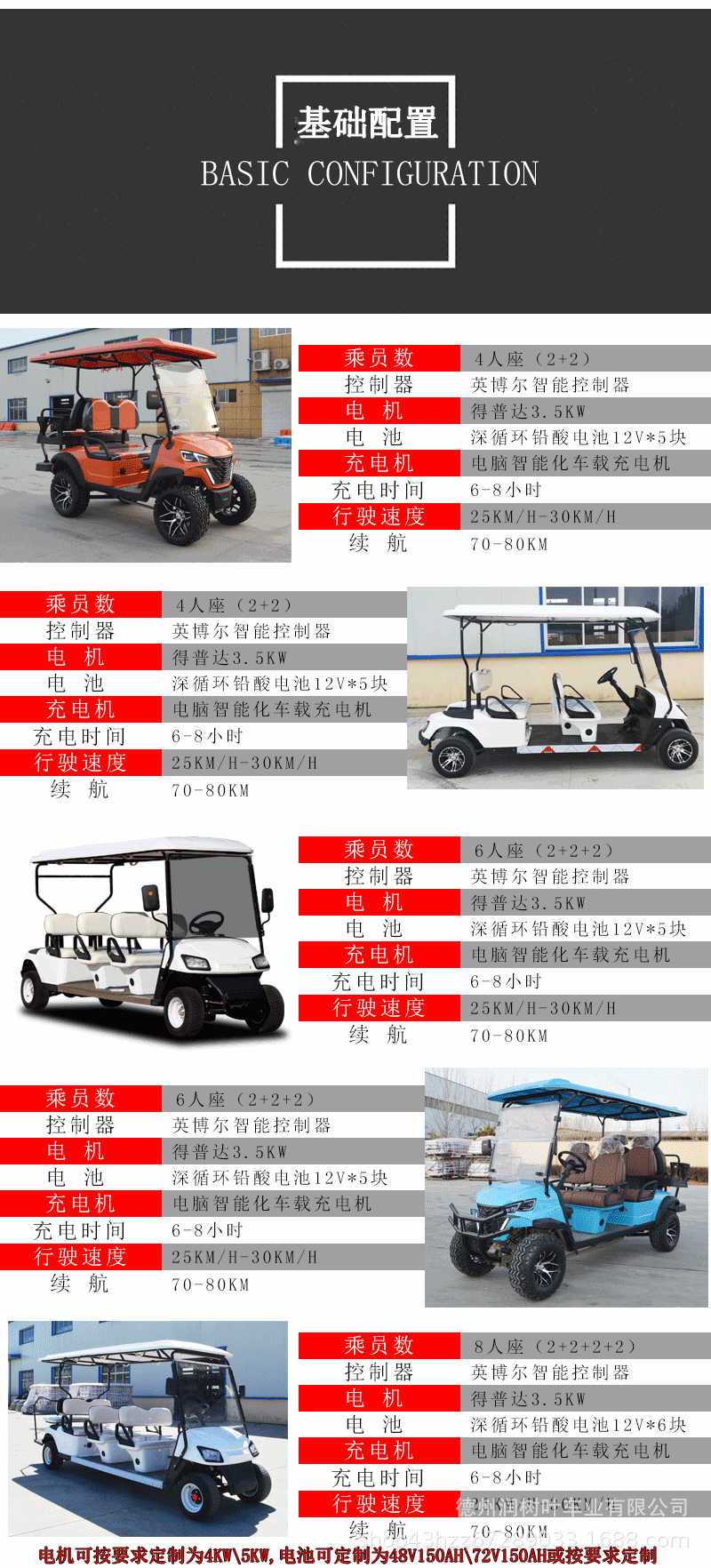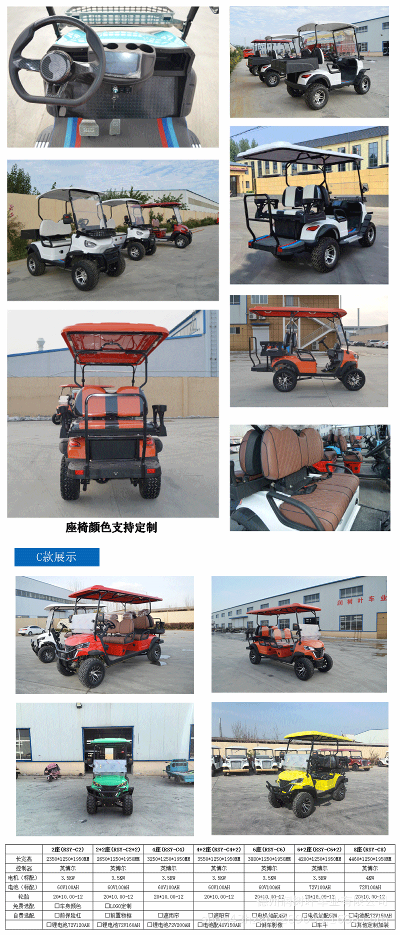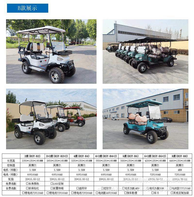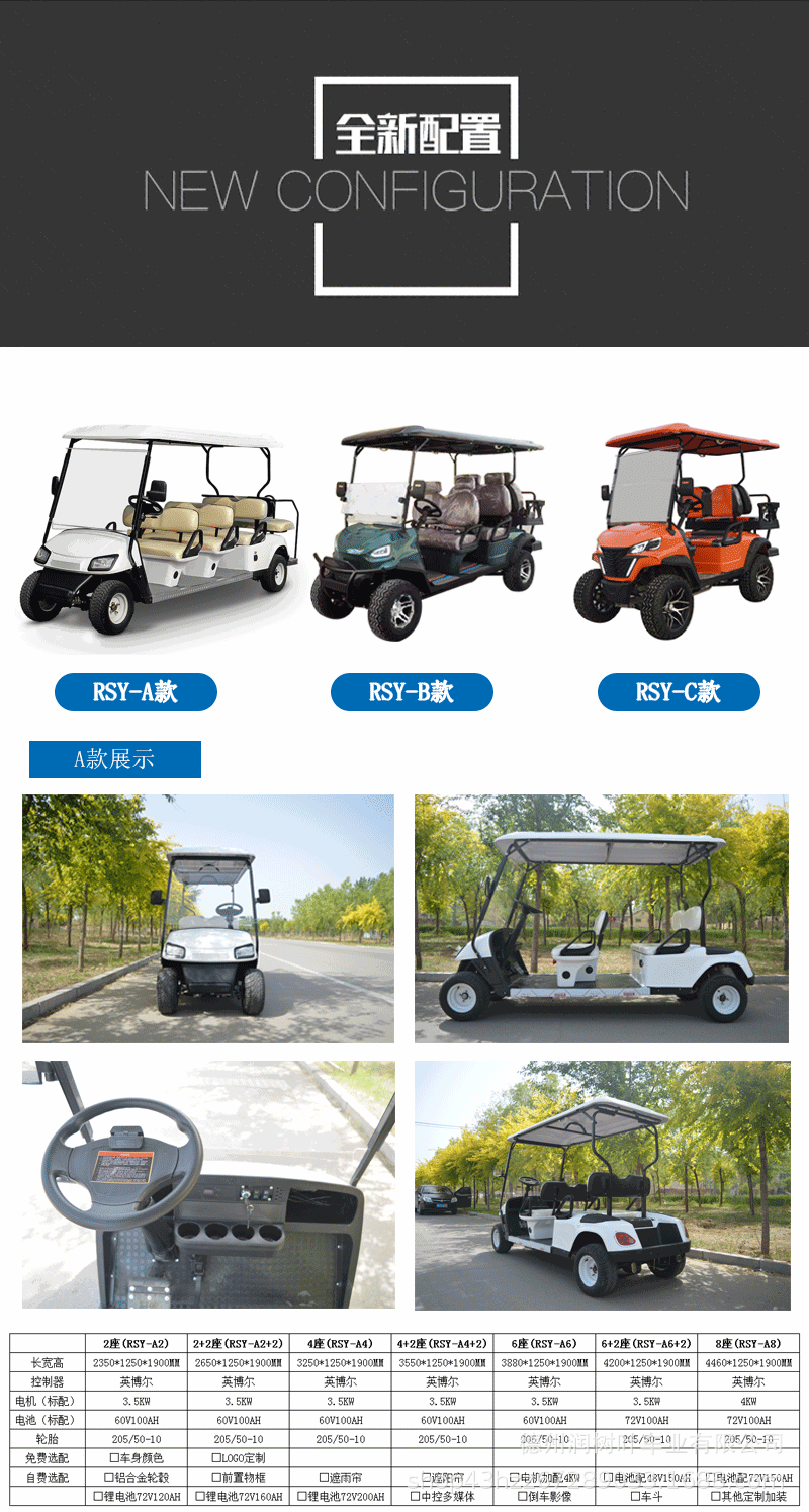 Двухместные и четырехместные электрические гольф-кары, автобусы для трансфера в аэропорт, транспорт для ресепшена в курортных зонах, экспортные электрические гольф-кары