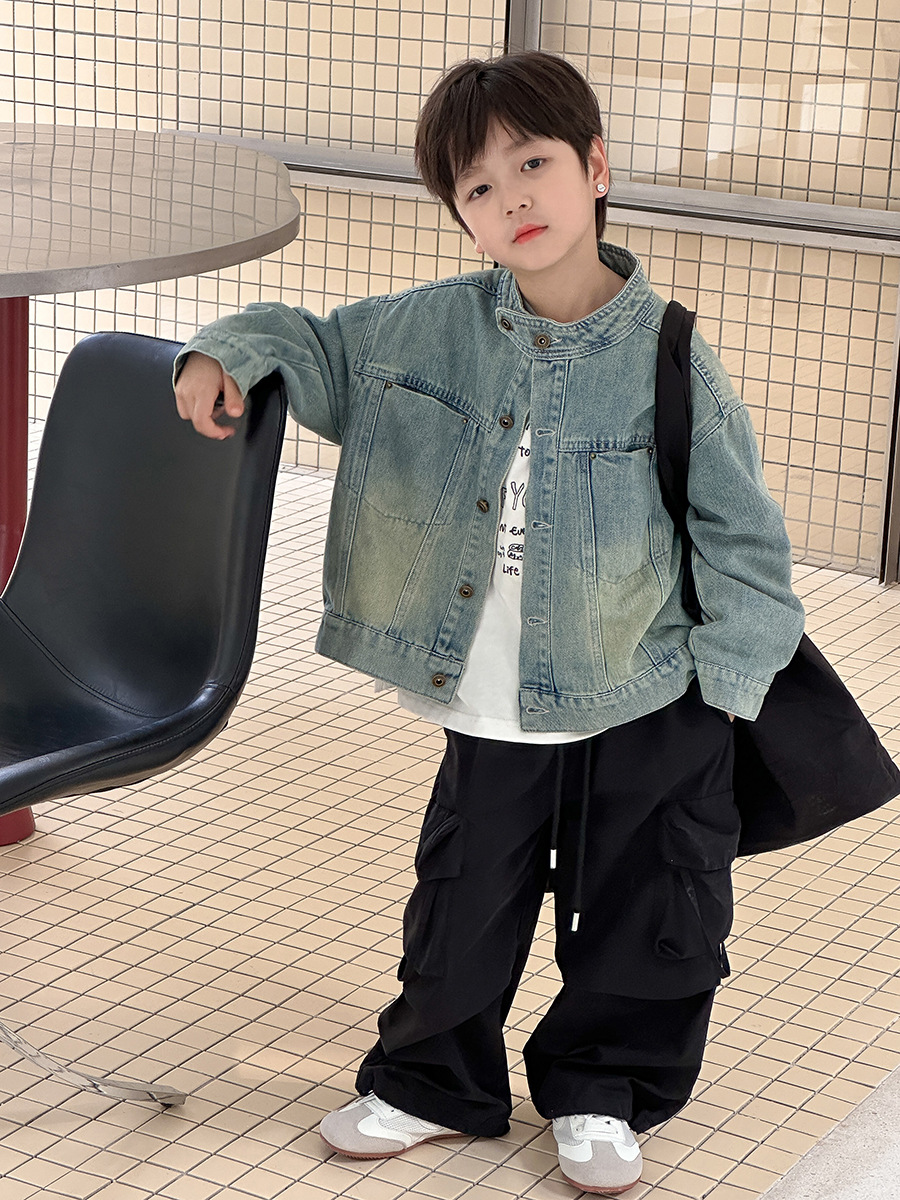 Aimo Bebe детский порт прилив красивый песок, вымытые ретро джинсовые куртки для мальчиков и девочек повседневные короткие воротники