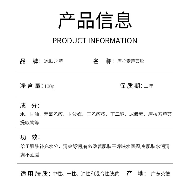 100 г геля с экстрактом ледяной кожи и алоэ вера; 300г геля алоэ вера; 300 г увлажняющий гель из ледяной кожи с экстрактом алоэ вера (классическая версия); 300г розового геля алоэ вера; 30 г освежающего и омолаживающего геля алоэ вера.; 30 г геля с экстрактом ледяной кожи и алоэ вера; 30 г Экстракт ледяной кожи Увлажняющий увлажняющий гель алоэ вера с экстрактом кожи; 30 г Экстракт ледяной кожи Розовый светящийся гель алоэ вера; 30 г Экстракт ледяной кожи Yingrun Гель Алоэ Вера; 30 г Ледяной кожи Прозрачный и успокаивающий гель Алоэ Вера