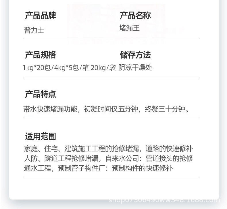 快干水泥防水厂家补漏水不漏 室外1kg堵漏灵堵漏宝速凝型堵漏王