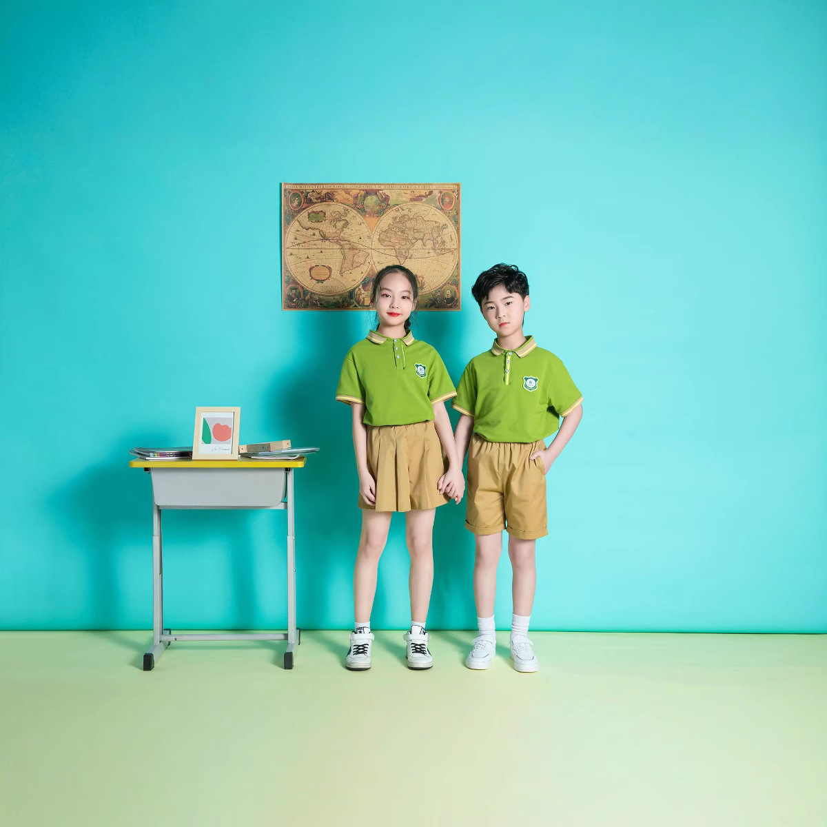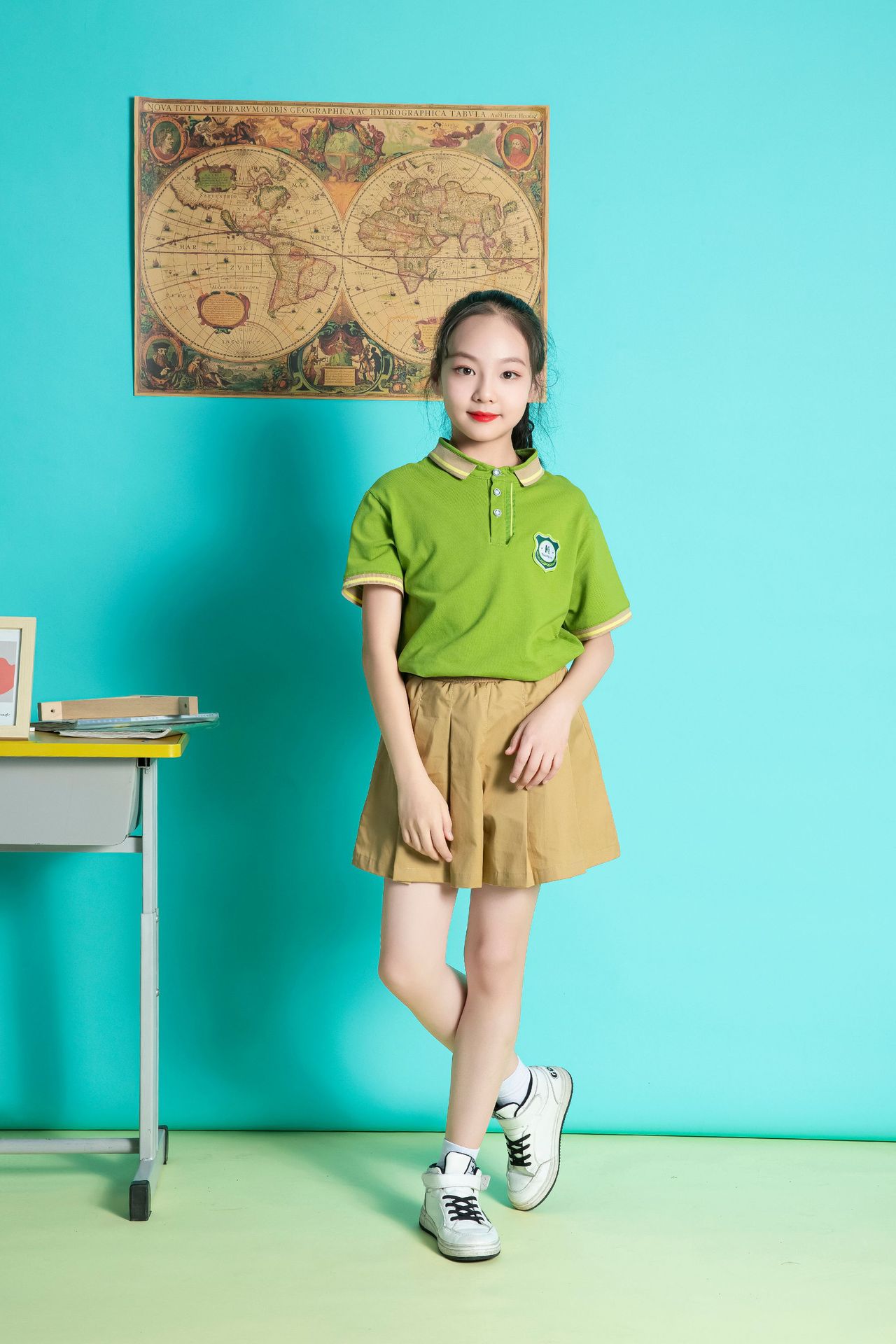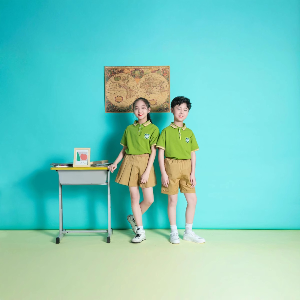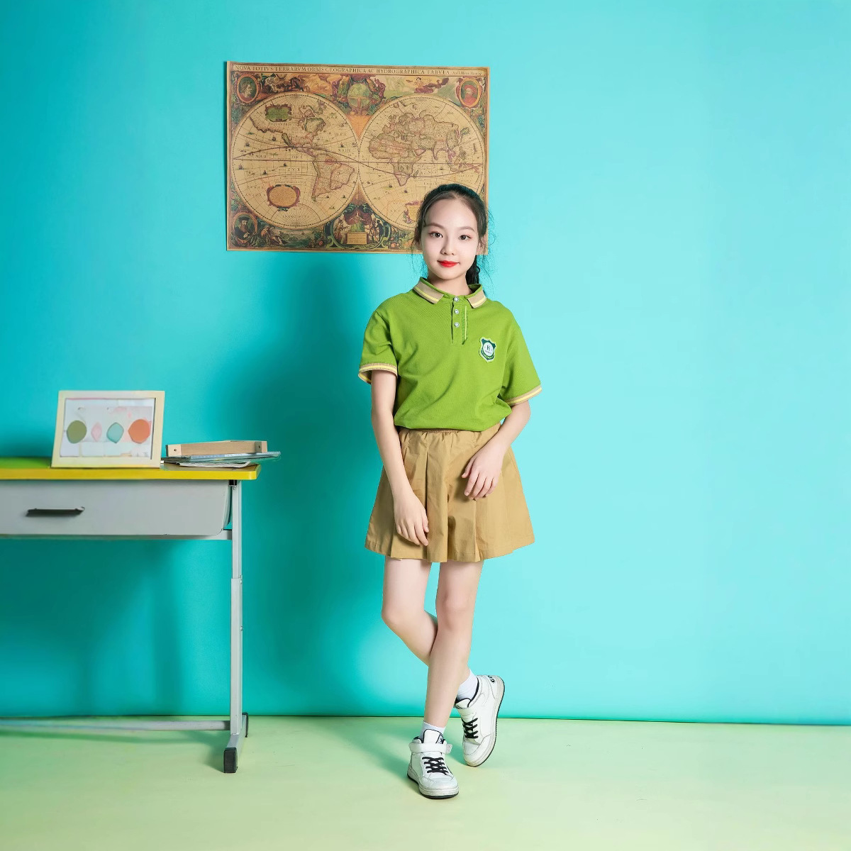 Летний школьный комплект формы для детского сада, цвет авокадо, детский академический костюм из двух предметов: юбка и шорты, в корейском стиле, свежий дизайн.