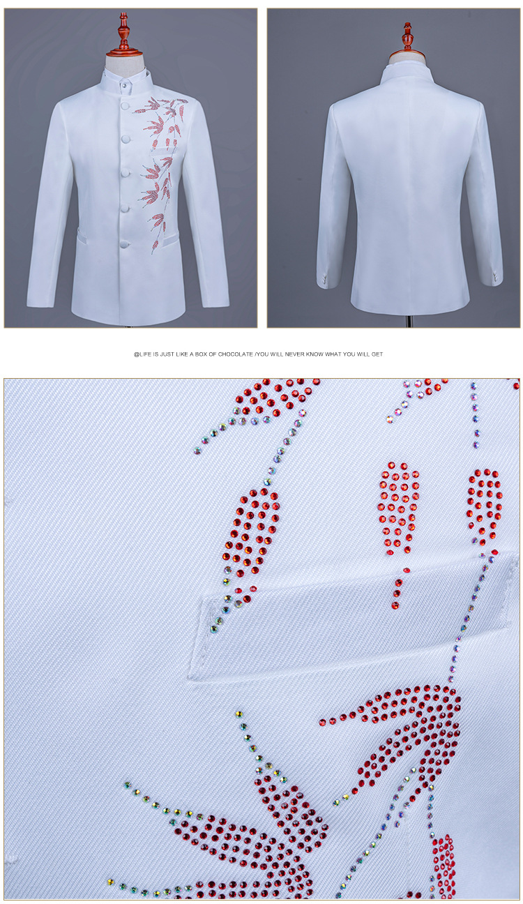 Черно-красная бриллиантовая куртка; Черное озеро, синий бриллиант, верхняя одежда; Бело-красная бриллиантовая куртка; Белое озеро, синее бриллиантовое пальто; Черно-красный бриллиант-куртка + черные брюки; Черное озеро синего бриллианта + черные брюки; Бело-красный бриллиант-куртка + белые брюки; Белый озерно-синий бриллиант-куртка + белые брюки