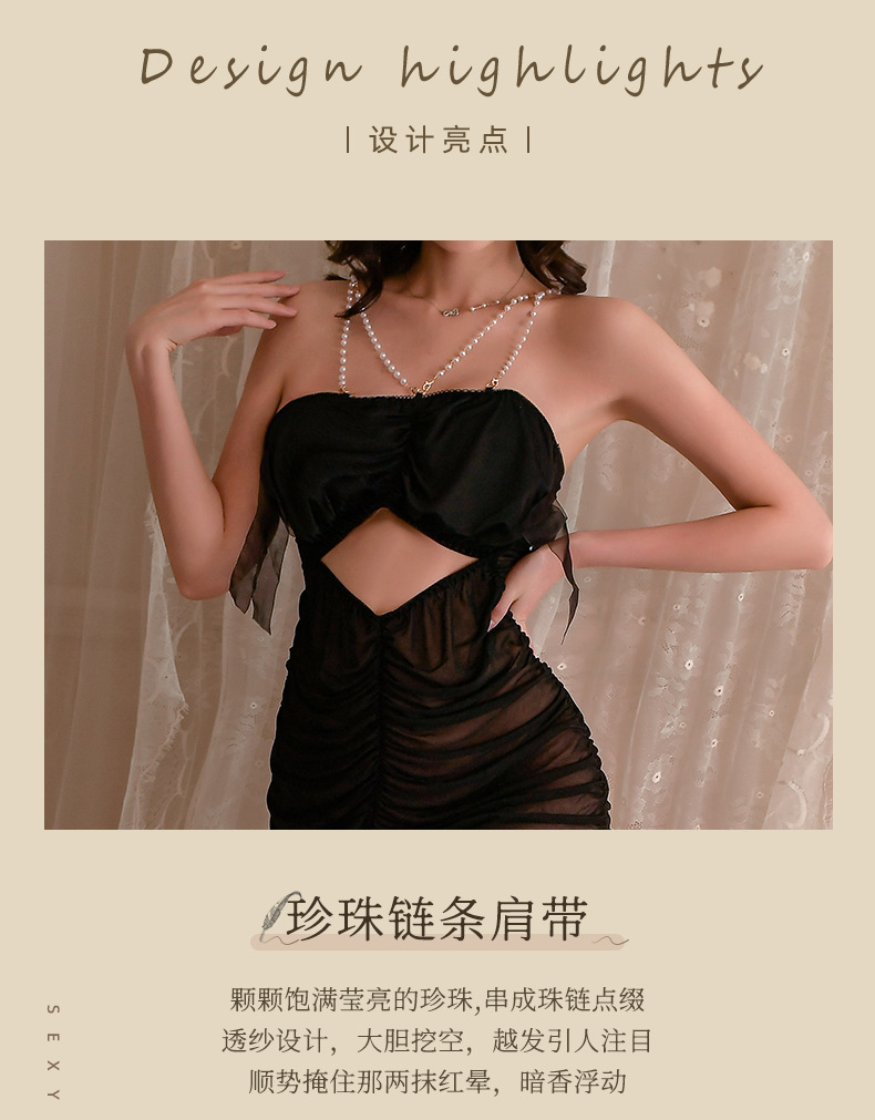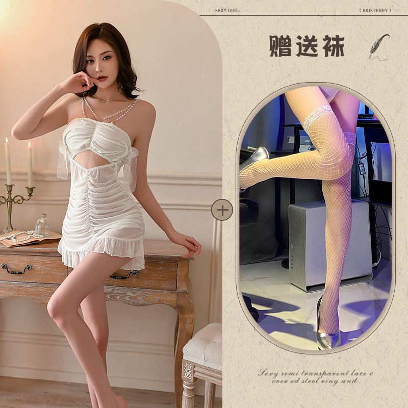 Эротическое сексуальное нижнее белье с жемчужной складкой сетчатая юбка соблазнительная пижама