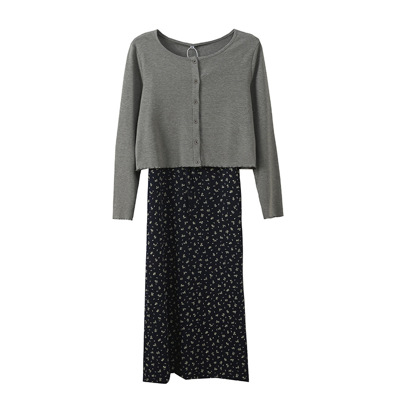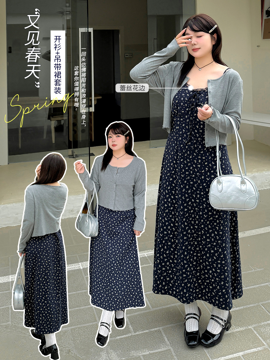 Французский весенний кардиган платье с длинными рукавами женский 2025 новый большой размер женский костюм с цветочным принтом 142077