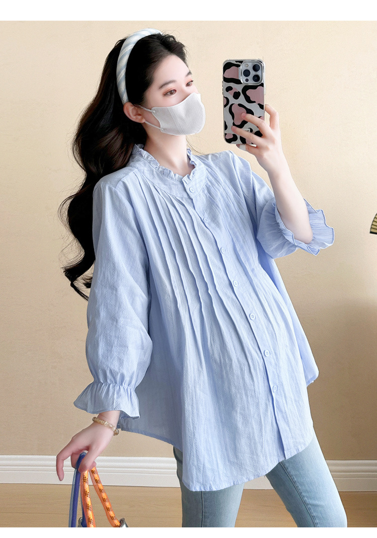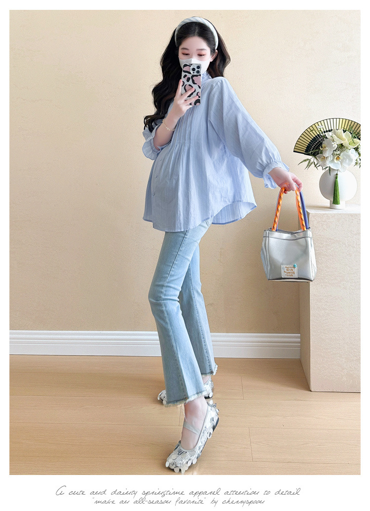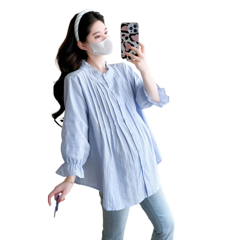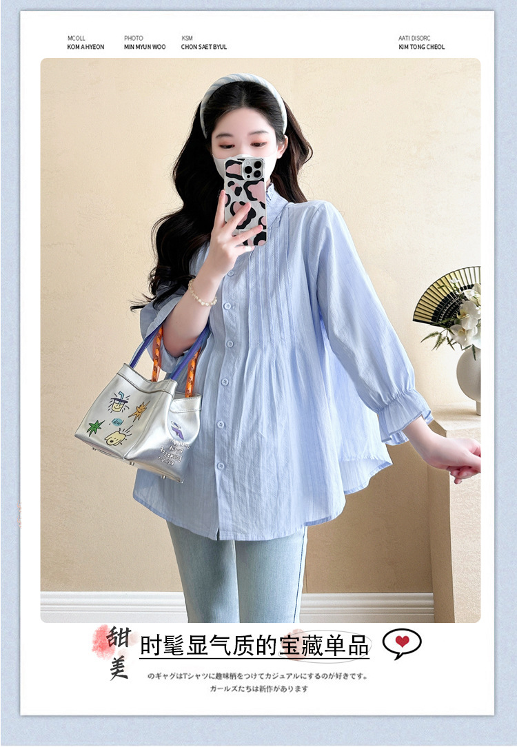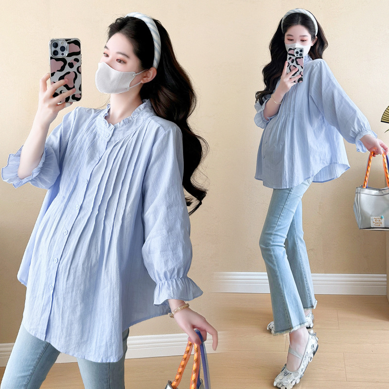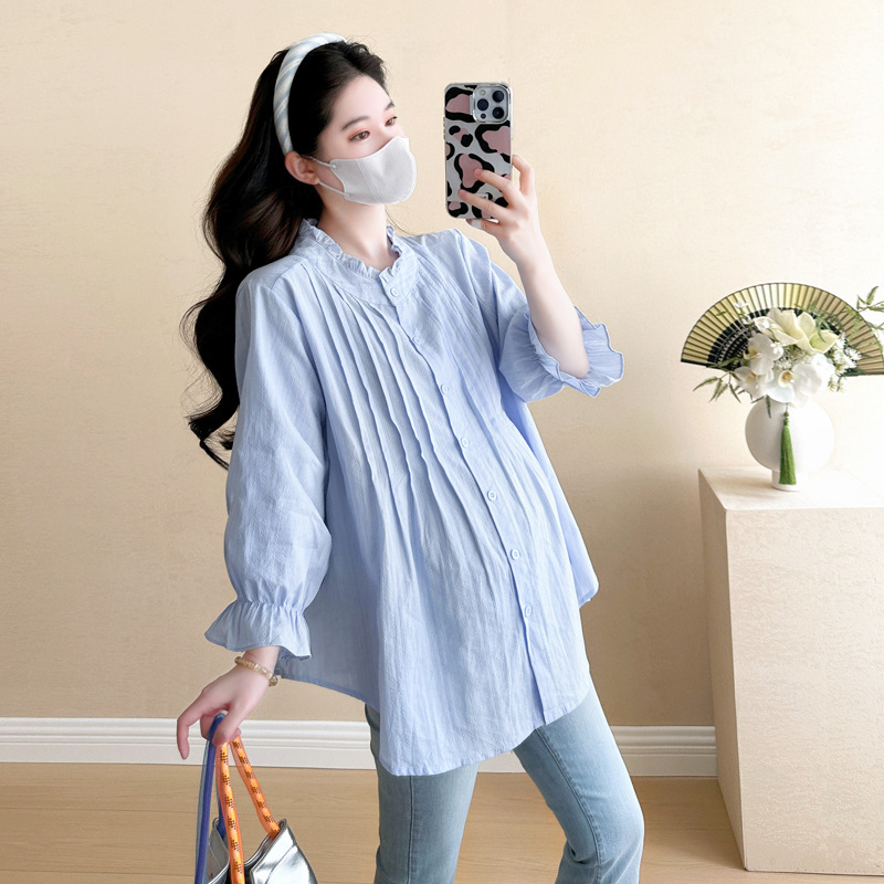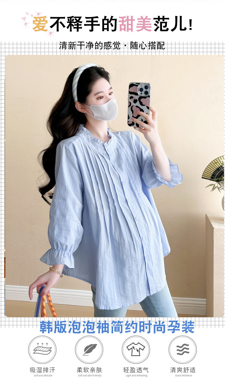 Весенняя одежда для беременных 2025 свежий пузырьковый рукав рыхлый темперамент рубашка для беременных может кормить грудью