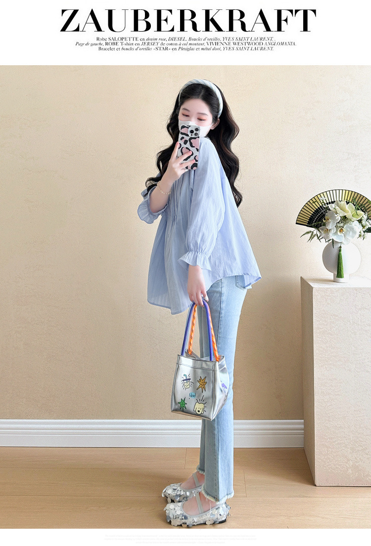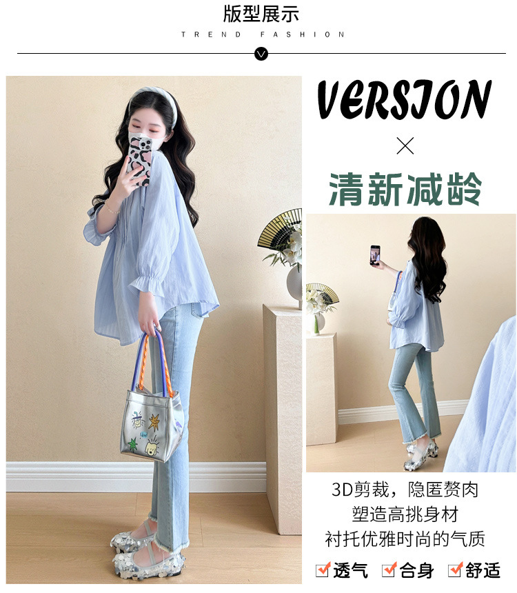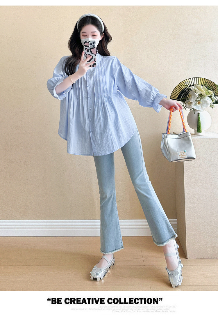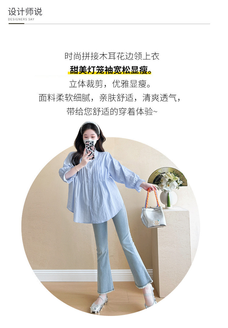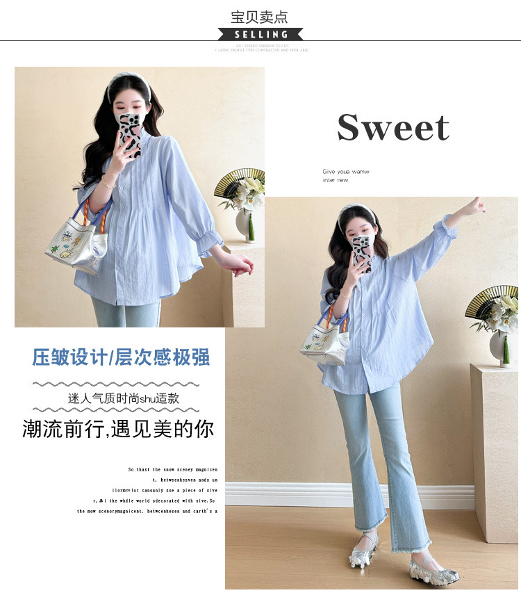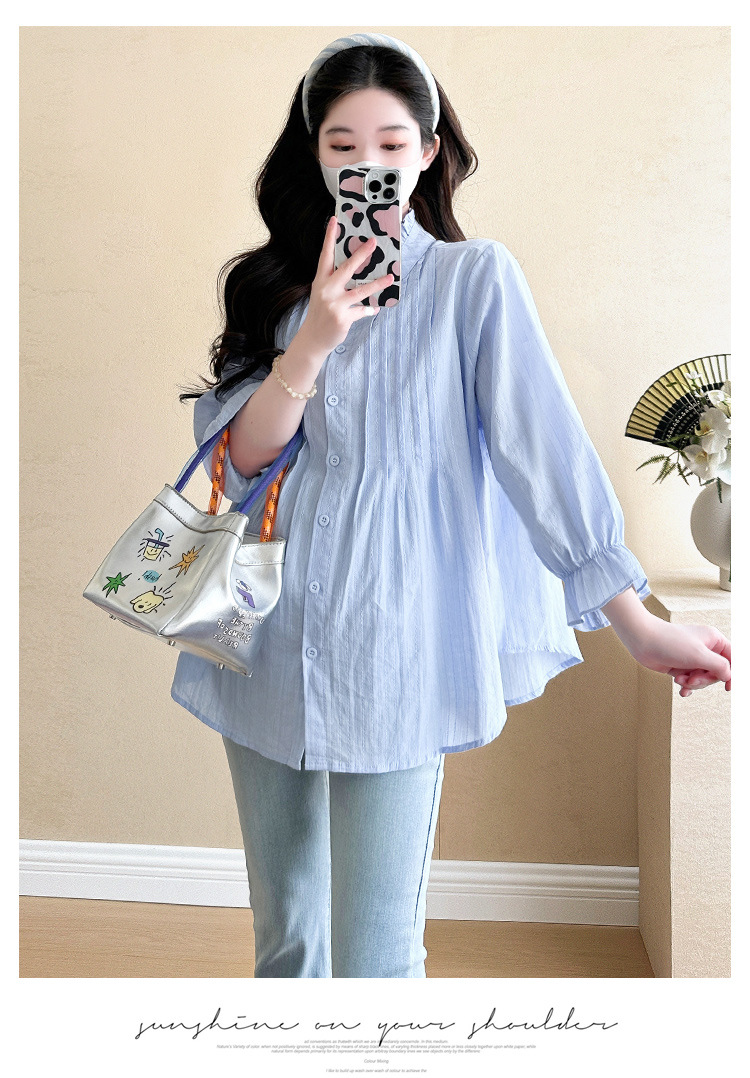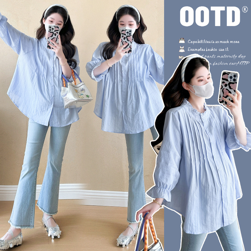 Весенняя одежда для беременных 2025 свежий пузырьковый рукав рыхлый темперамент рубашка для беременных может кормить грудью