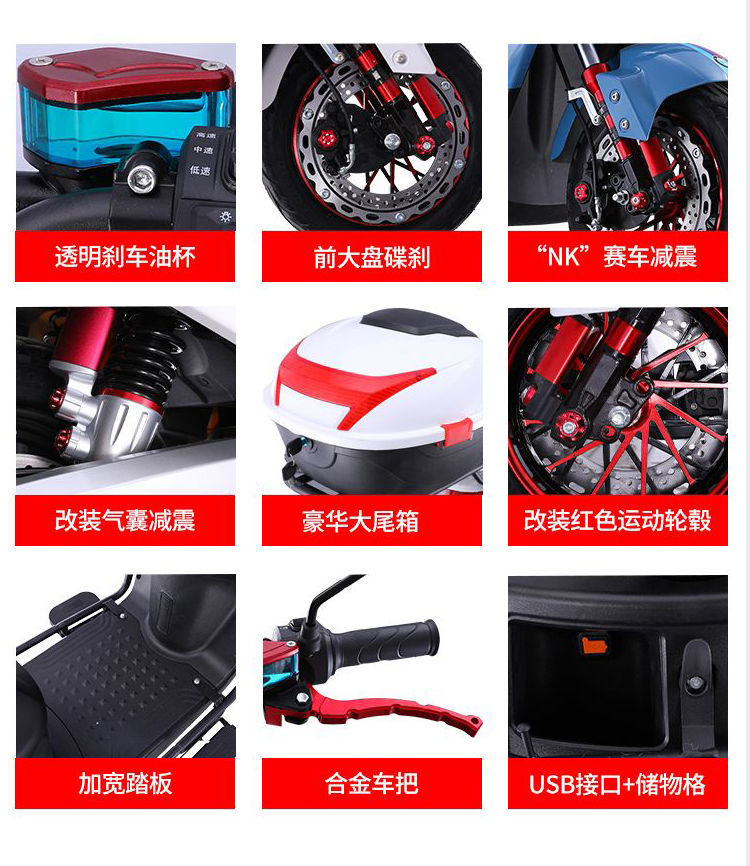 Пять графеновых батарей 60 В + задний ящик с барной стойкой, 24.0 Ач, двойное блюдо, 1500 Вт, работающий королем на большие расстояния; Пять графеновых батарей 60 В + хвостовая коробка баргара, двойной диск 26,0 Ач, 2000 Вт, альпинистская модель; Пять графеновых батарей 60 В + задний барный блок, двойной дисковый тормоз, 38,0 Ач, 3000 Вт, альпинистский король); 72 В, шесть оригинальных графеновых батарей + задний ящик с барной стойкой, 24.0 Ач, двойной диск, 1500 Вт, работающий на большие расстояния; 72 В шесть оригинальных графеновых батарей + задний ящик с барной стойкой, 26,0 Ач, двухдисковая модель, 2000 Вт, альпинистская модель; 72 В шесть оригинальных графеновых батарей + задний ящик с барной стойкой, 38,0 Ач, двойной дисковый тормоз, 3000 Вт, восхождение короля); 96 В восемь оригинальных графеновых батарей + барный хвостовой ящик, 24.0 Ач, двойное блюдо, 1500 Вт, длинный альпинистский король; Осемь оригинальных графеновых батарей 96 В + задний ящик, двойной диск 26,0 Ач, подъемная модель 2000 Вт; Осемь оригинальных графеновых батарей 96 В + задняя коробка, двойной дисковый тормоз 38,0 Ач, 3000 Вт, восхождение короля); Весь автомобиль не имеет силовой версии – установите аккумулятор самостоятельно.