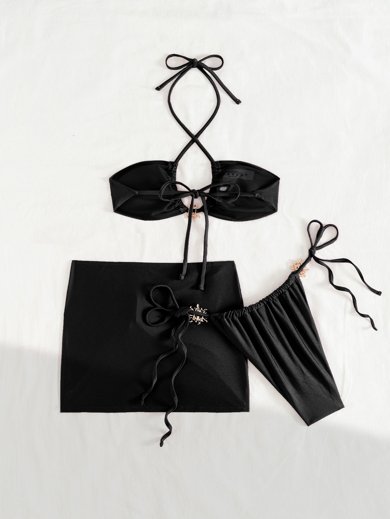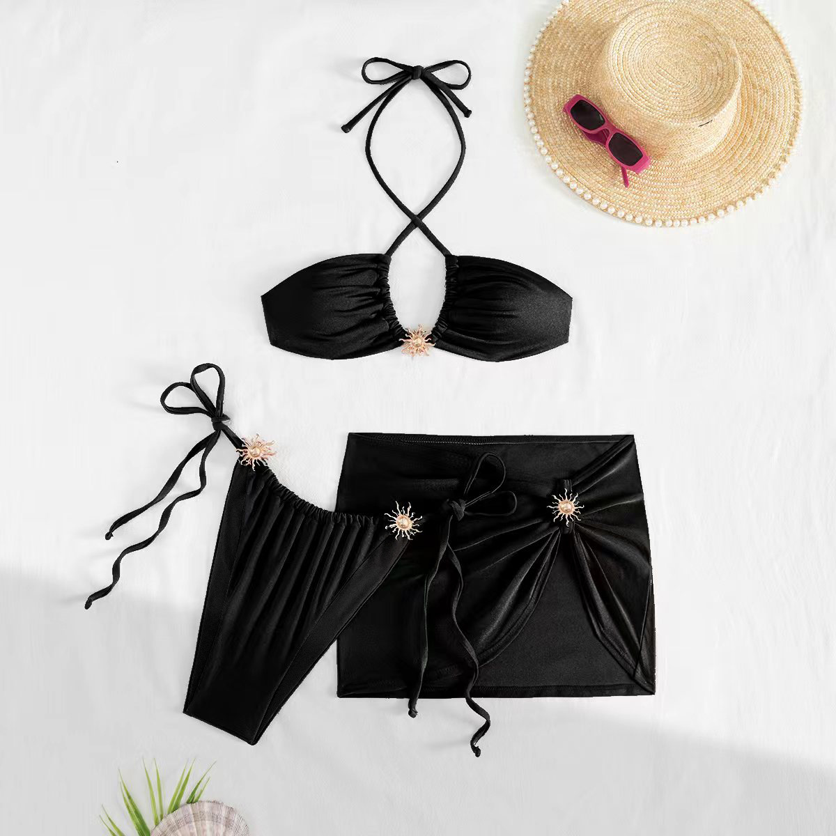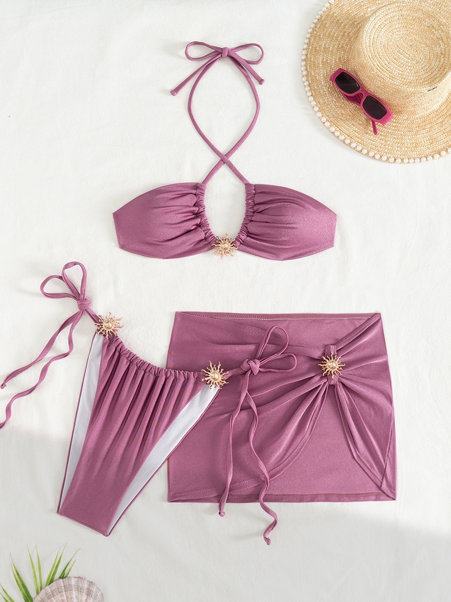 2025 купальник Европейская и американская внешняя торговля новый купальник из трех частей сплошной цвет сексуальный купальник бикини женский bikini
