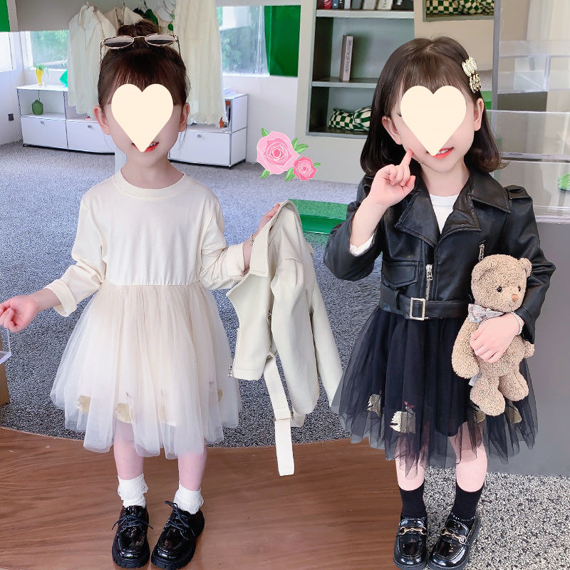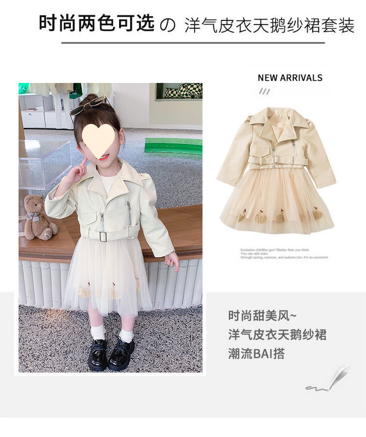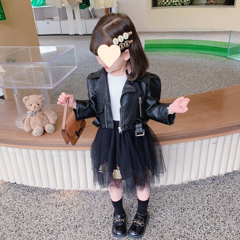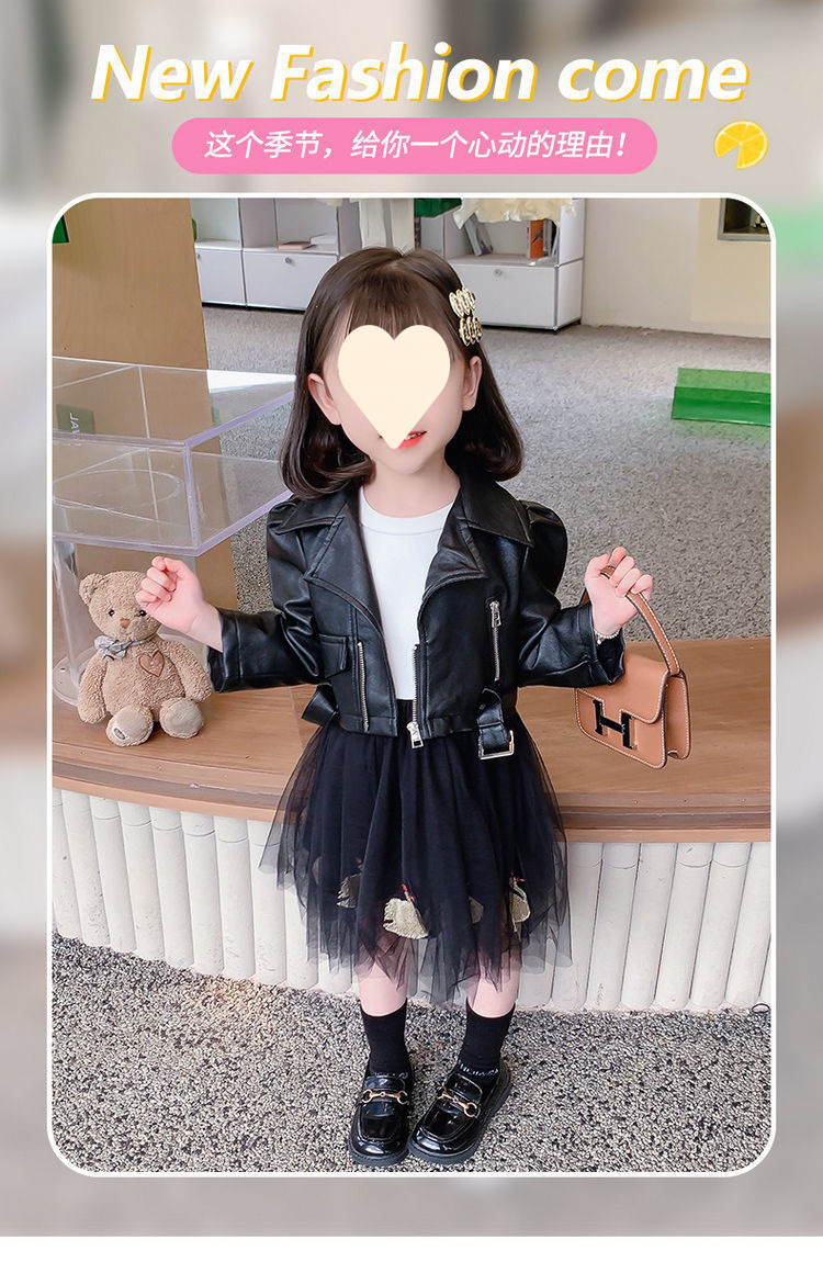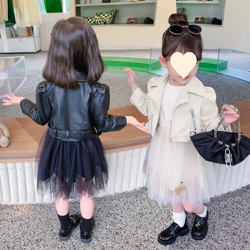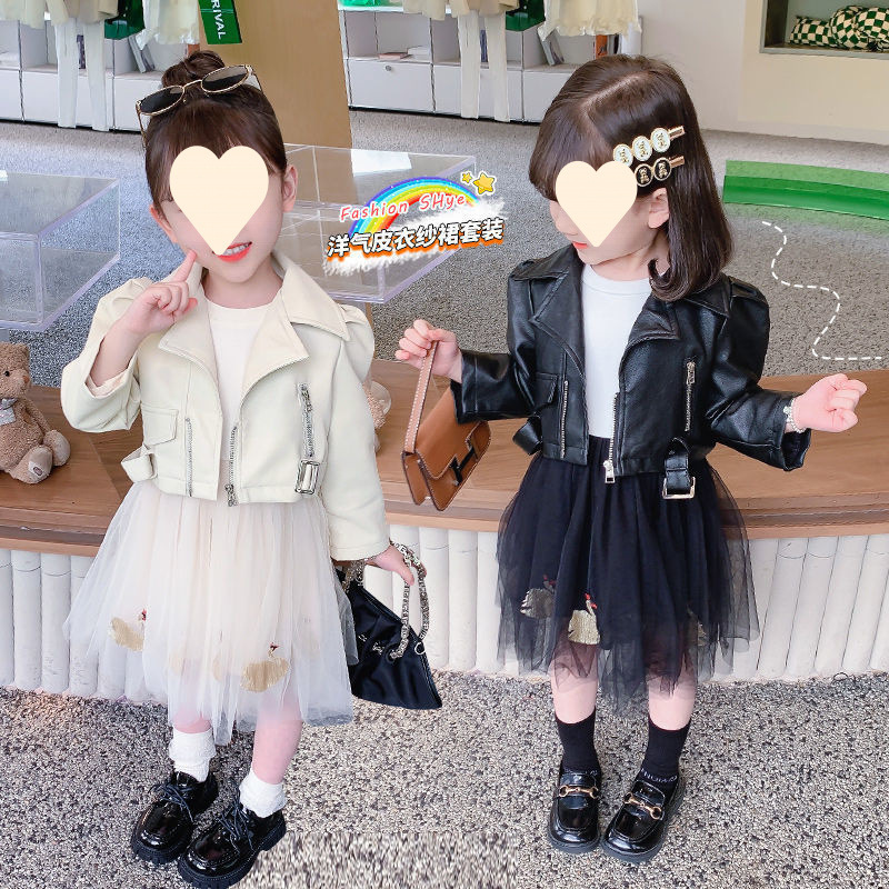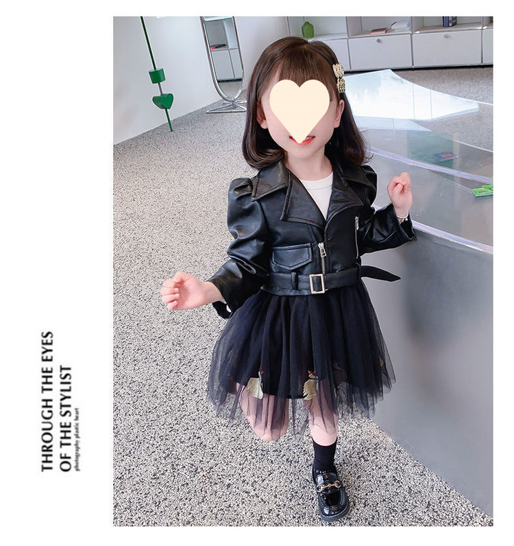 Девушки Весенний и Осенний костюм Платье Маленькая девочка зазорная сетка красная кожаная куртка из двух частей Детская осенняя мотоциклетная кожаная куртка