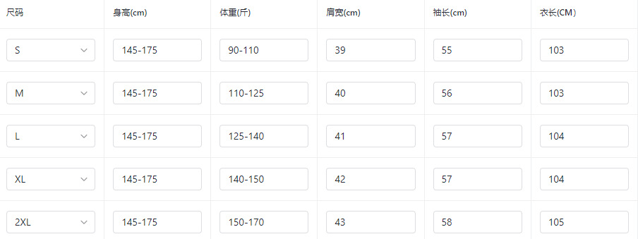 S( 45-55kg ); М( 55-62.5kg ); Л( 62.5-70kg ); XL( 70-75kg ); 2XL( 75-85kg )