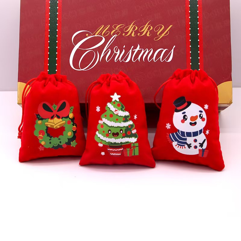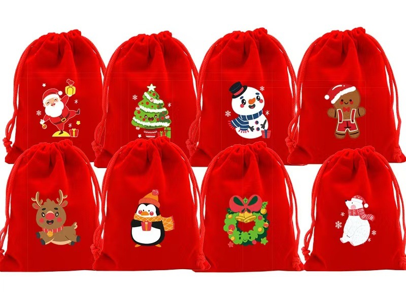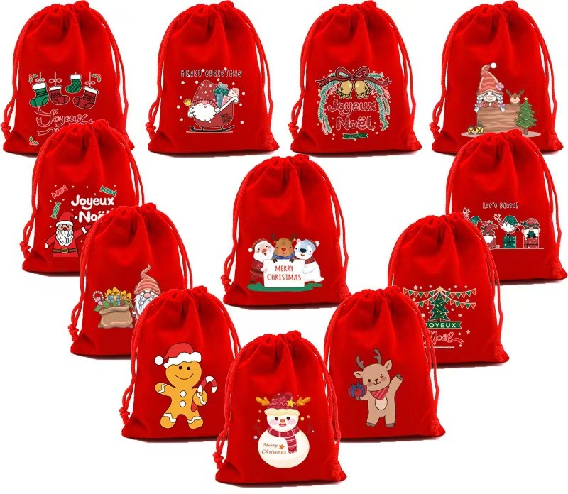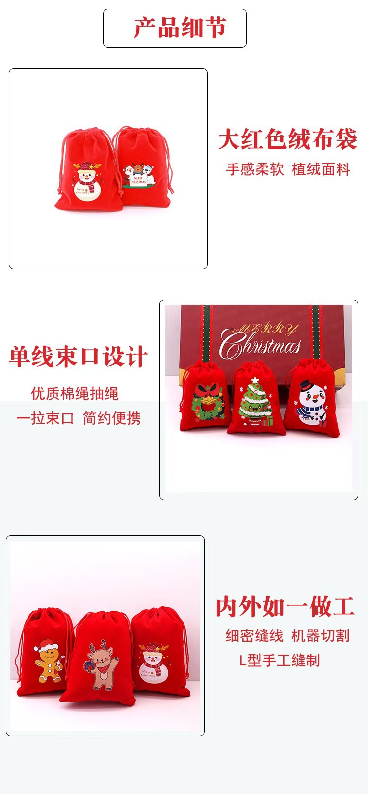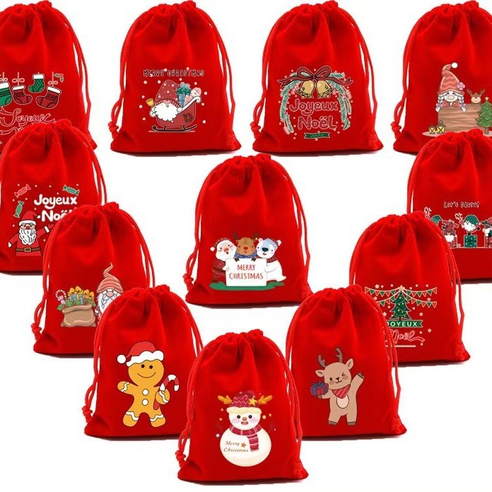 Новые горячие продажи рождественские большие красные фланелевые карманы рождественские яблоки конфеты подарочные веревки для хранения мешков в наличии