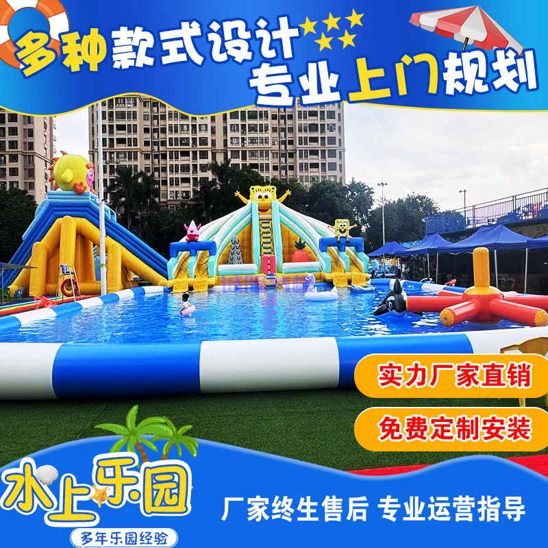 Большой аквапарк оборудование мобильный кронштейн бассейн надувной детский водный горка комбинированный кронштейн бассейн