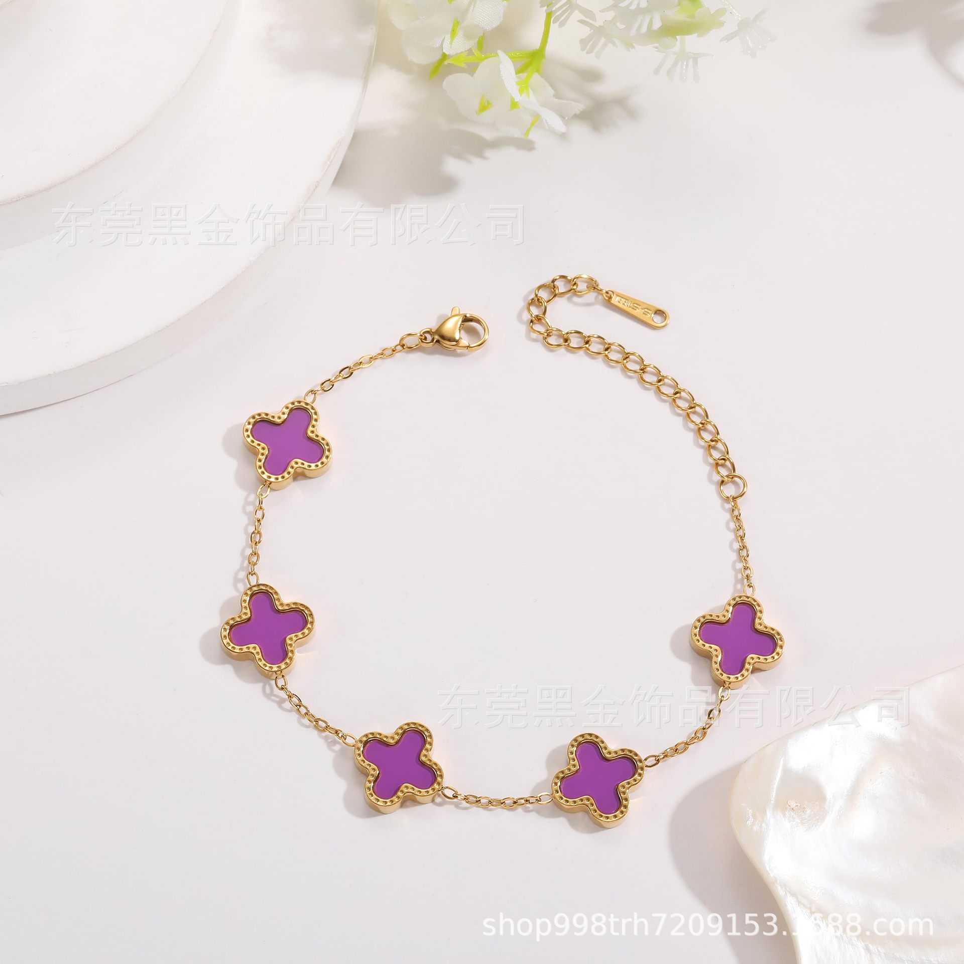 Амазонка BS титановая сталь четырехлистный плоский браслет 18K черный/белый/золотой/комбинированный четырехлистный браслет ювелирные изделия оптом
