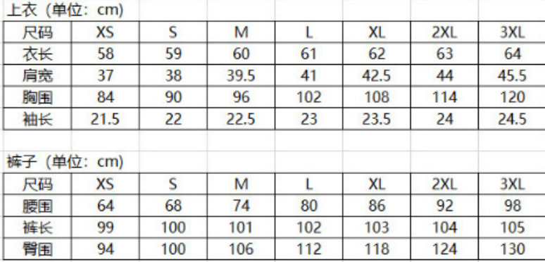 XS; S; M; L; XL