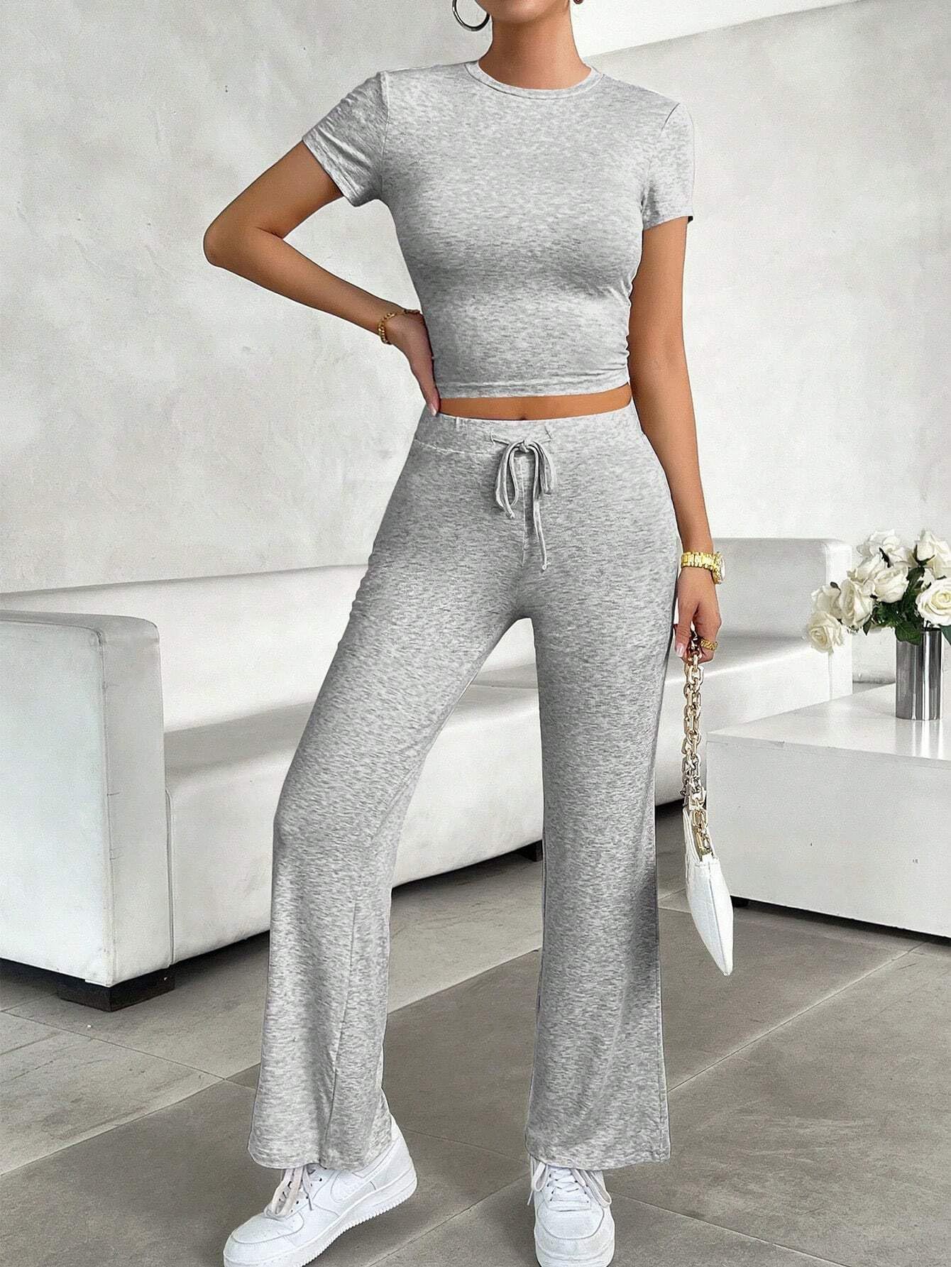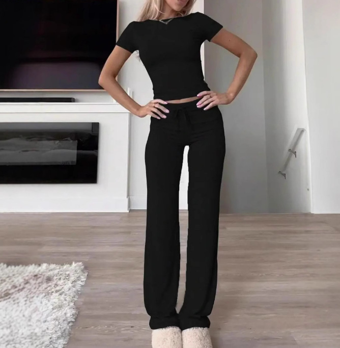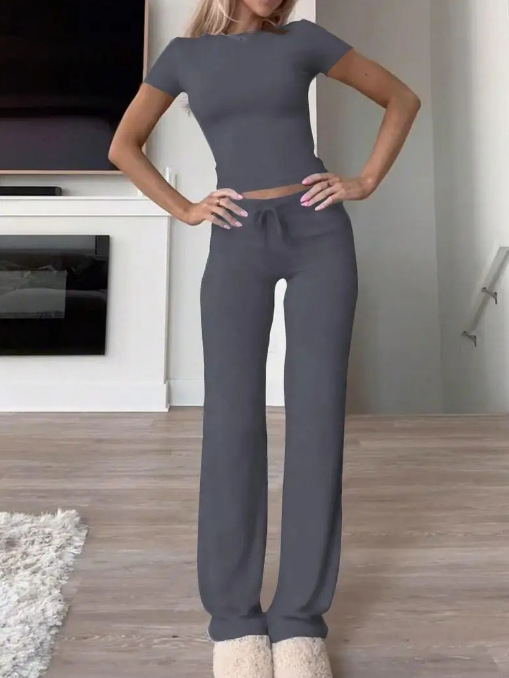 Весенняя трансграничная женская одежда 2025 года Amazon горячие продажи сплошные брюки с короткими рукавами повседневная мода из двух частей