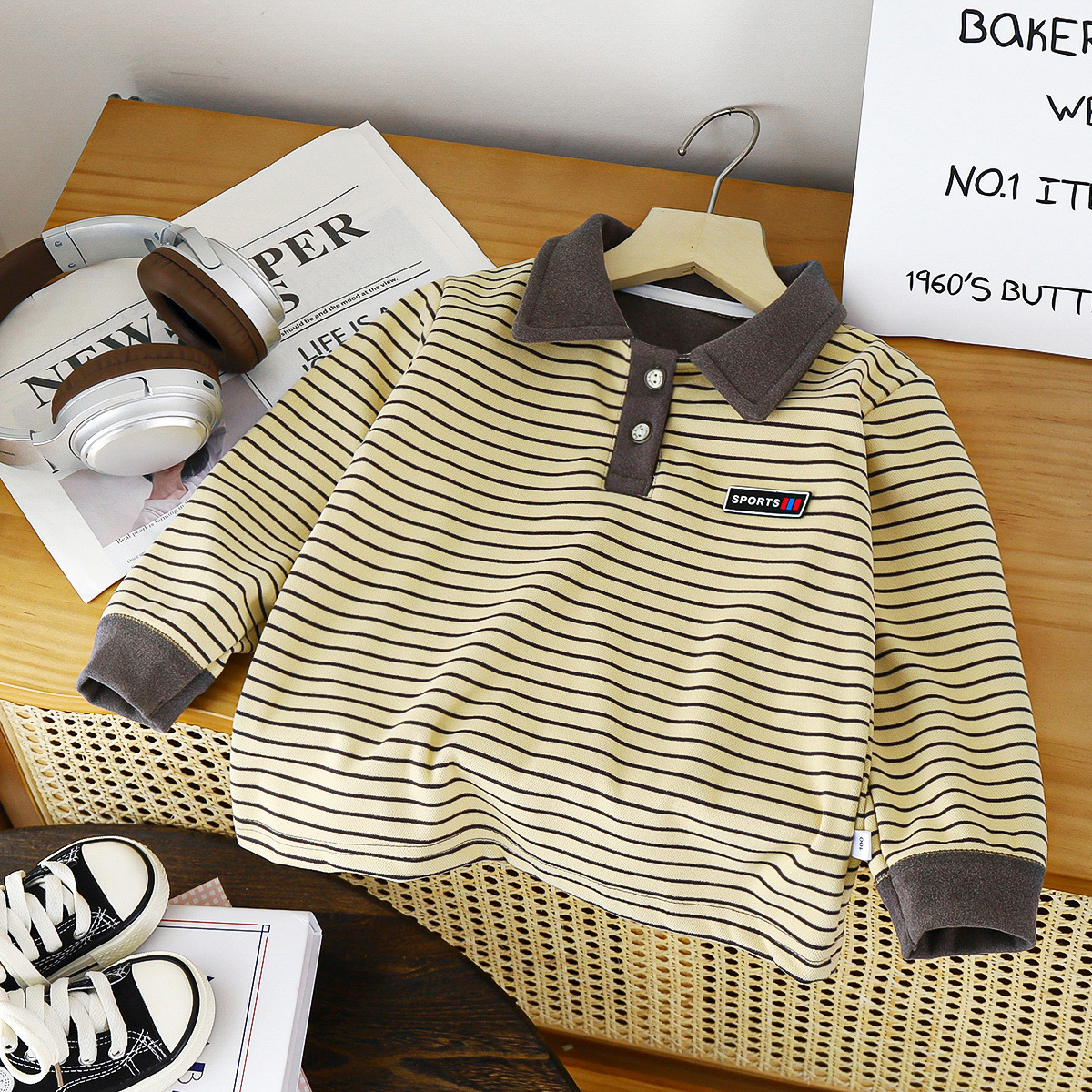 Весенняя и осенняя детская нижняя рубашка 2025 года рубашка Derong Polo рубашка новая полосатая рубашка свободная рубашка с опрокидкой