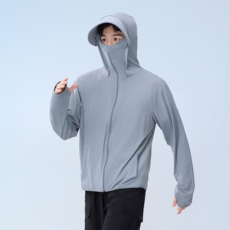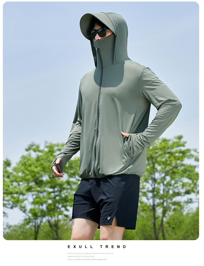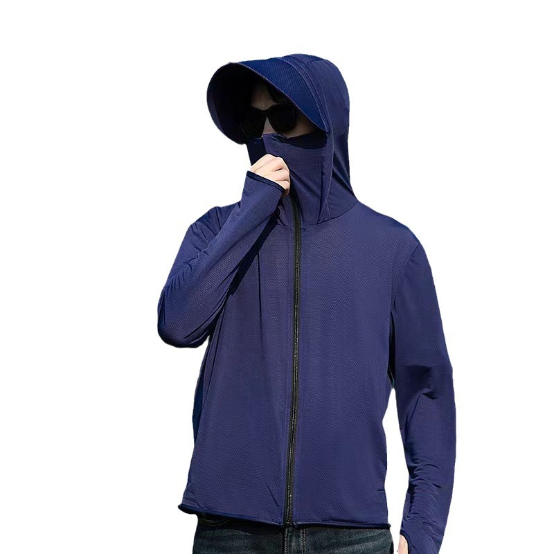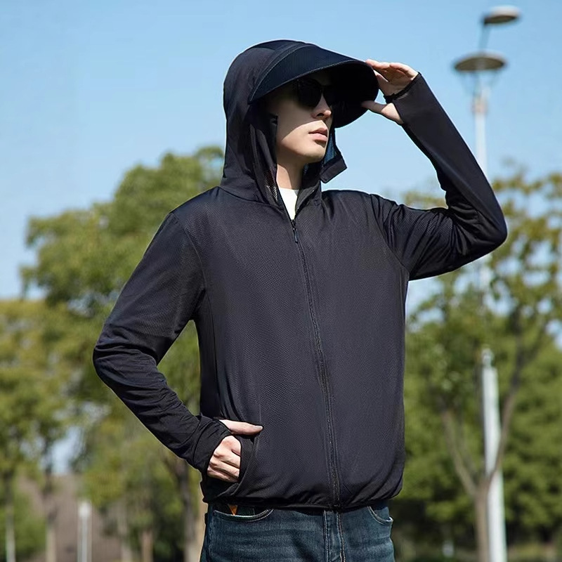 2025 Новая уличная одежда из ледяного шелка, оригинальная пряжа, солнцезащитная одежда, мужская одежда для рыбалки, дышащая одежда с капюшоном и защитой от УФ-лучей, оптовая продажа