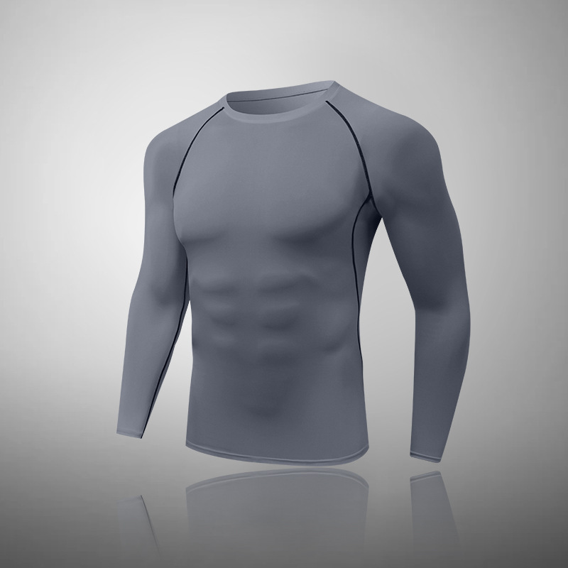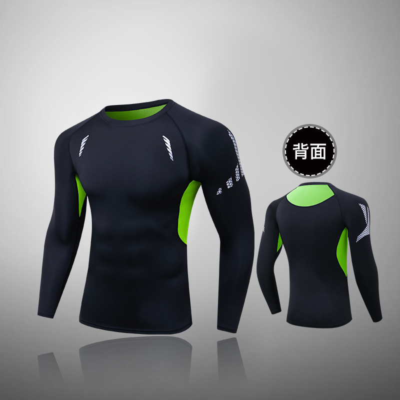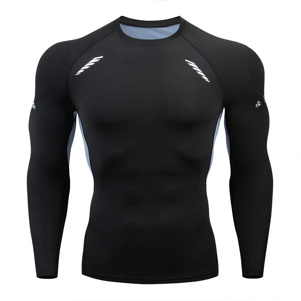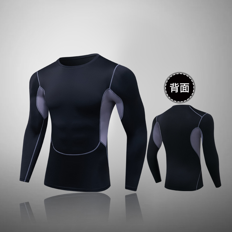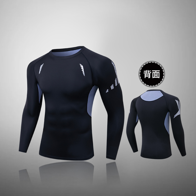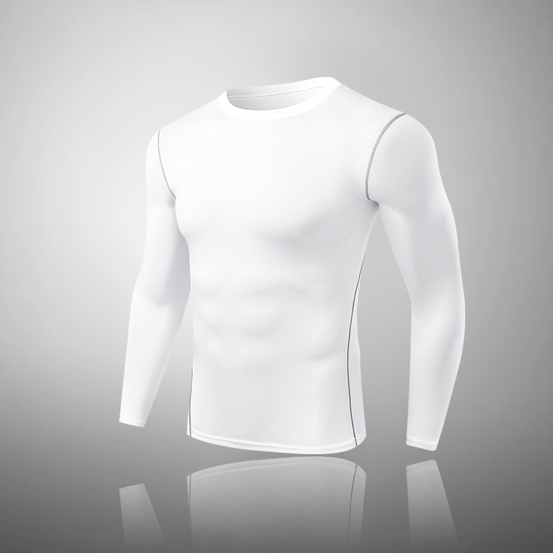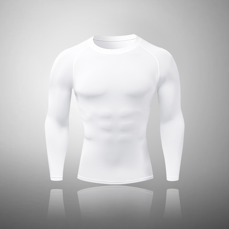 Пятно мужской фитнес с длинными рукавами, спортивные упражнения, обтягивная футболка, сжатая, сухая бег, белое пятно