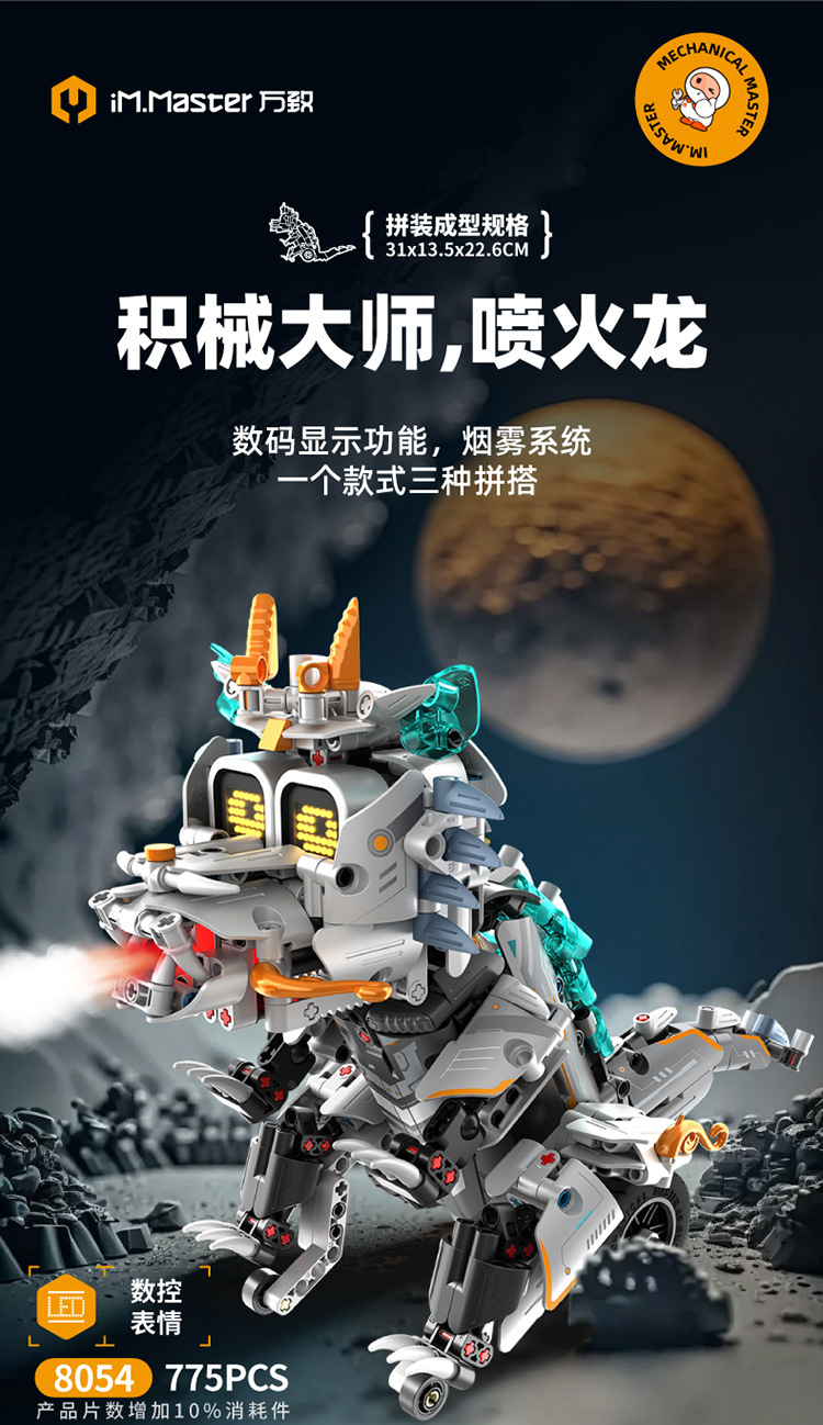 8054 Огнестойкий Дракон/Робот/Мотоцикл 3-в-1; 8055 Гигиенист/транспортный автомобиль/дорожный пресс 3-в-1; 8056 Исследование Moon Pioneer/Сова/Брастильная машина 3-в-1; 8057 улитка/робот/снегвоз 3-в-1; 8058 киберспортивная девушка/робот/скорпион 3-в-1; Детектив 8059/грузовик/гвоздик 3-в-1; 8060 Вт/динозавр/трюк 3-в-1; 8061 крокодил/мотоцикл/робот 3-в-1