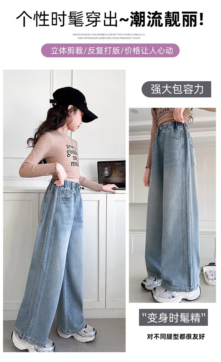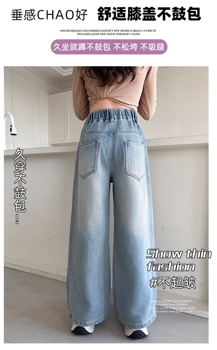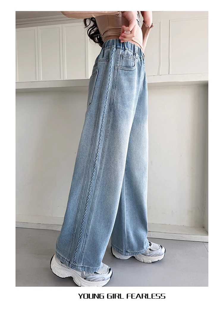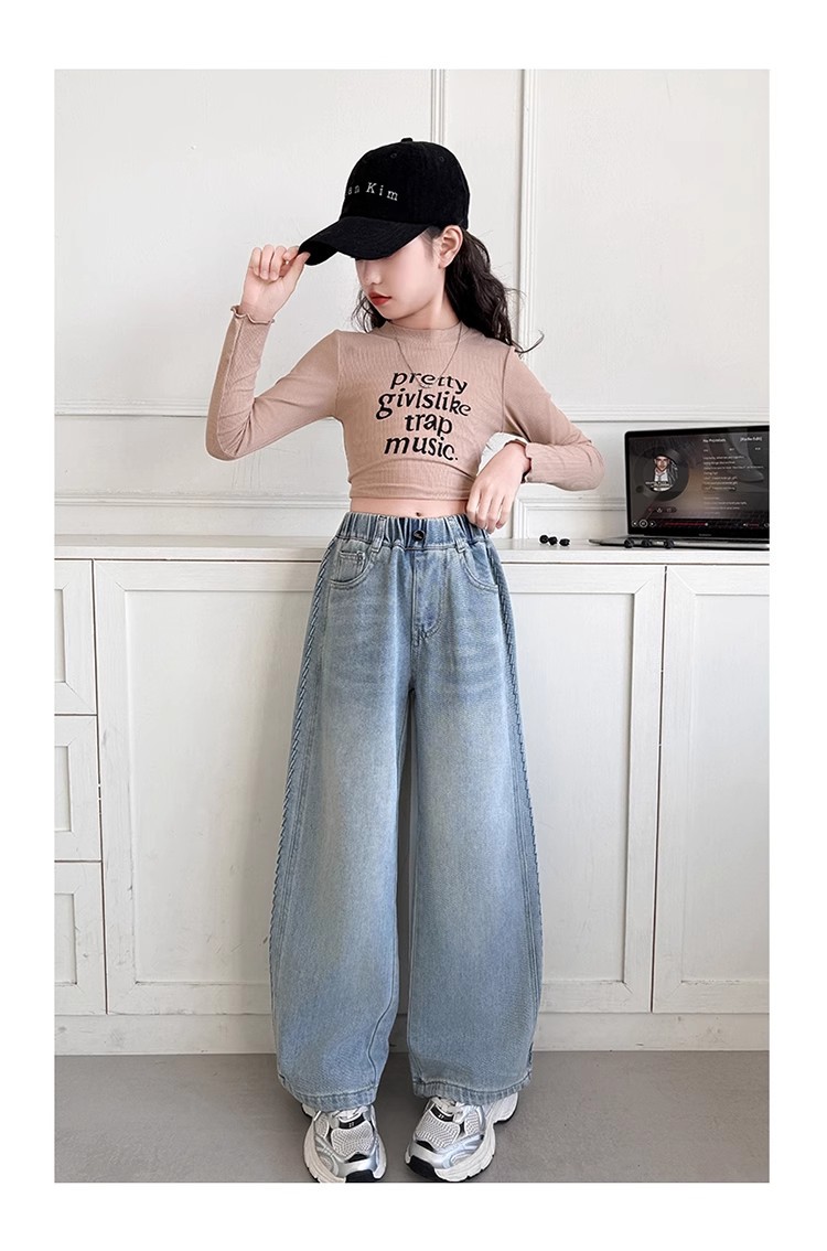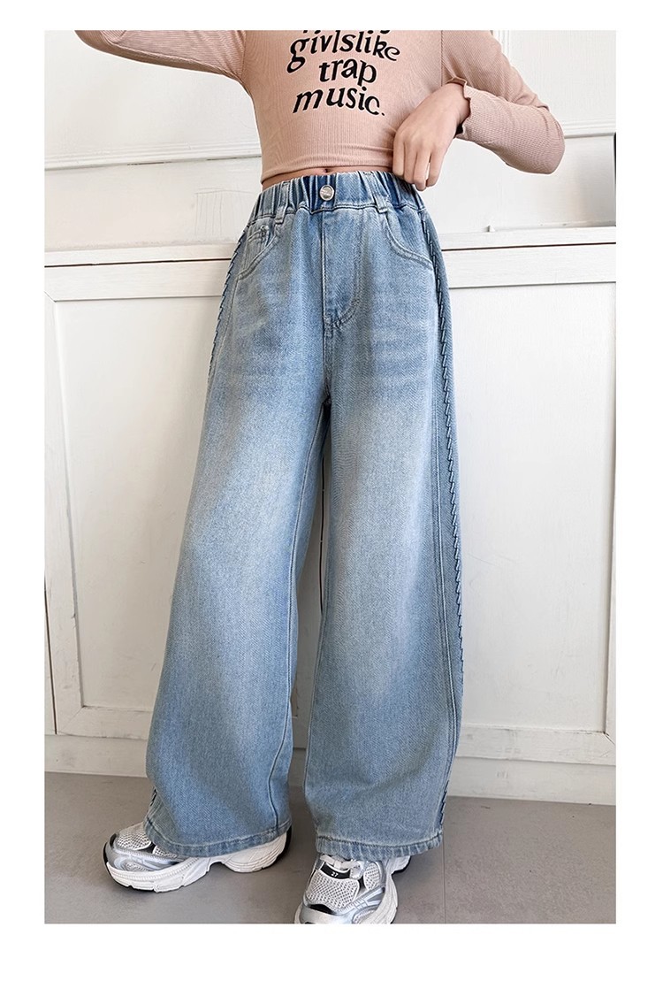 Джинсовые широкие брюки для девочек Весна и Осень 2025 Новый стиль иностранный мальчик модные свободные прямые брюки с высокой талией длинные брюки