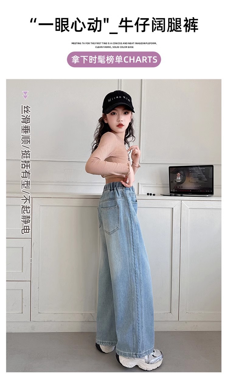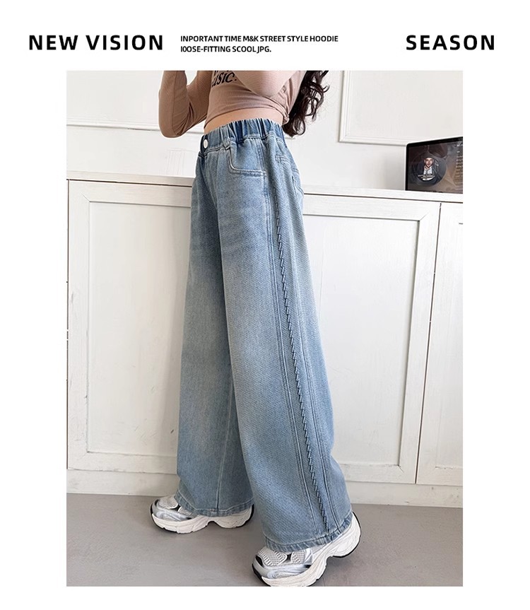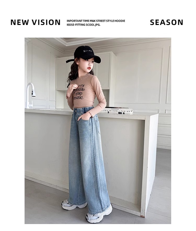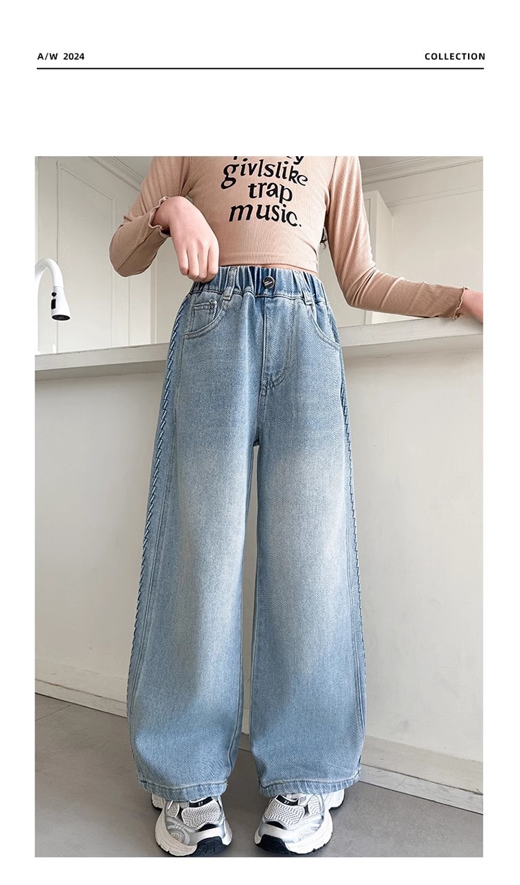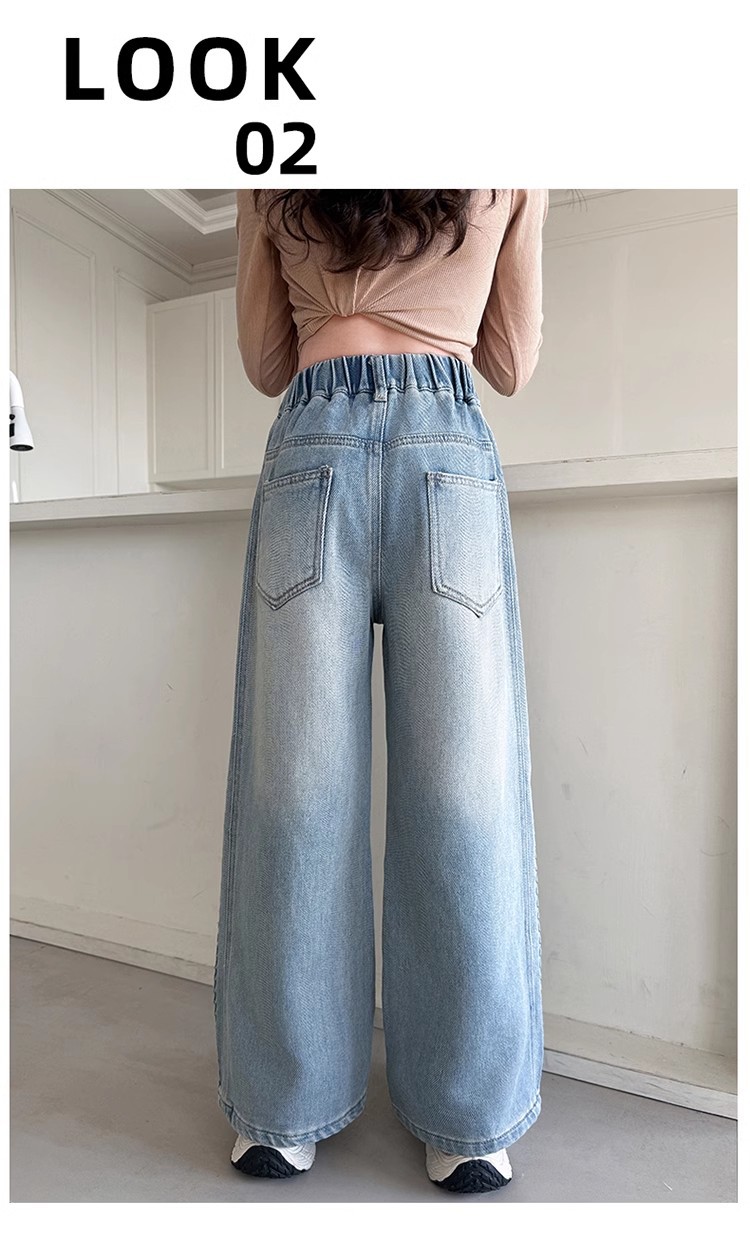 Джинсовые широкие брюки для девочек Весна и Осень 2025 Новый стиль иностранный мальчик модные свободные прямые брюки с высокой талией длинные брюки