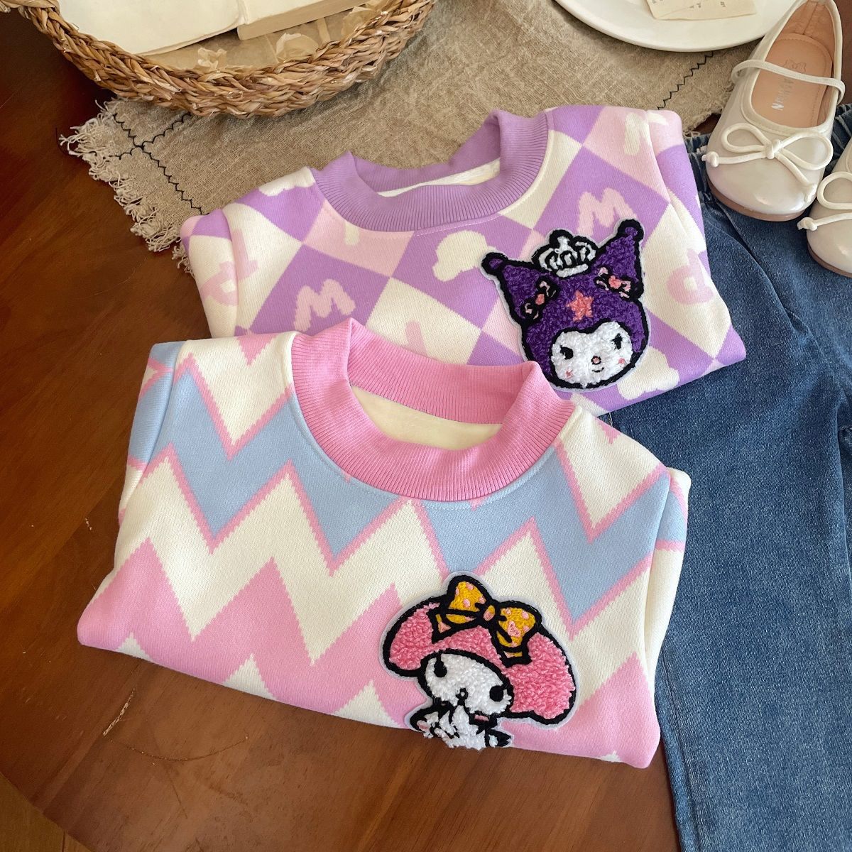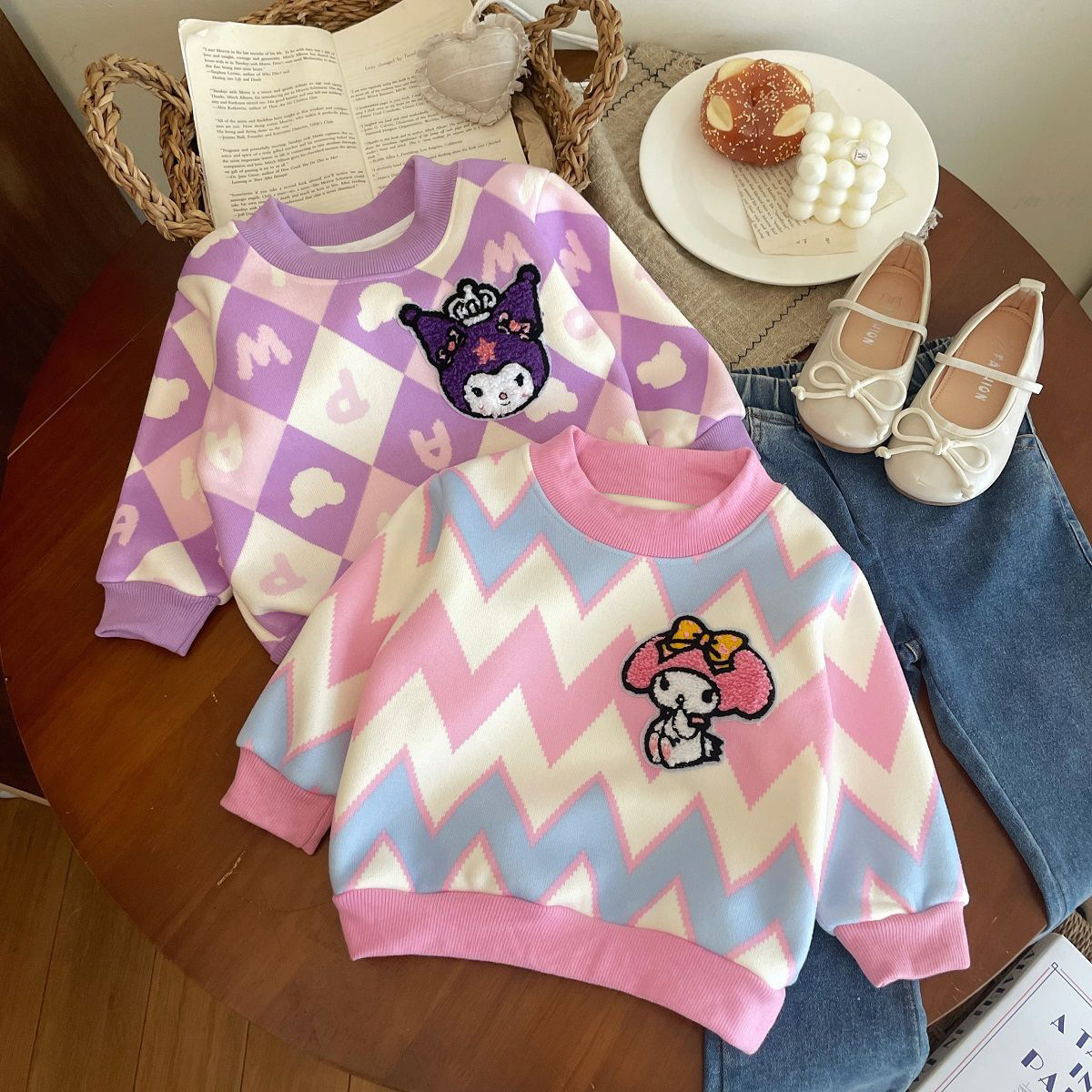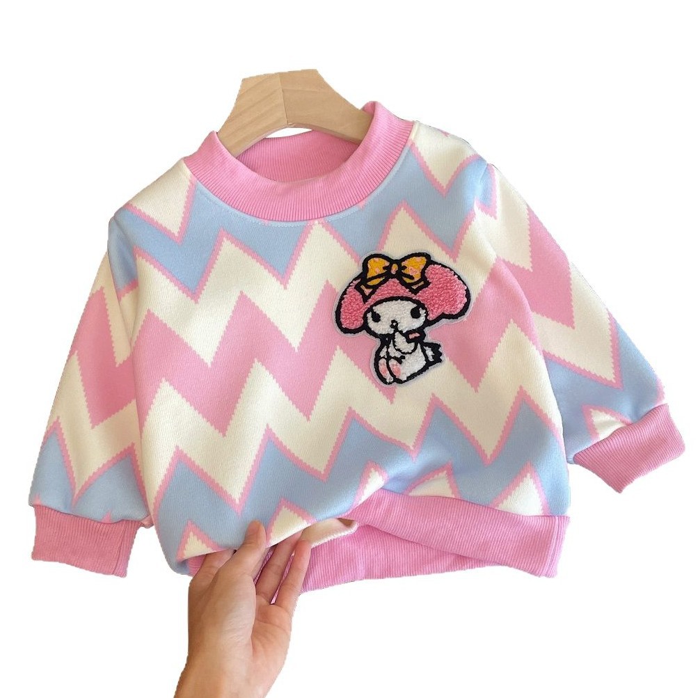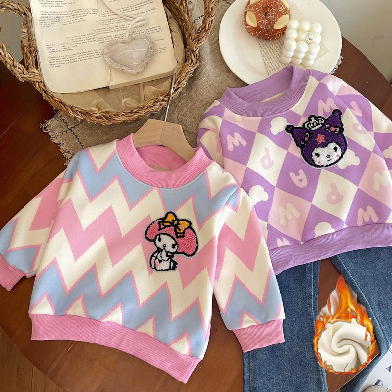 Толстовка для девочек 2024 осень-зима новый кулуми мультфильм плюс бархатный свитер пуловер для детей теплая нижняя рубашка