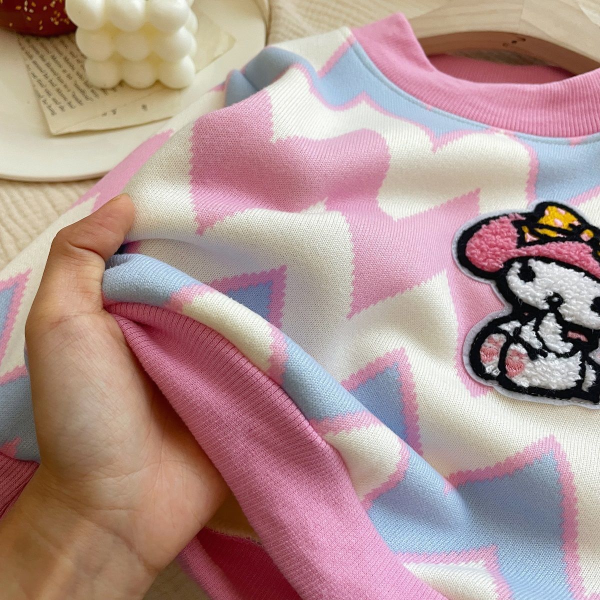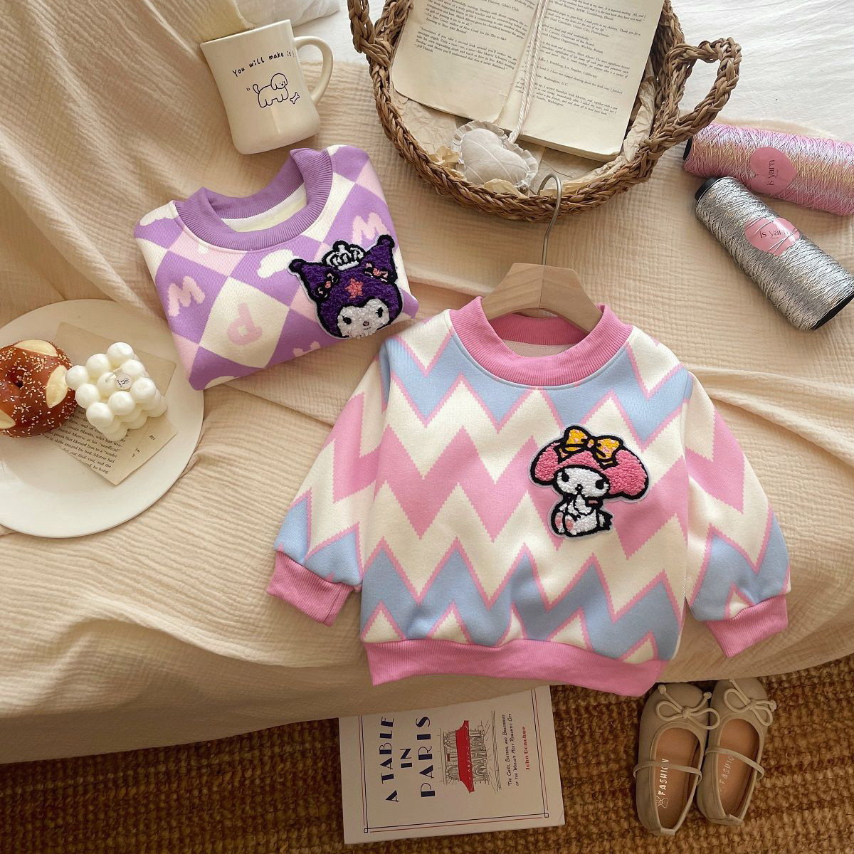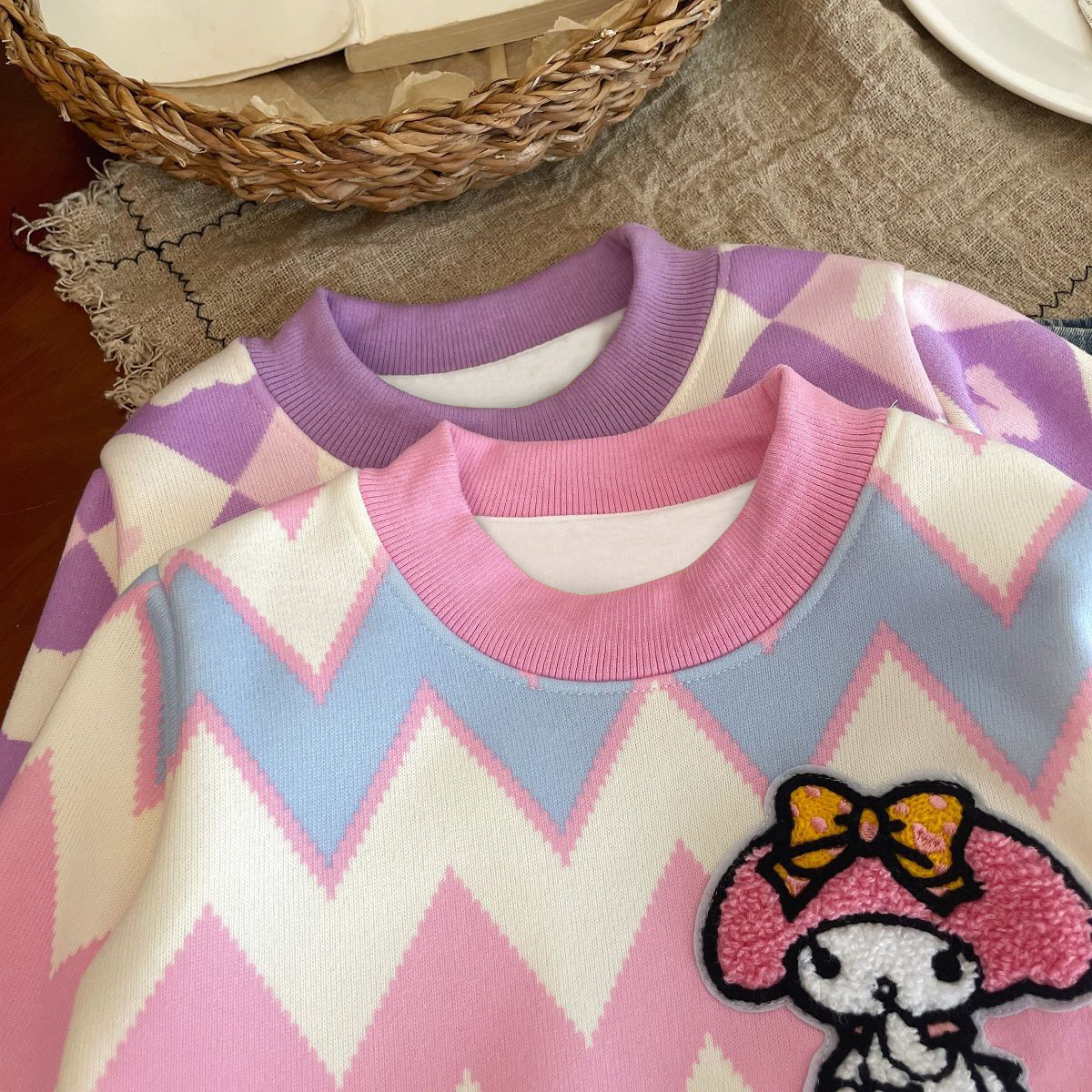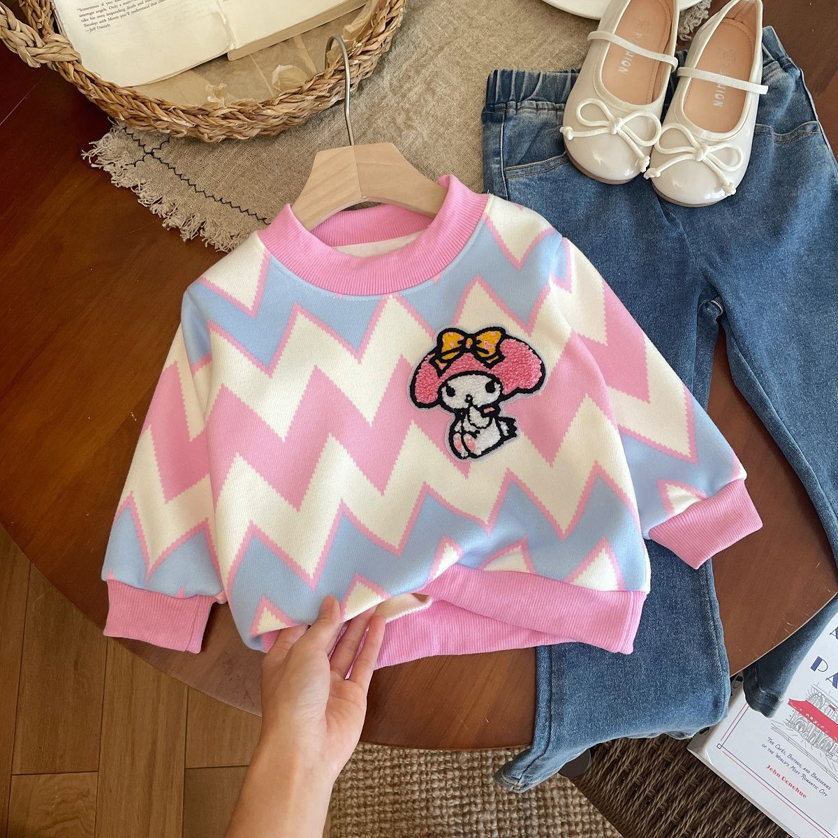 Толстовка для девочек 2024 осень-зима новый кулуми мультфильм плюс бархатный свитер пуловер для детей теплая нижняя рубашка