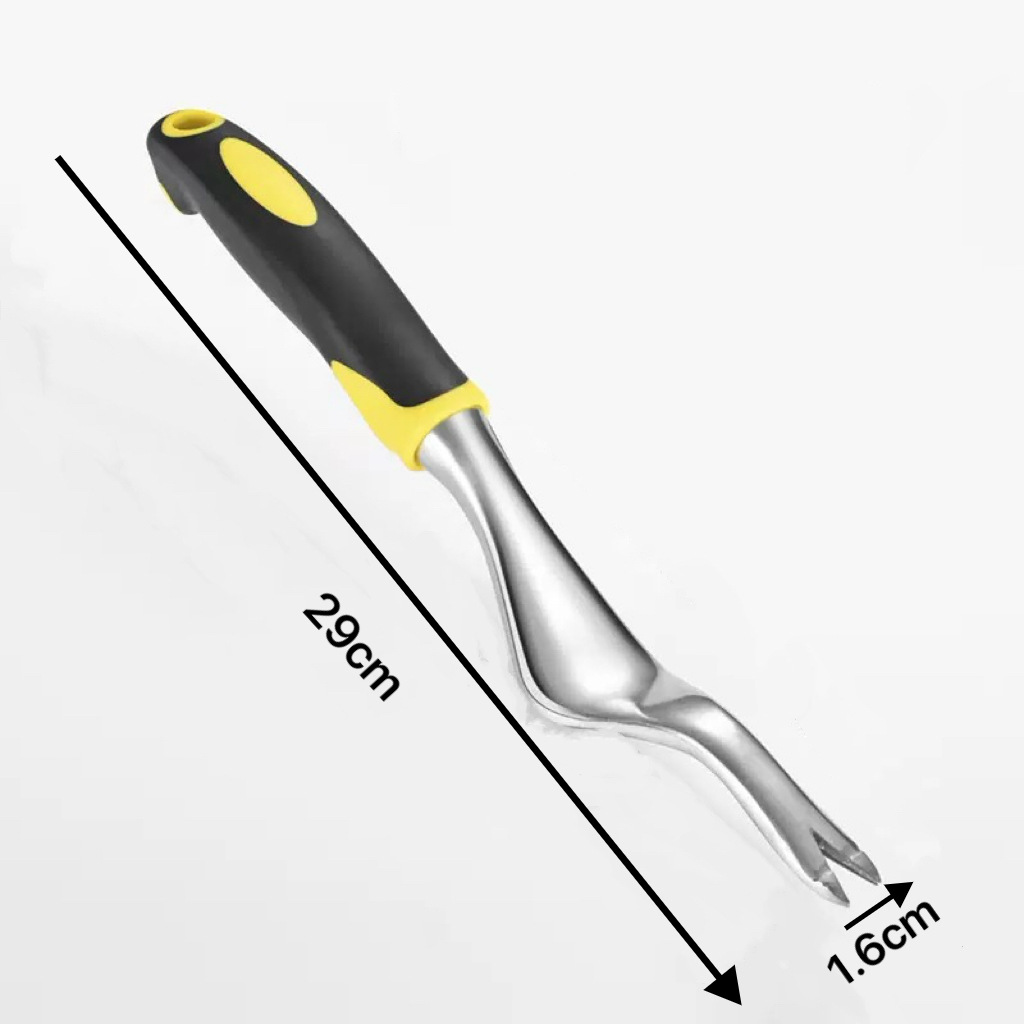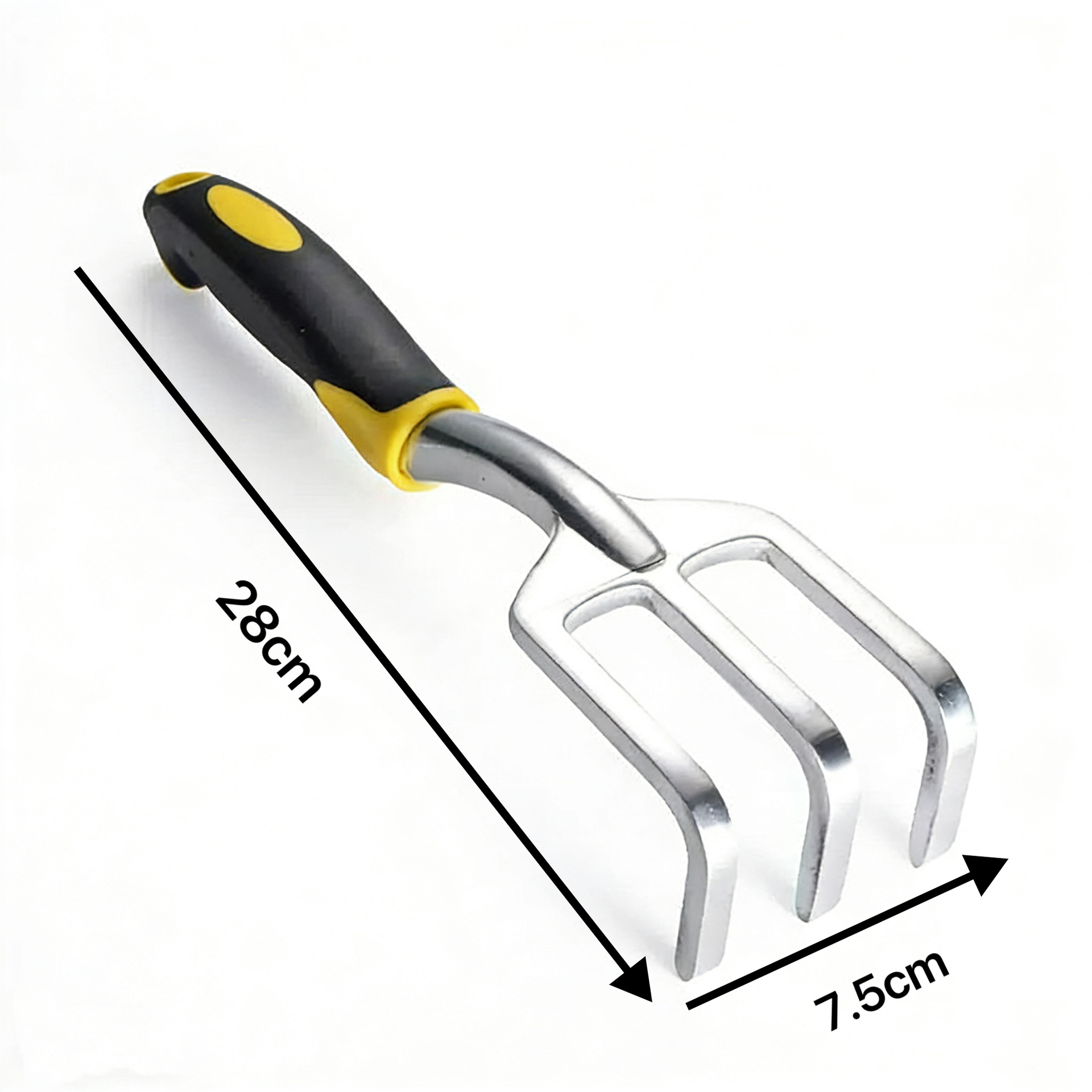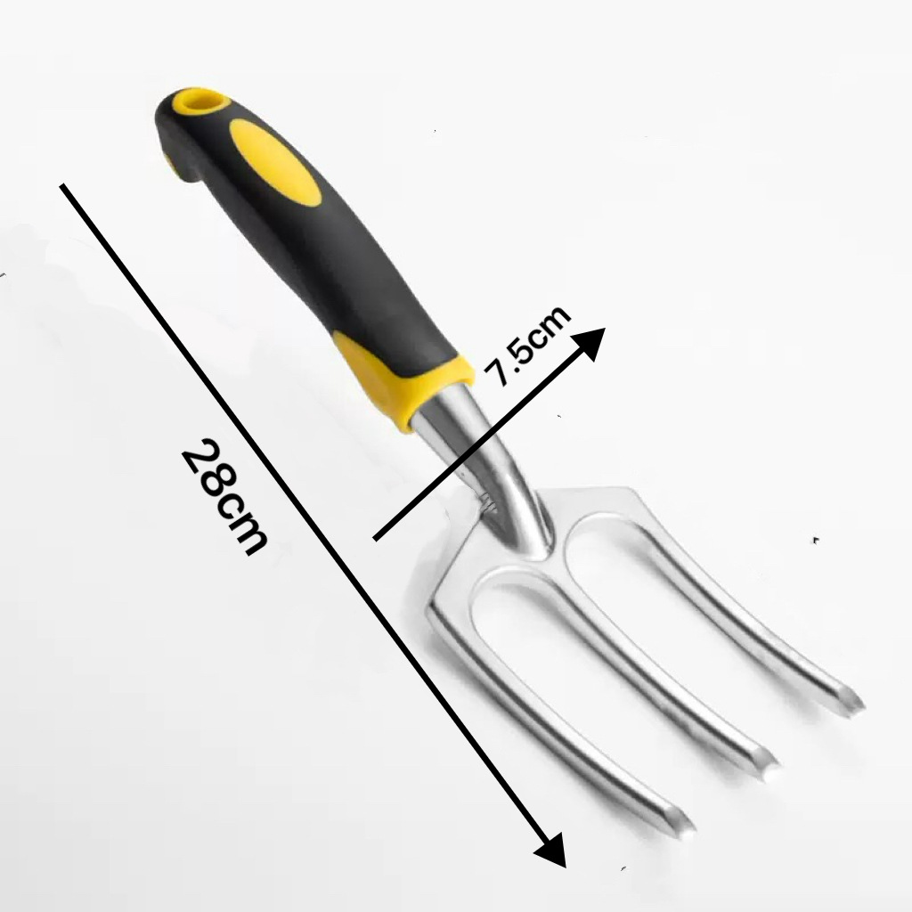 Широкая лопата с черной и желтой ручкой; Узкая лопата с черной и желтой ручкой; Черно-желтая ручка трехзубая; Грабли с черной и желтой ручкой; Подъемник корней с черной и желтой ручкой; Набор из шести предметов с черно-желтой ручкой + тканевая сумка; Белая оксфордская сумка; Секаторы с черно-желтой ручкой; Набор из шести предметов с черно-желтой ручкой + тканевый мешок + 1 пара садовых перчаток
