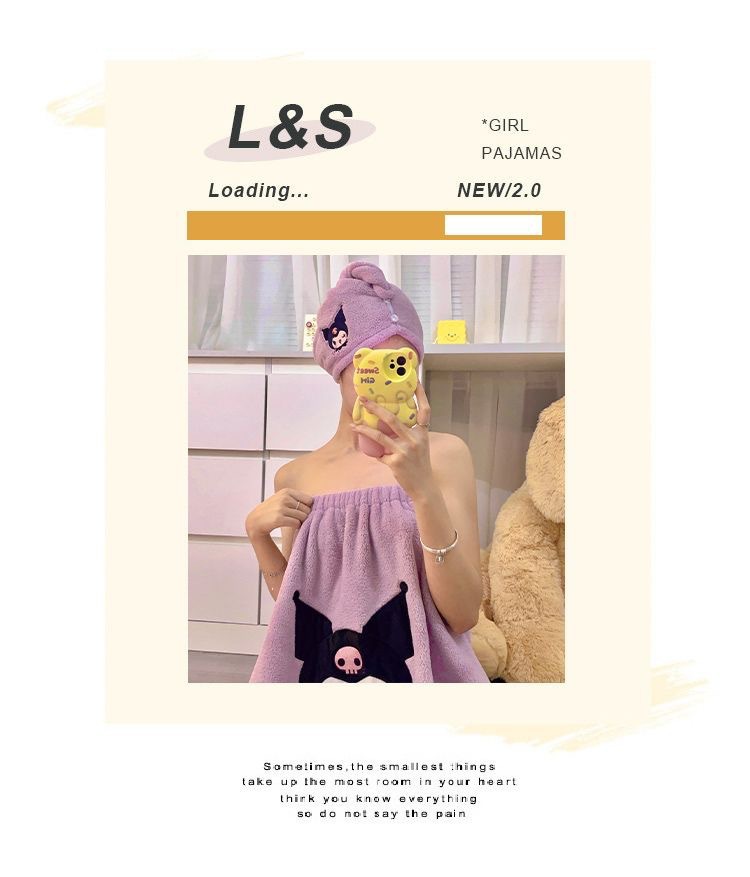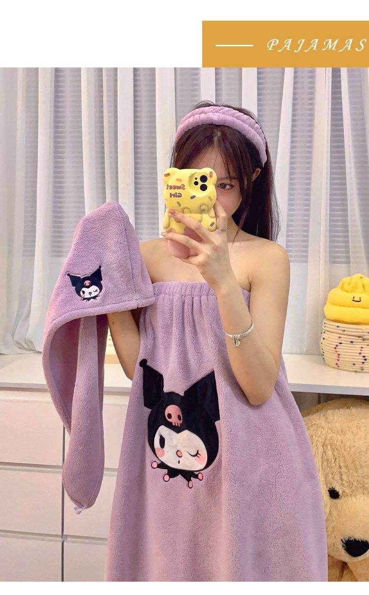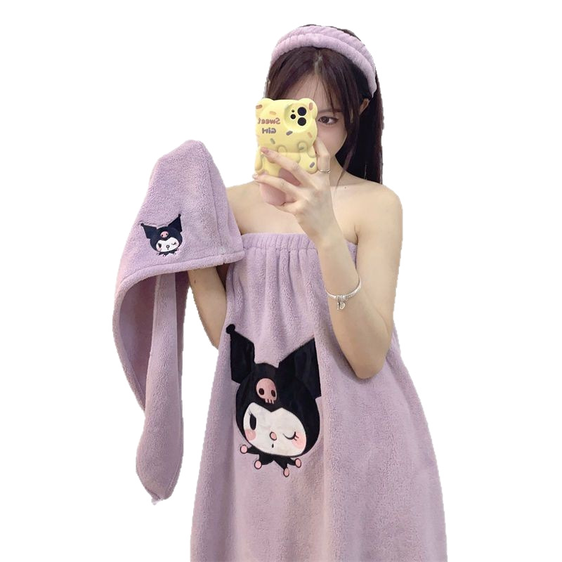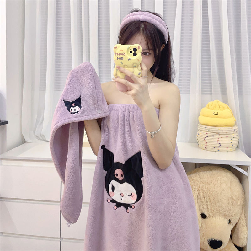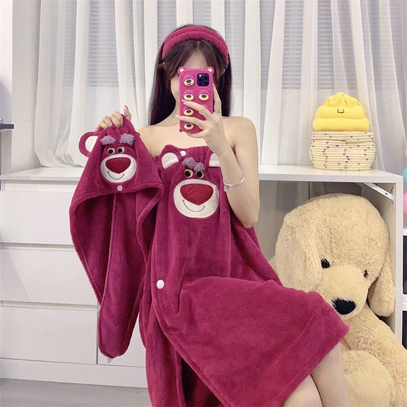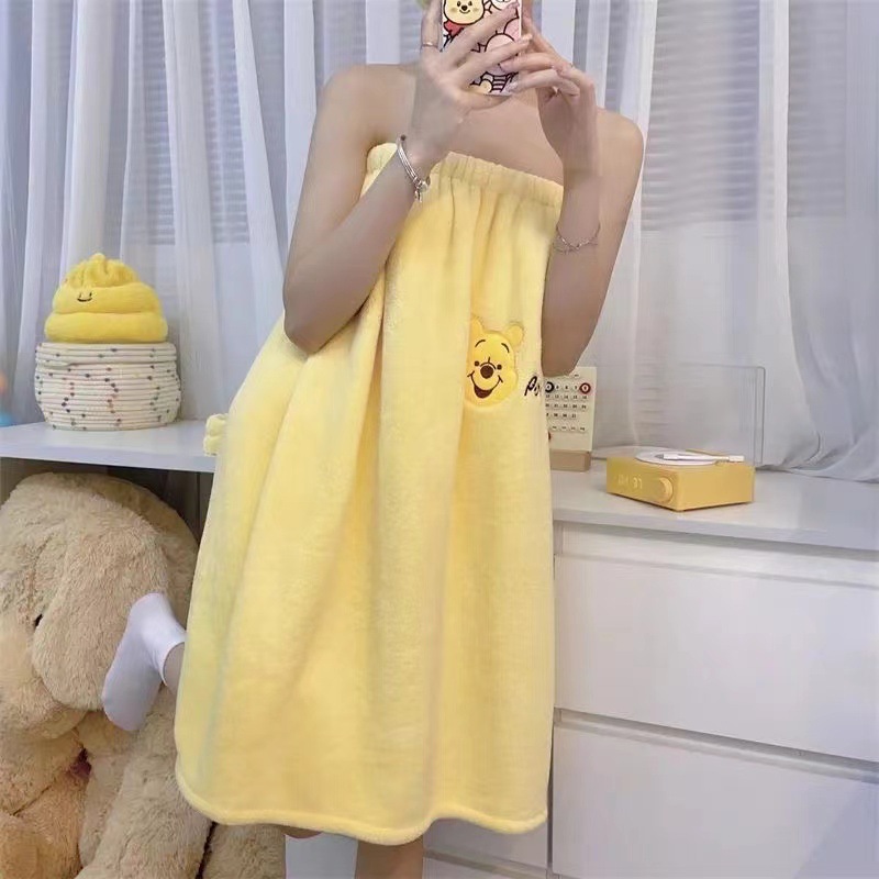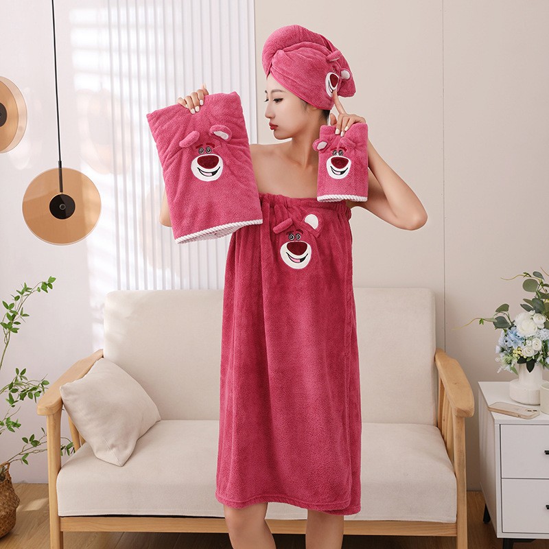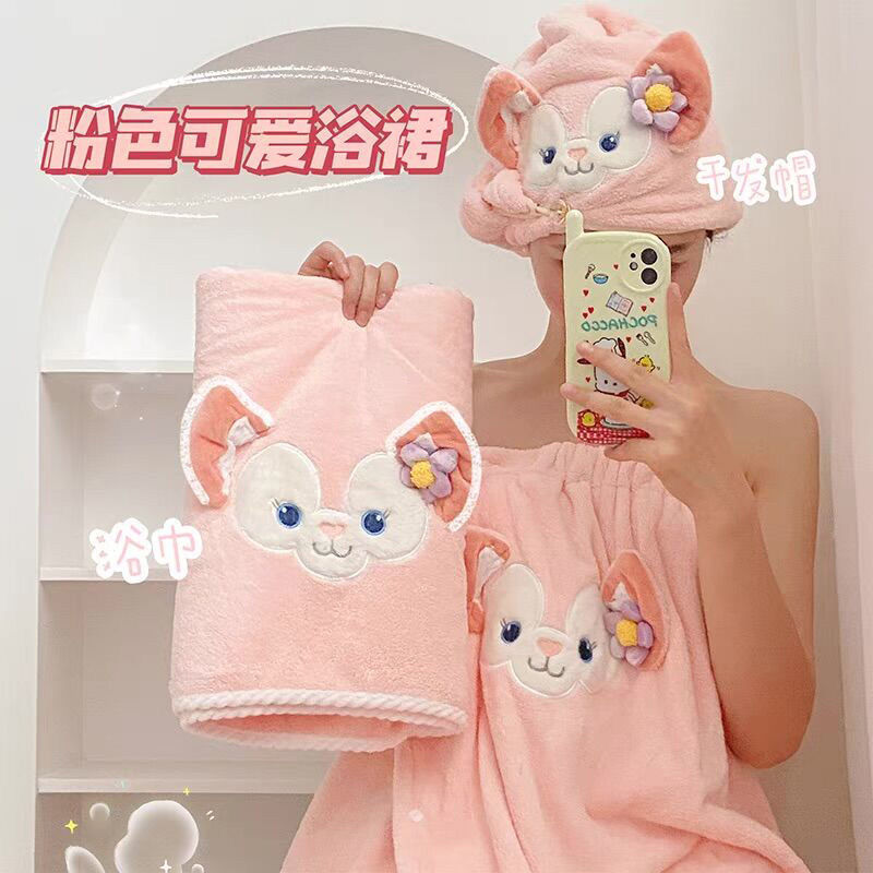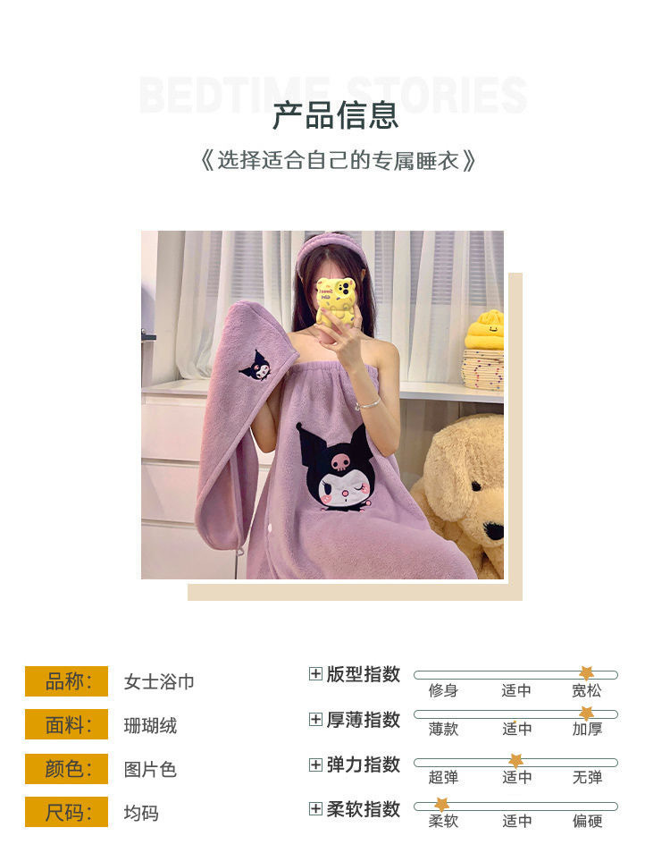 [Большая коллекция юбок для ванны] Халат с героями мультфильмов, мягкий и приятный для кожи комплект шапочек для сушки волос из кораллового бархата, юбка для ванны, юбка-топ