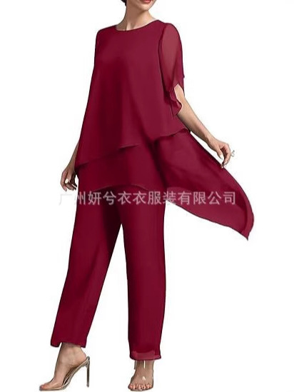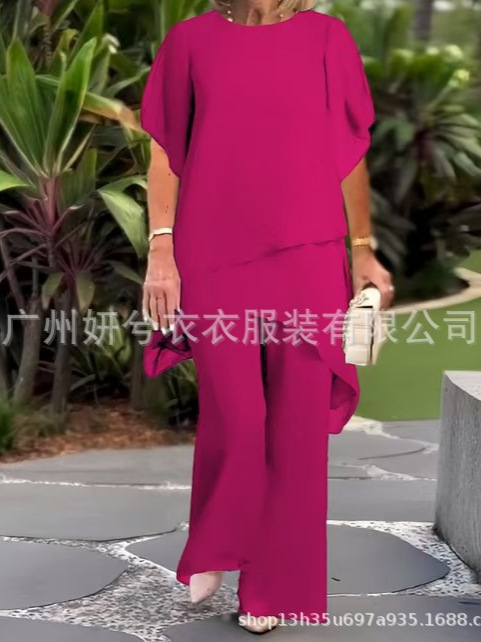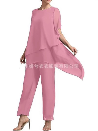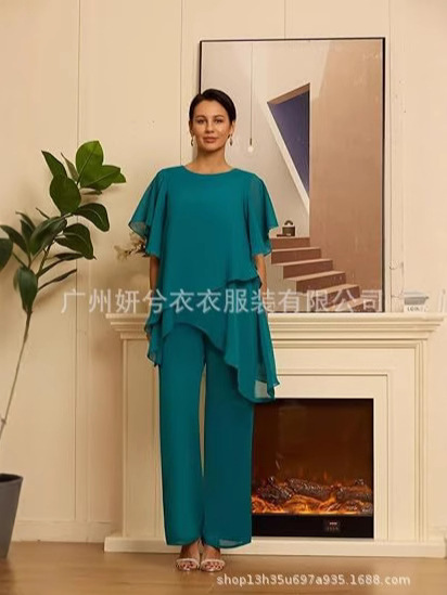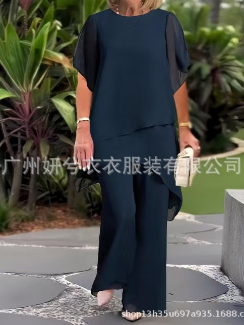 Европейская и американская трансграничная ранняя весна 2025 новый темперамент шифон сплошной цвет свободный нерегулярный модный набор