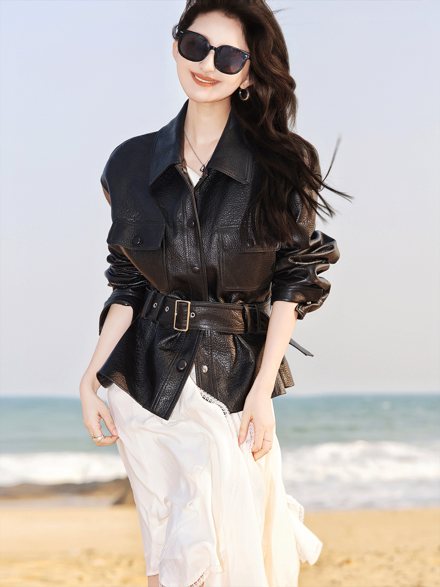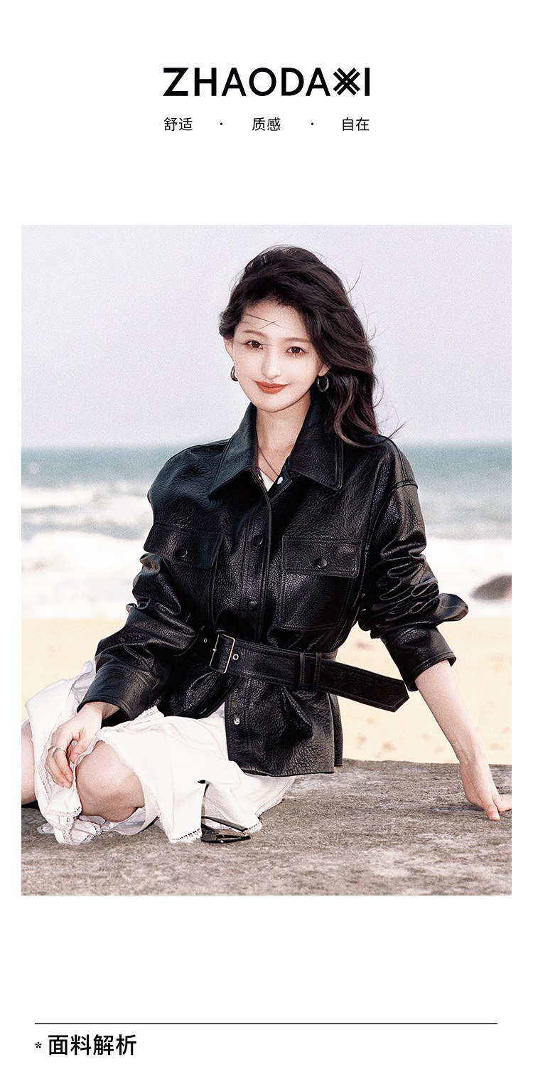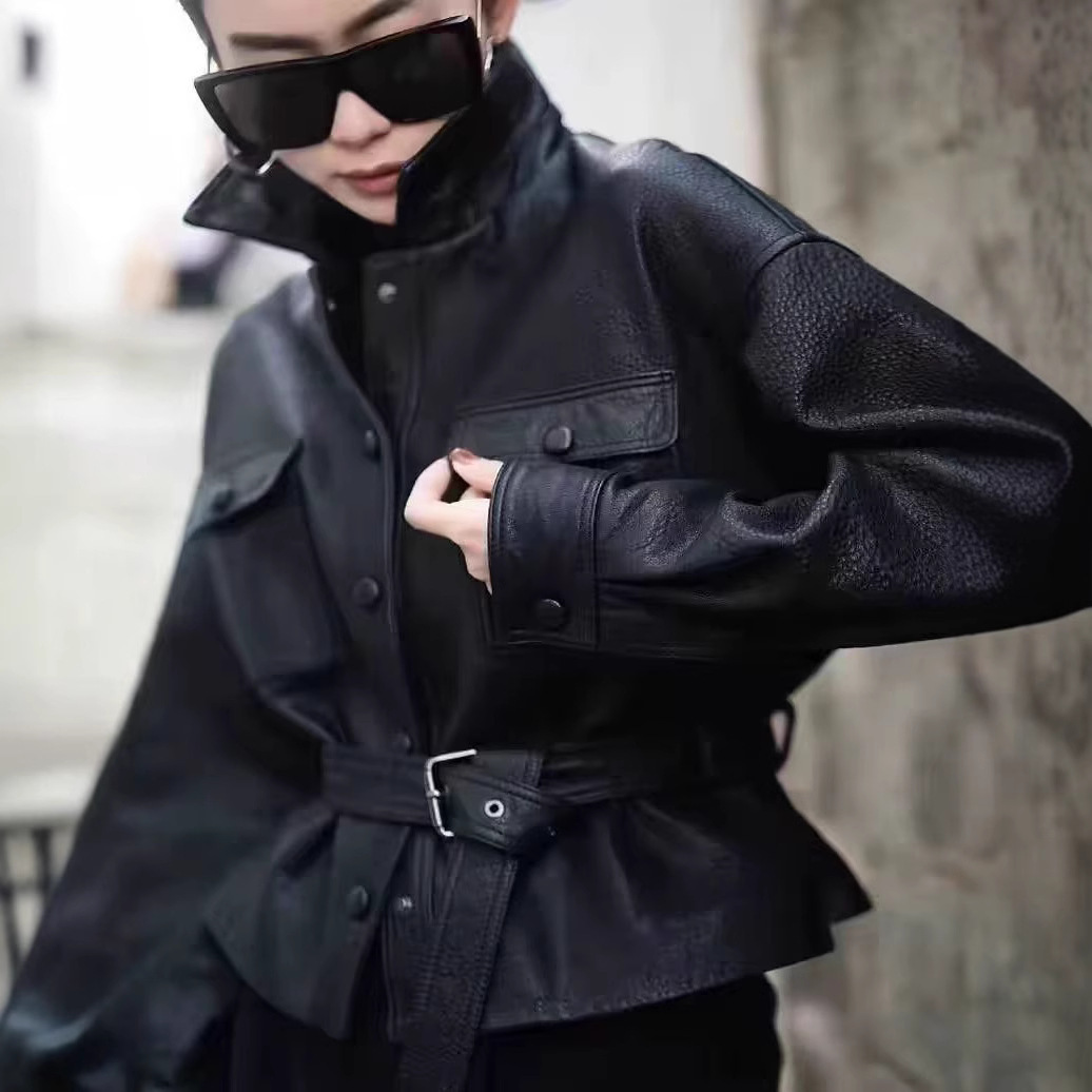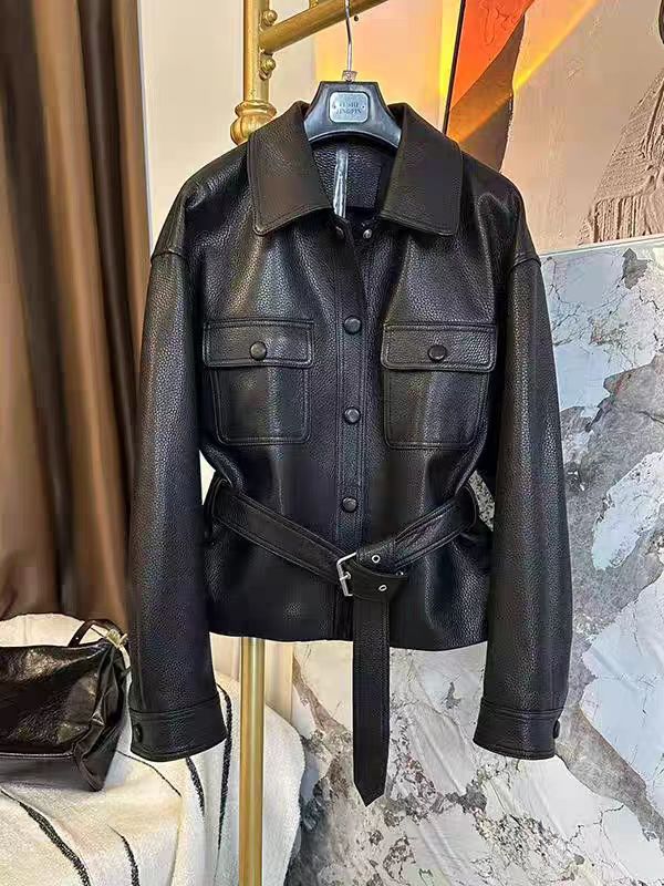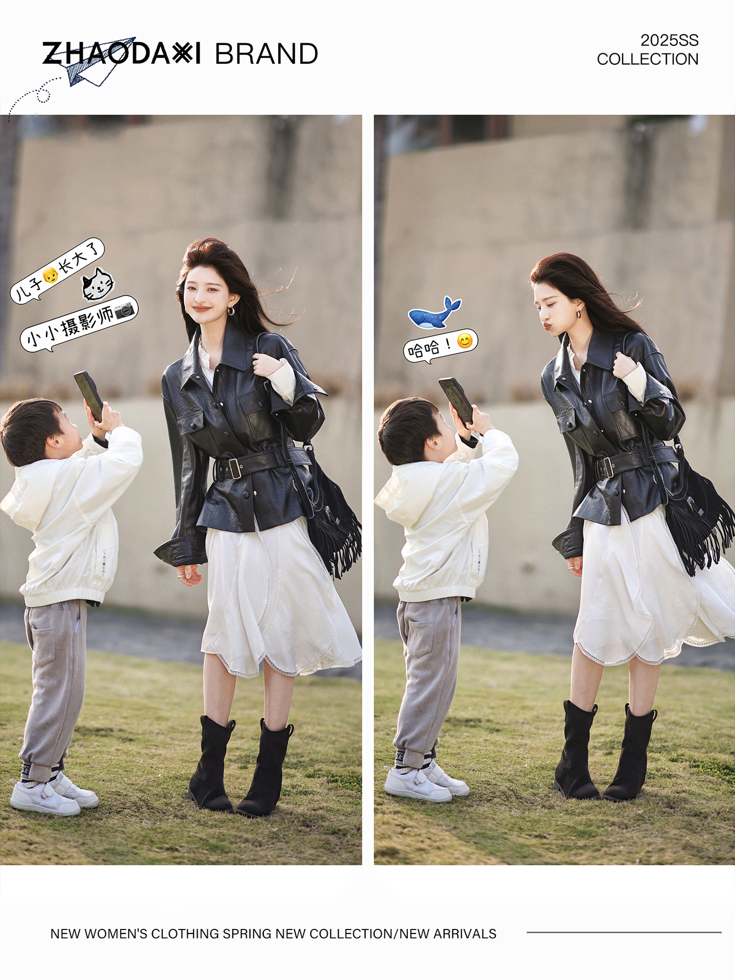 Европейские товары 2025 весна новая овечья кожа пенистая куртка классная кожаная куртка Song Jia с тем же темпераментом мотоциклетная кожаная куртка