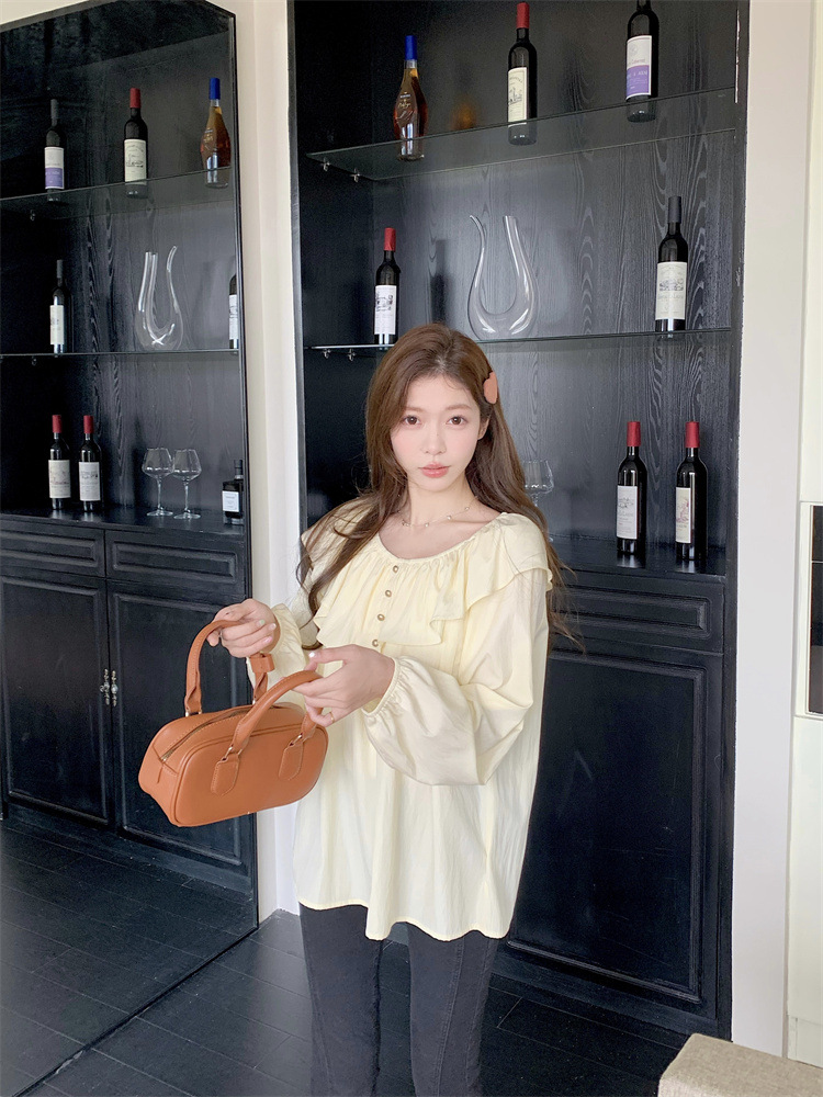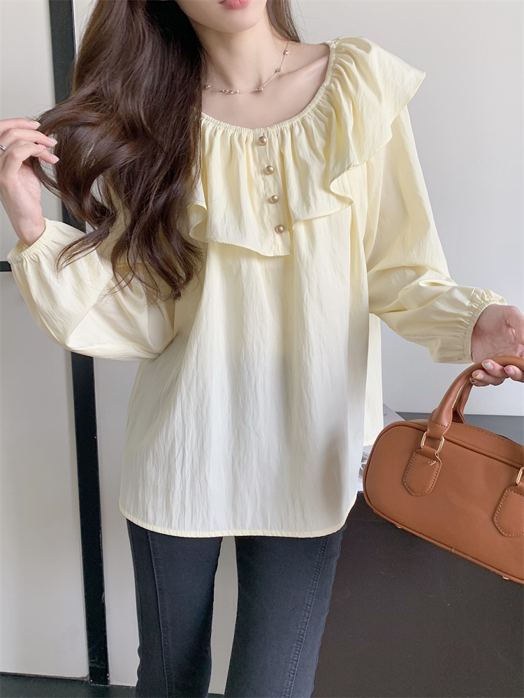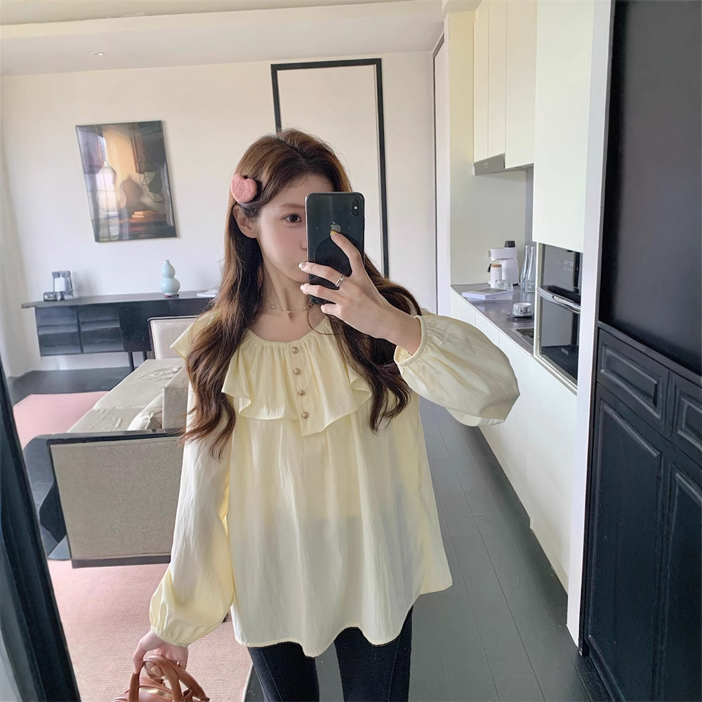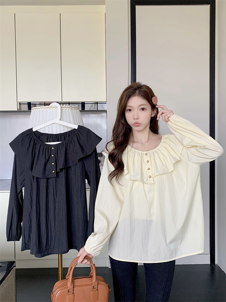 Женская одежда большого размера 2025 новая весенняя французская рубашка с круглым вырезом