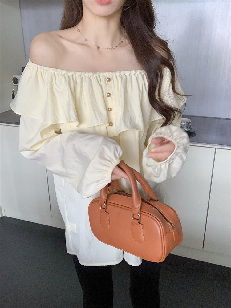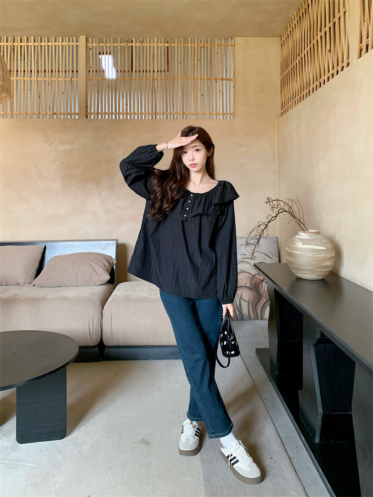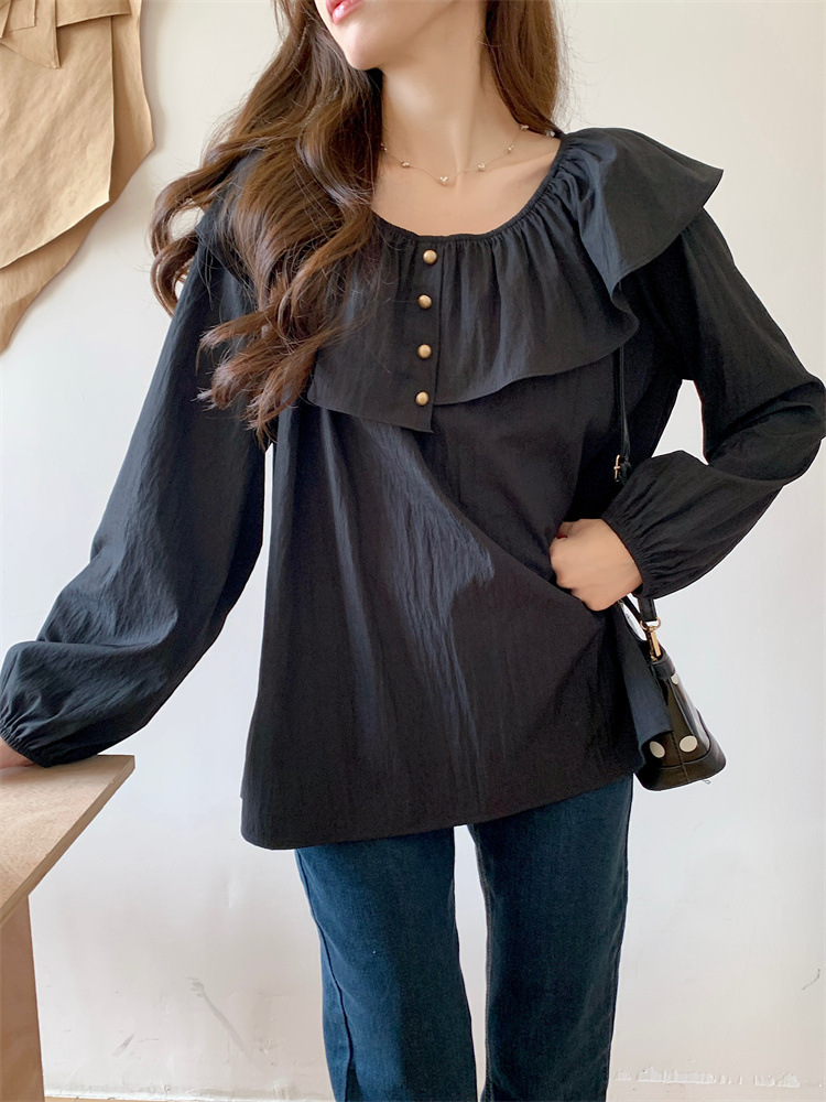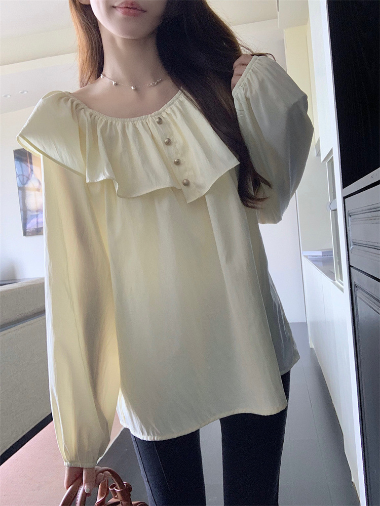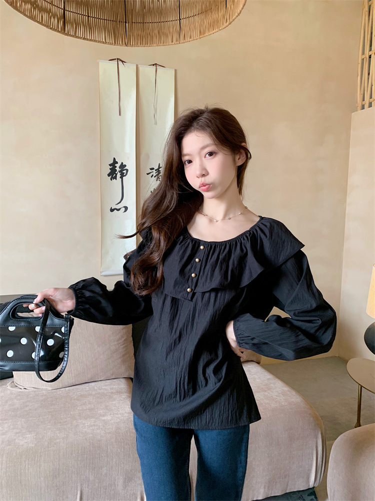 Женская одежда большого размера 2025 новая весенняя французская рубашка с круглым вырезом
