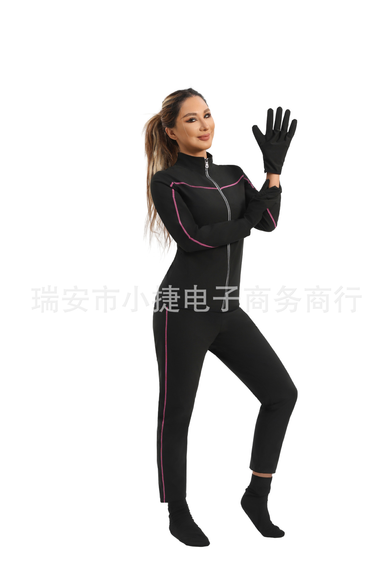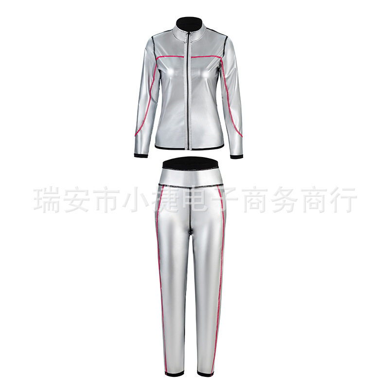 Костюм розово-красного цвета с воротником-стойкой; Костюм с круглым вырезом и розово-красной нитью; Топ с воротником-стойкой розово-красного цвета; Брюки розово-красного цвета с воротником-стойкой; Воротник-стойка на молнии с длинными рукавами + повседневные брюки.; серебристая окрашенная шляпа; перчатки с серебряным покрытием; носки с серебряным покрытием; Женский синий воротник-стойка из искусственной кожи с длинными рукавами; Женский воротник-стойка с серебряным покрытием и длинными рукавами; Женские брюки с серебряным покрытием.; Брюки женские из ПУ синего цвета
