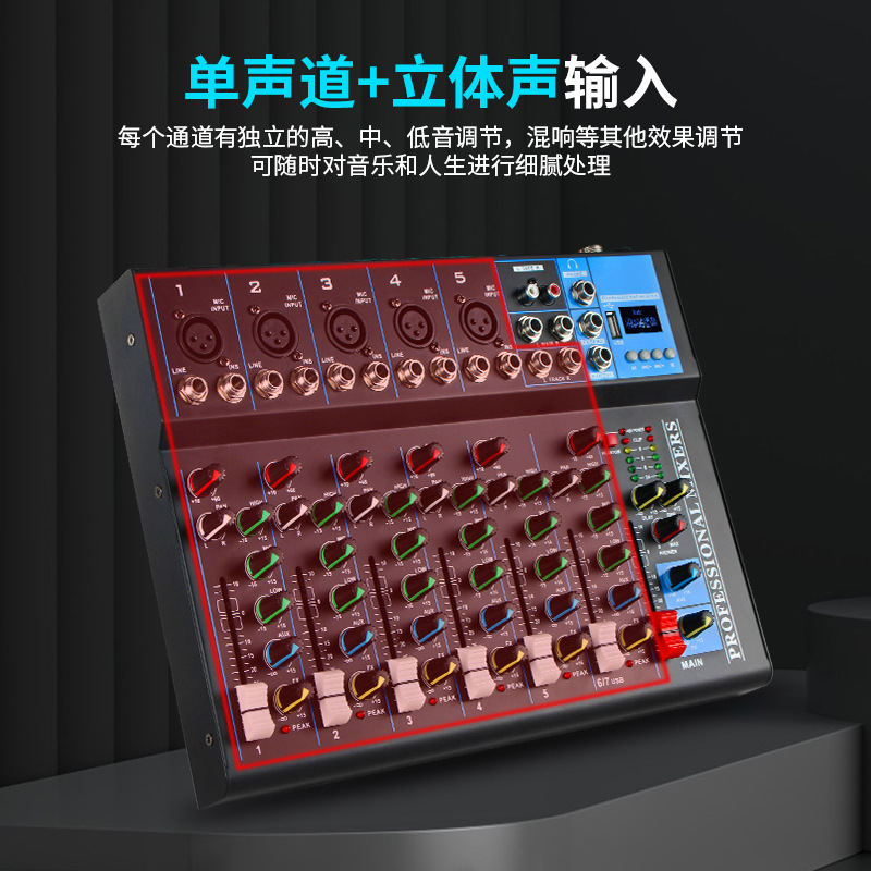 7-канальный профессиональный микшер для записи, микшер для диджеев, микшер для сценических выступлений с управлением и Bluetooth.