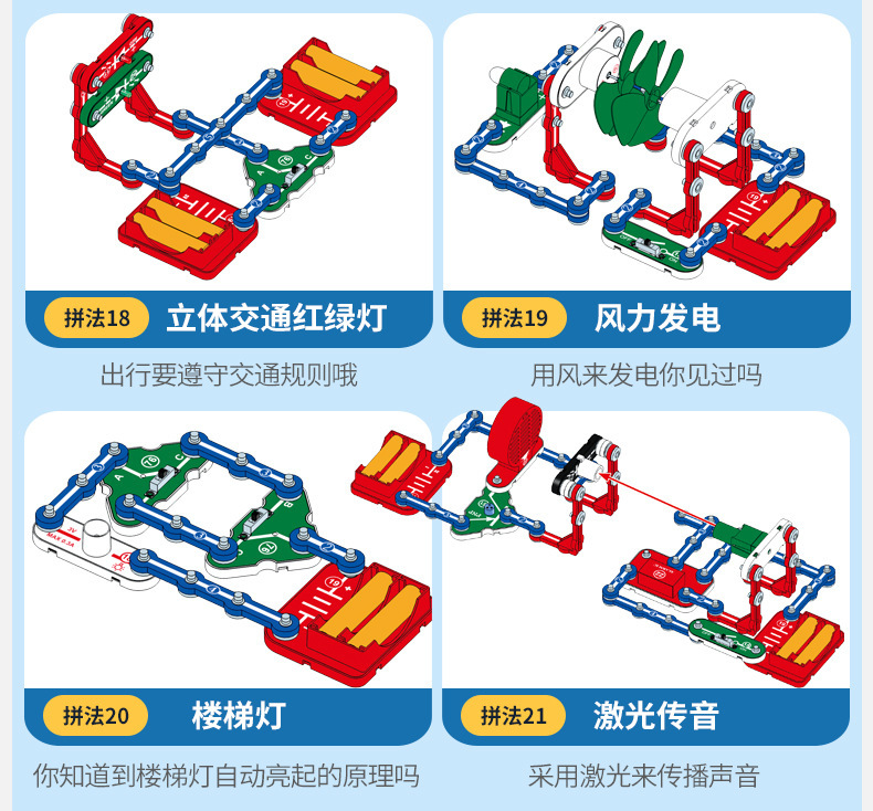 Воздушная мощность «три в одном» (дренажная модель); Расширенная версия 3688; Модернизированная версия 3688 с ящиком для хранения.; Последняя версия 6688; Модернизированная версия 6688 с ящиком для хранения.; Честь версии 9988; Обновленная версия 9988 с ящиком для хранения.; Базовая версия 108 (английская версия); Comfy Basics Edition 112 (английская версия); Обновленная версия 300 (английская версия); Применимая версия 2088 (английская версия 500); Строительные блоки с квадратной цепью. Версия Comfy Basics (с китайским и английским языками).; Основная версия строительных блоков квадратной цепи (с китайским и английским языками); Высококачественная версия строительных блоков квадратных цепей (с китайским и английским языками); Электронные строительные блоки 699 штук (маленький комплект); Электронные строительные блоки 999 штук (средний комплект); Электронные строительные блоки 3899 (большой комплект); Базовая версия 108; Базовая версия 112; Обновленная версия 300.; Применимая версия 2088.; Гидродинамическое расширенное издание 560; FM-радио 116 (английская версия); Гидродинамический юниорский выпуск 550; Научный эксперимент «Шторм» (Свет и цвет 220); Аэродинамический 4 в 1; Фруктовая кола, соляная вода, выработка электроэнергии; Красочный проектор; Научная лаборатория шторма 4-в-1 (6005); Новый продукт 2288 моделей; Строительные блоки с магнитной пушкой; приостановленная проточная вода