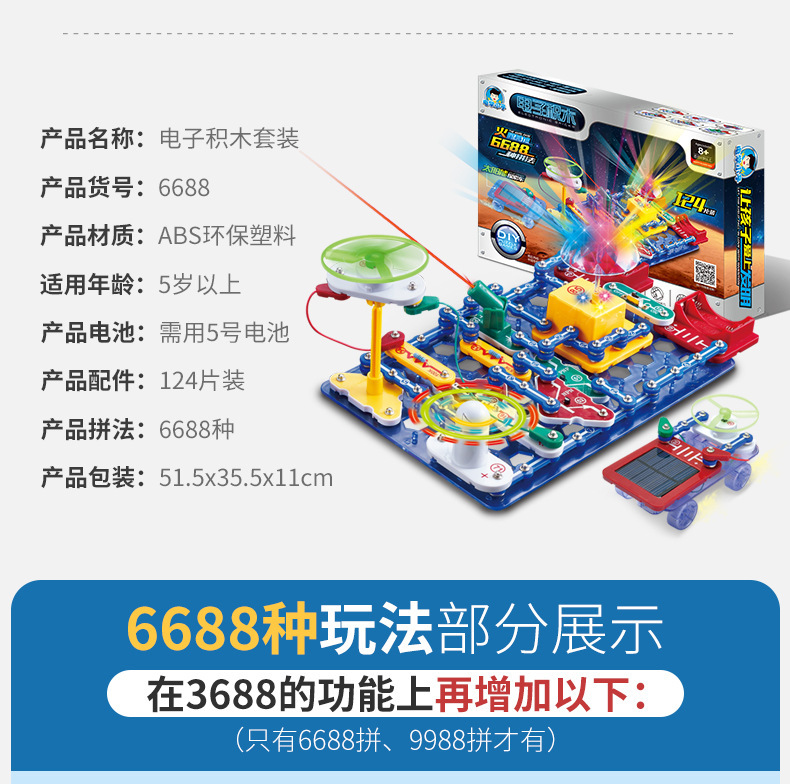 Трансграничные электрические цифровые строительные блоки для мальчиков 6688, модели 9988 3688, стержень физической схемы, игрушки для научных экспериментов