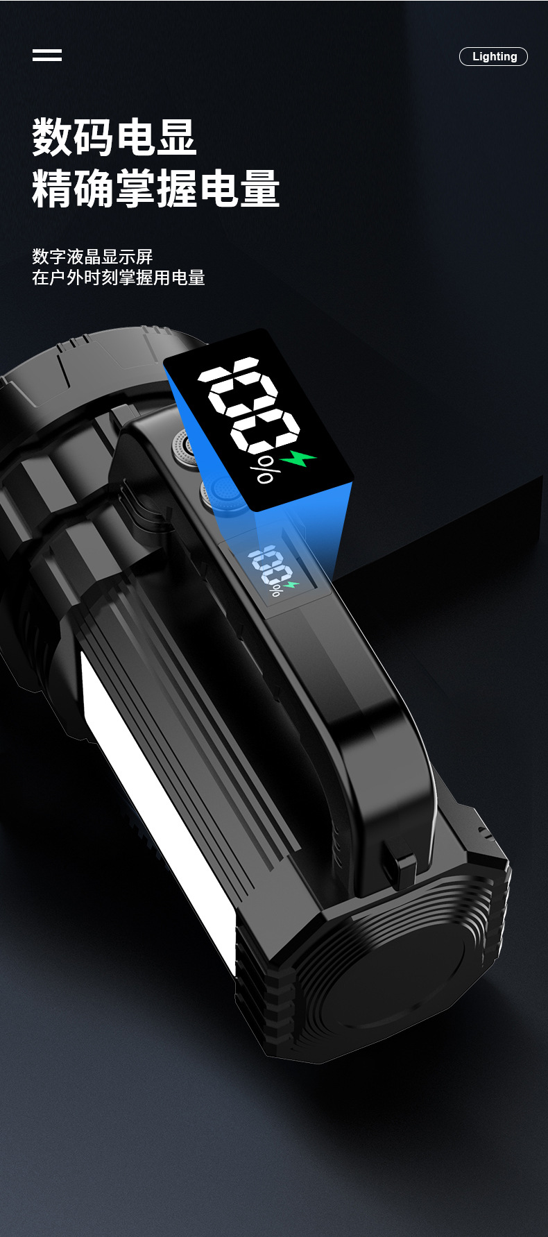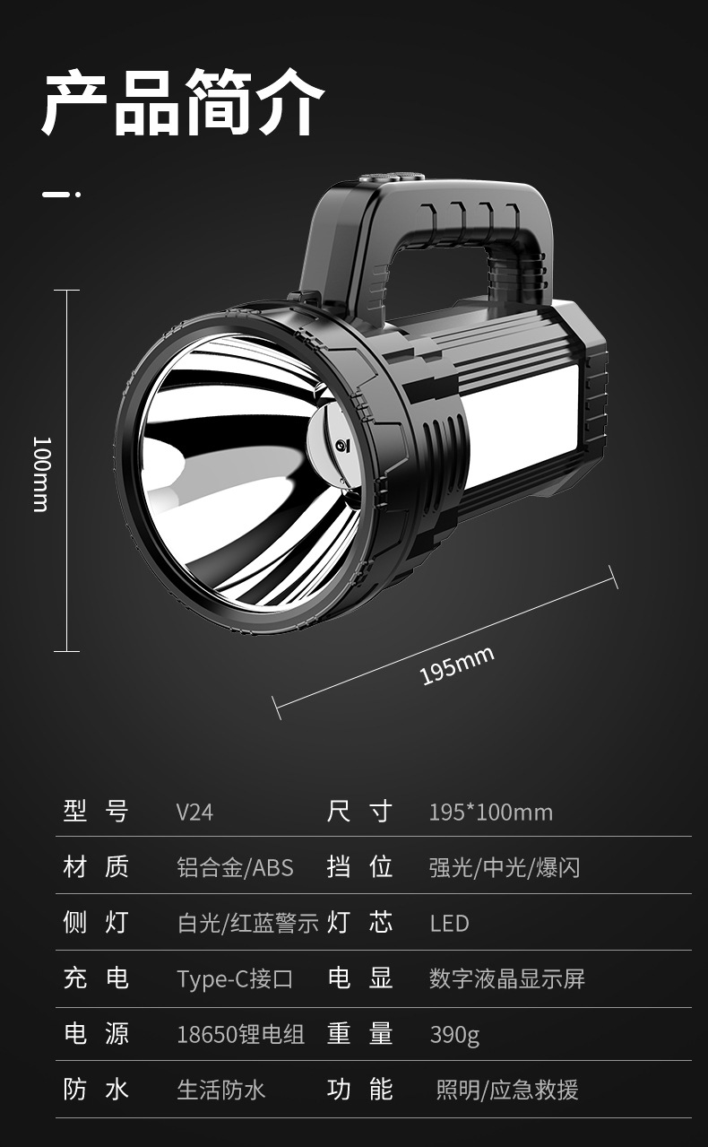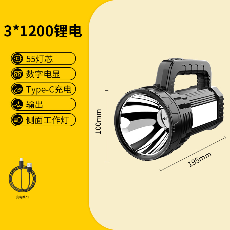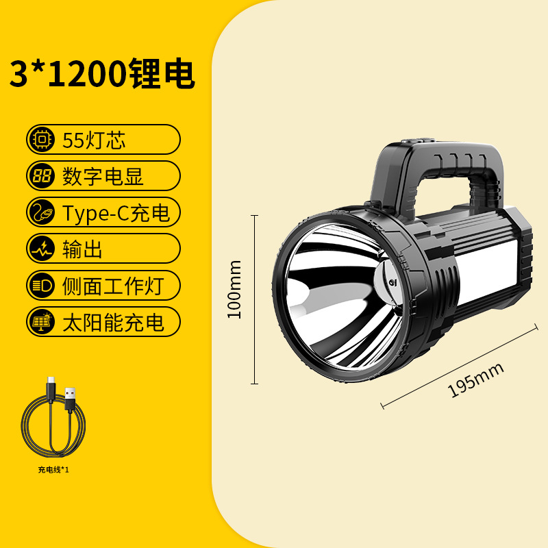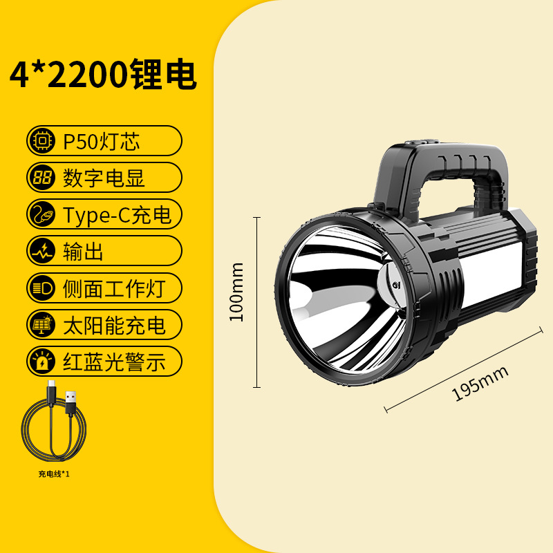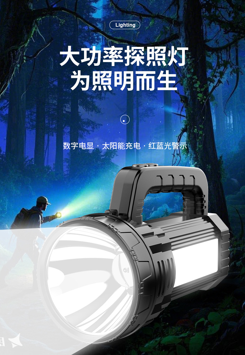 Яркий свет переносной лампы ЖК-цифровой электрический большой панорамный фонарик солнечной наружной аварийной алюминиевой прожектор