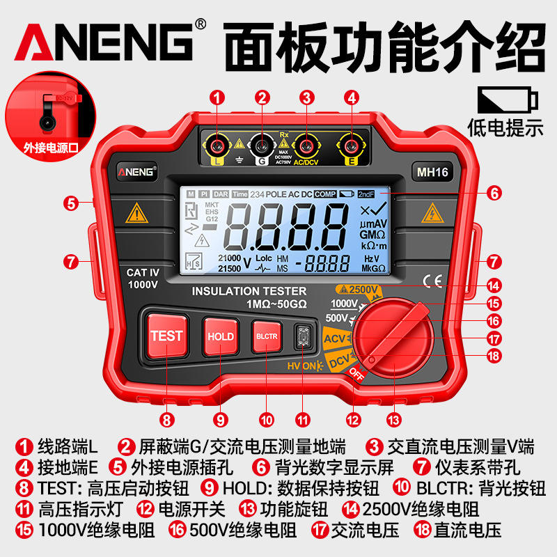 ANENG Высоковольтный Тестер сопротивления высокого напряжения Высокая точность электрик высокий сопротивление 2500V Изоляционный Тестер сопротивления мегерометр
