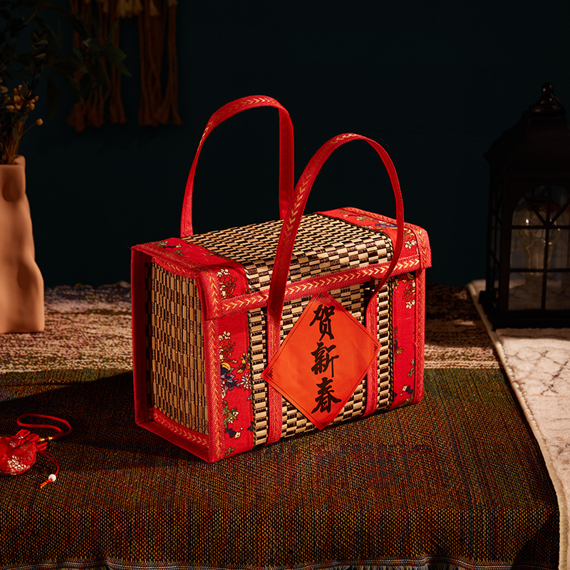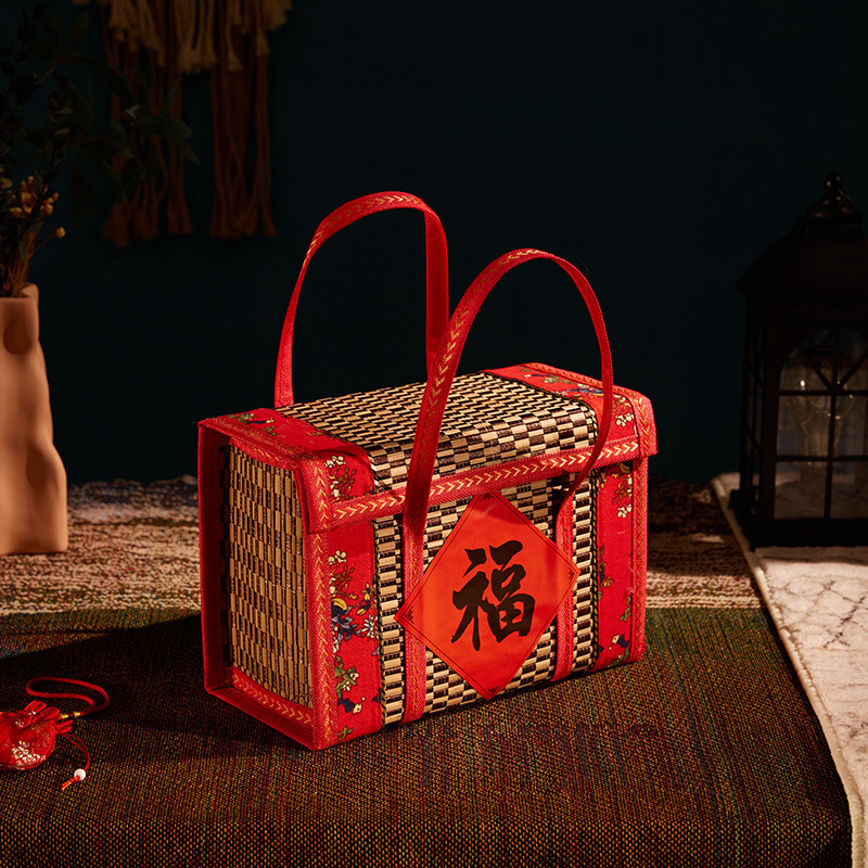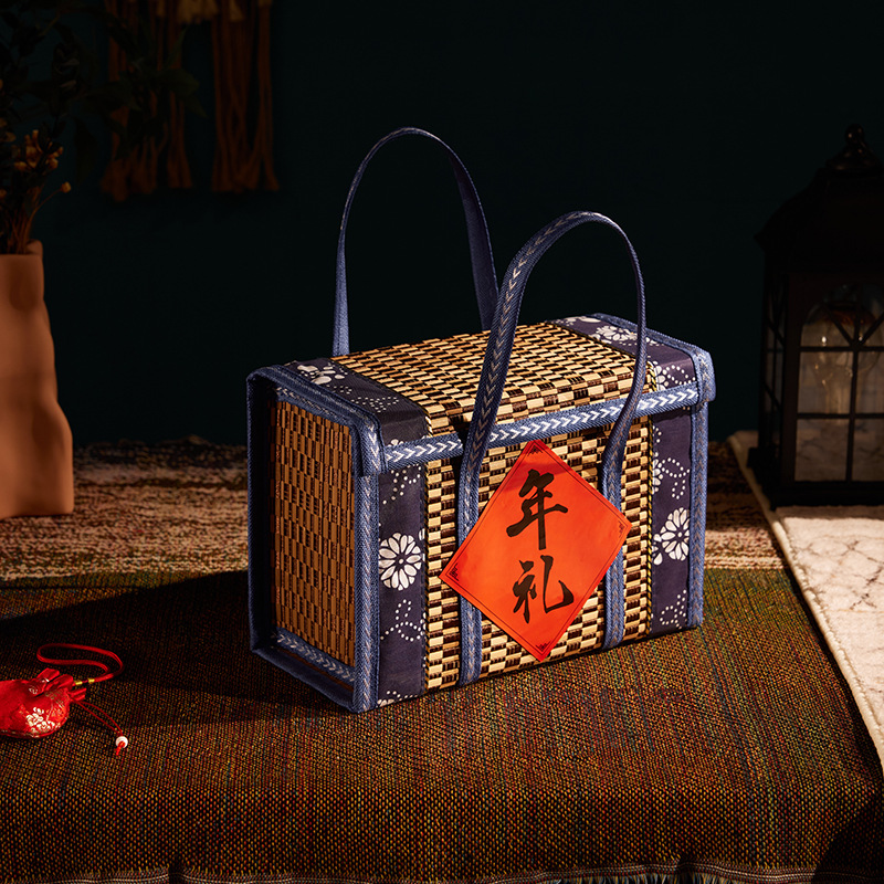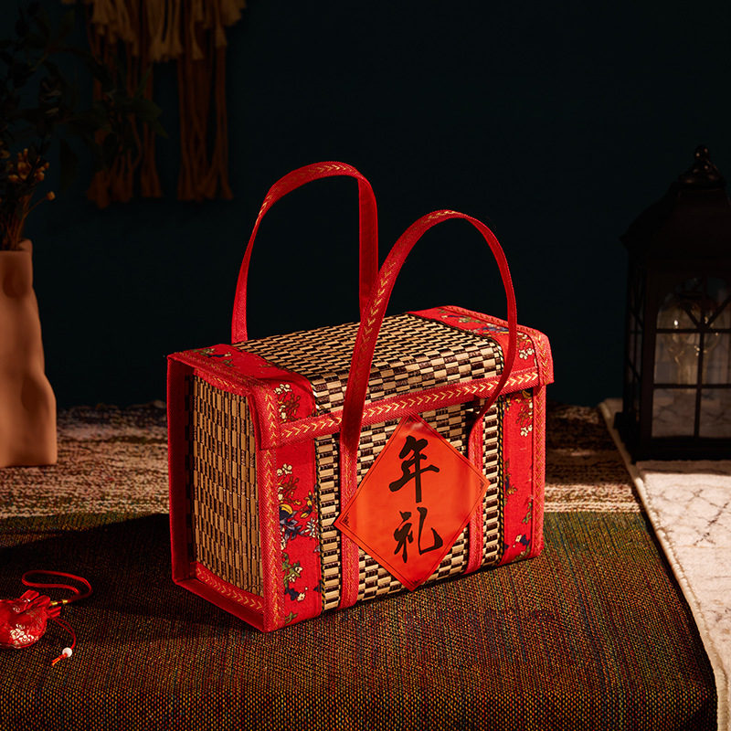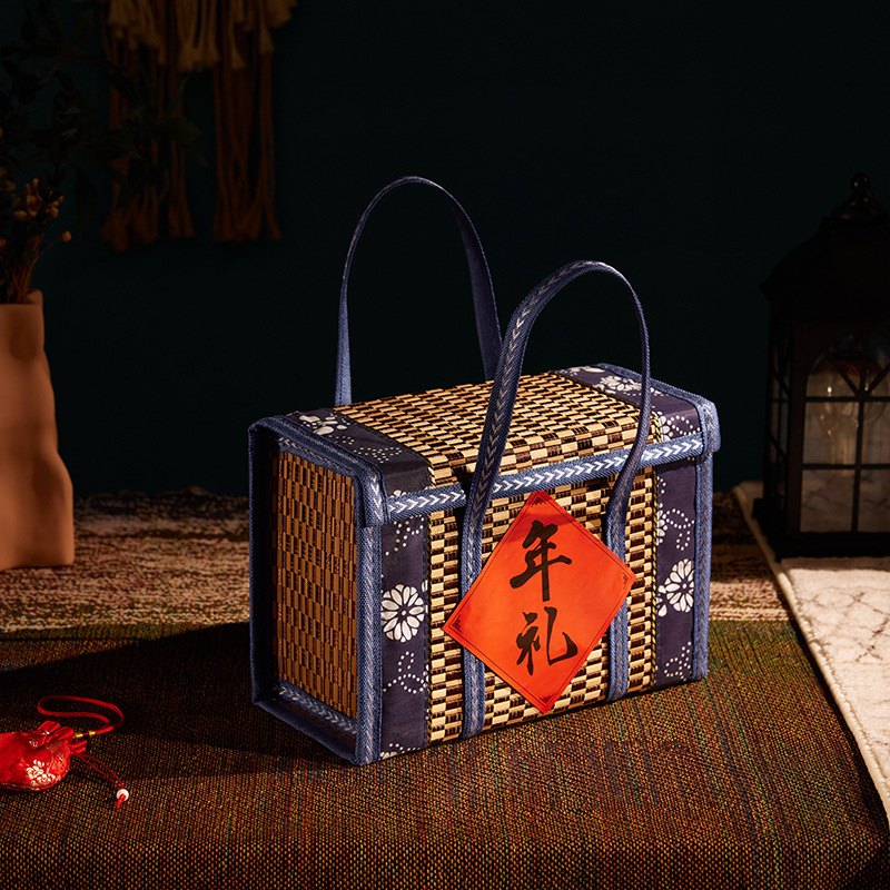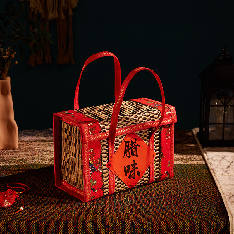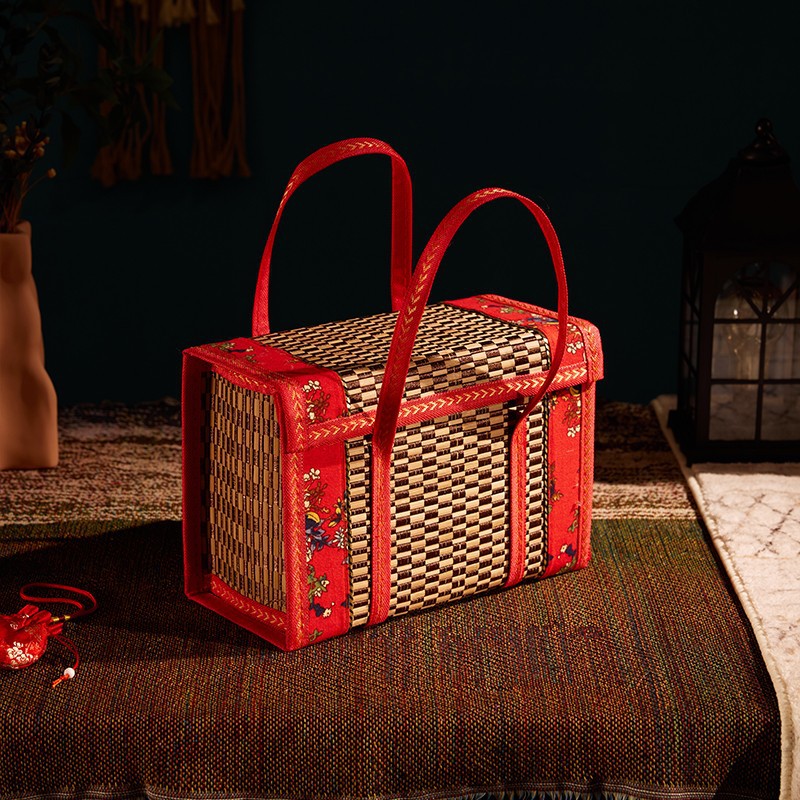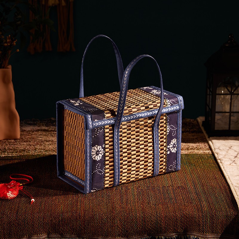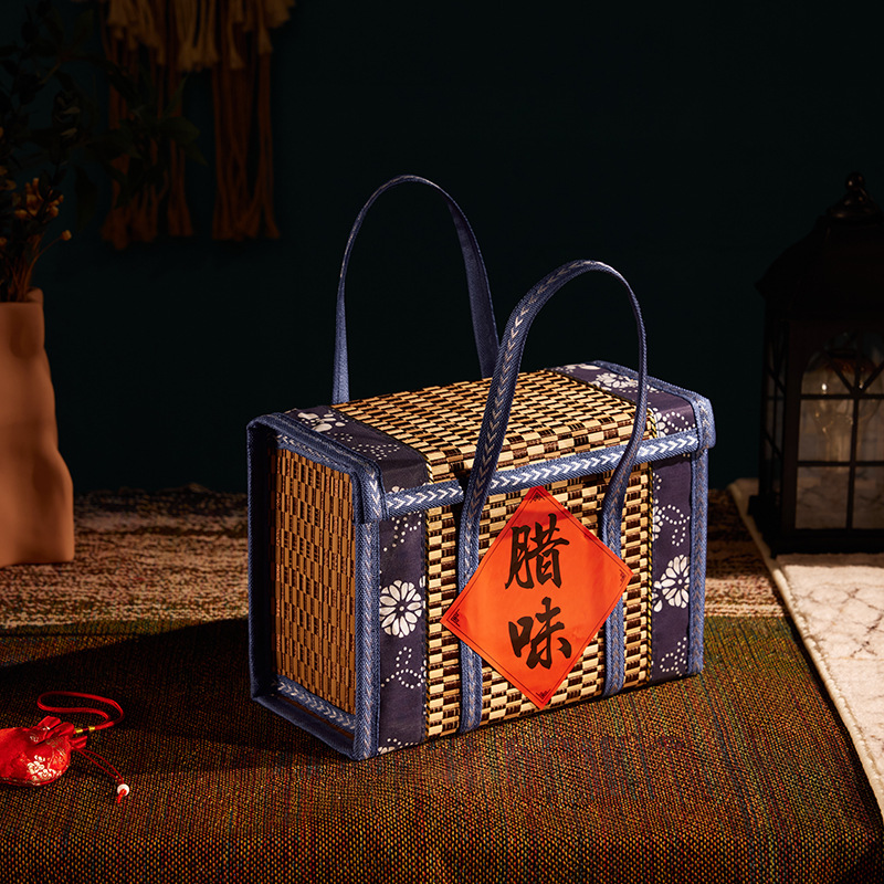 Бамбуковая корзина Ручная корзина рисовая колбаса бекон лунный пирог крабовое яйцо фрукты специальные продукты складная бамбуковая коробка для упаковки