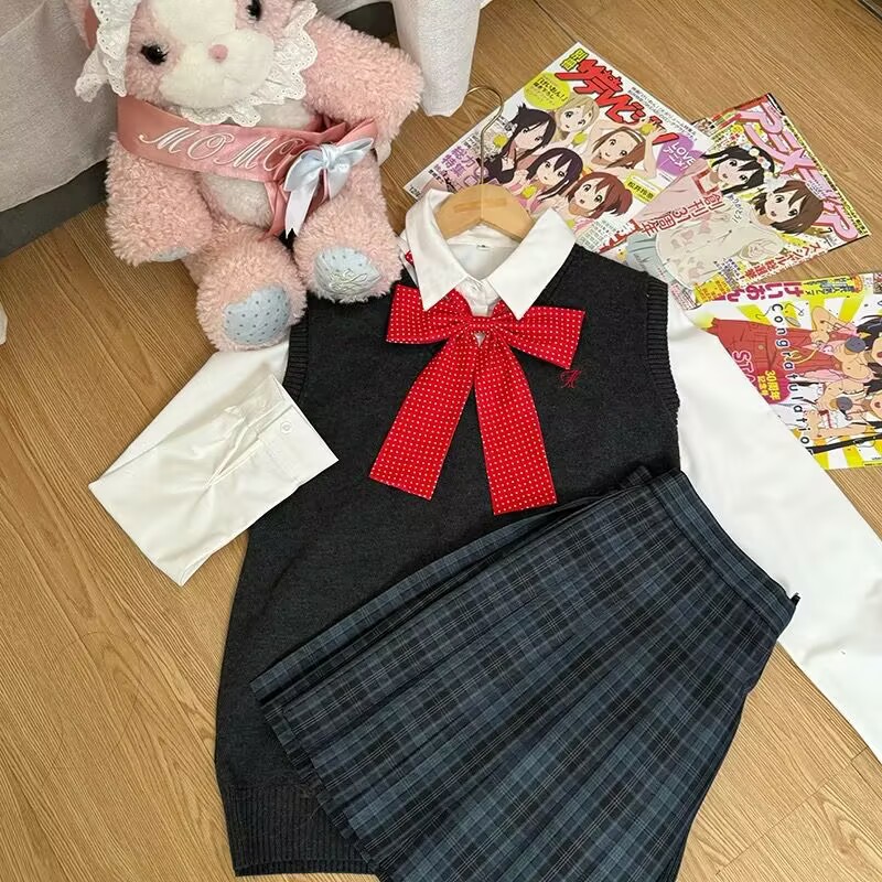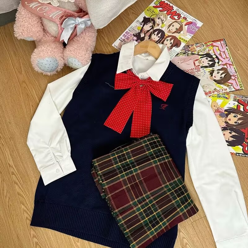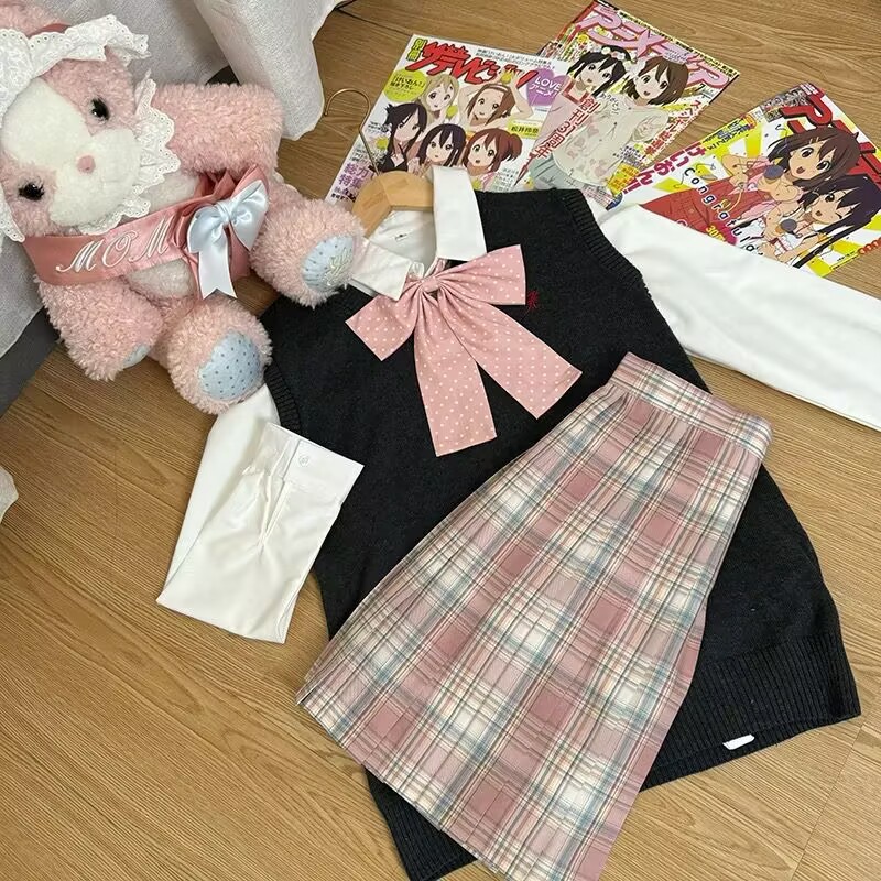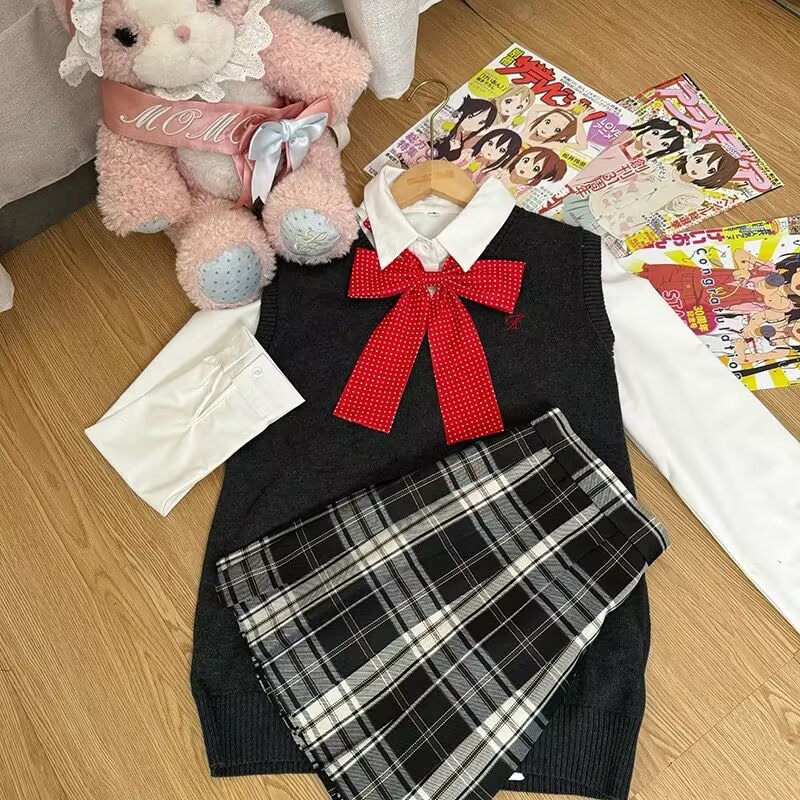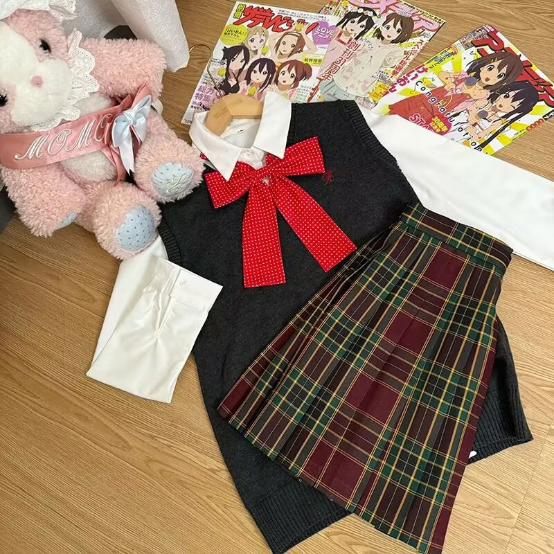 Темно-серая жилетка + рубашка с длинными рукавами + клетчатая юбка Хацунэ + зеленый галстук-бабочка; Темно-серая жилетка + большая синяя клетчатая юбка + рубашка с длинными рукавами + красный галстук-бабочка в горошек; Темно-серая жилетка + клетчатая юбка из морских водорослей + рубашка с длинными рукавами + красный галстук-бабочка в горошек; Темно-серая жилетка + клетчатая юбка глоду + рубашка с длинными рукавами + красный галстук-бабочка в горошек; Темно-серая жилетка + черно-белая клетчатая юбка + рубашка с длинными рукавами + красный галстук-бабочка в горошек; Темно-серая жилетка + не только согревающая клетчатая юбка + рубашка с длинными рукавами + розовый галстук-бабочка в горошек; Темно-синий жилет + клетчатая юбка глоду + рубашка с длинными рукавами + красный галстук-бабочка в горошек; Темно-синий жилет + согревающая клетчатая юбка + рубашка с длинными рукавами + темно-синий галстук-бабочка в горошек; Коричневый жилет + клетчатая юбка глоду + рубашка с длинными рукавами + красный галстук-бабочка в горошек; Коричневый жилет + маленькая коричневая клетчатая юбка + рубашка с длинными рукавами + красный галстук-бабочка в горошек; Коричневый жилет + юбка в клетку любви оранжевого цвета + рубашка с длинными рукавами + красный галстук-бабочка в горошек; Розовый жилет + более теплая клетчатая юбка + рубашка с длинными рукавами + розовый галстук-бабочка; Розовый жилет + клетчатая юбка Yunyao + рубашка с длинными рукавами + розовый галстук-бабочка; Розовый жилет + клетчатая юбка Pomelo Love Letter + рубашка с длинными рукавами + розовый галстук-бабочка; Желтый жилет + клетчатая юбка со свежим молочным пудингом + рубашка с длинными рукавами + розовый галстук-бабочка в горошек; Желтый жилет + клетчатая юбка Pomelo Love Letter + рубашка с длинными рукавами + розовый галстук-бабочка в горошек; Светло-серый жилет + не только согревающая клетчатая юбка + рубашка с длинными рукавами + розовый галстук-бабочка; Светло-серый жилет + клетчатая юбка Yunya + рубашка с длинными рукавами + розовый галстук-бабочка