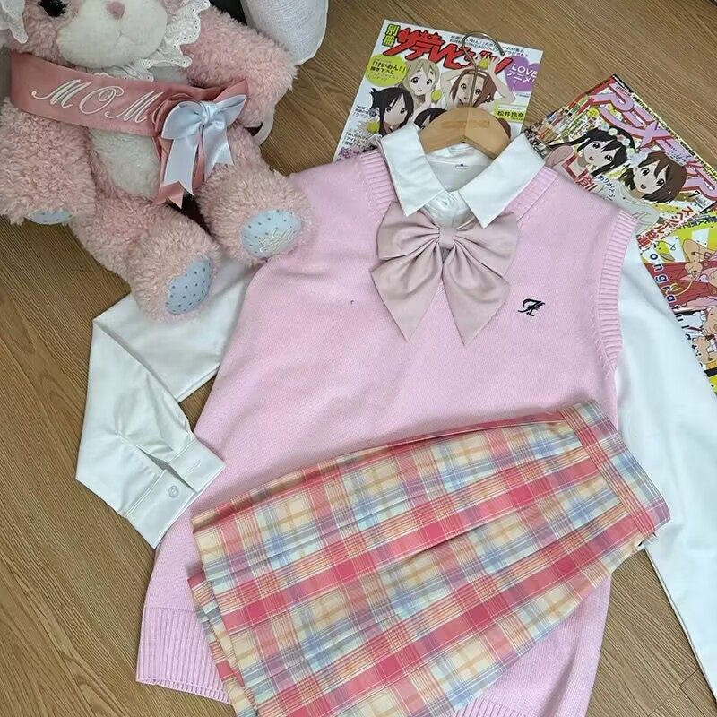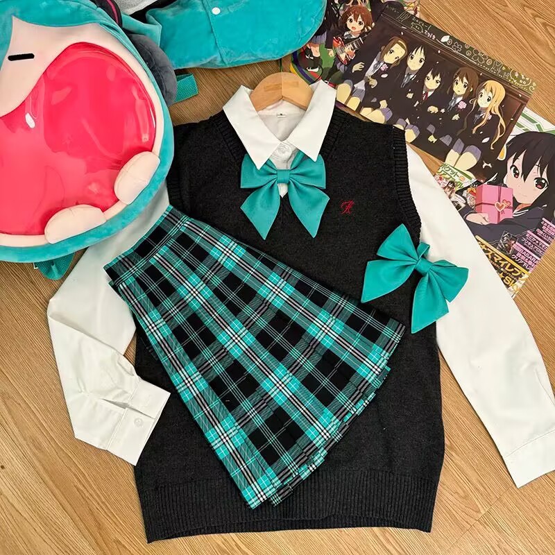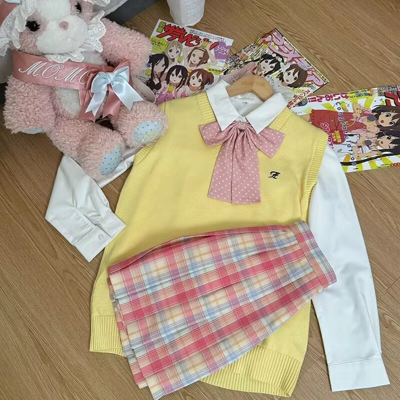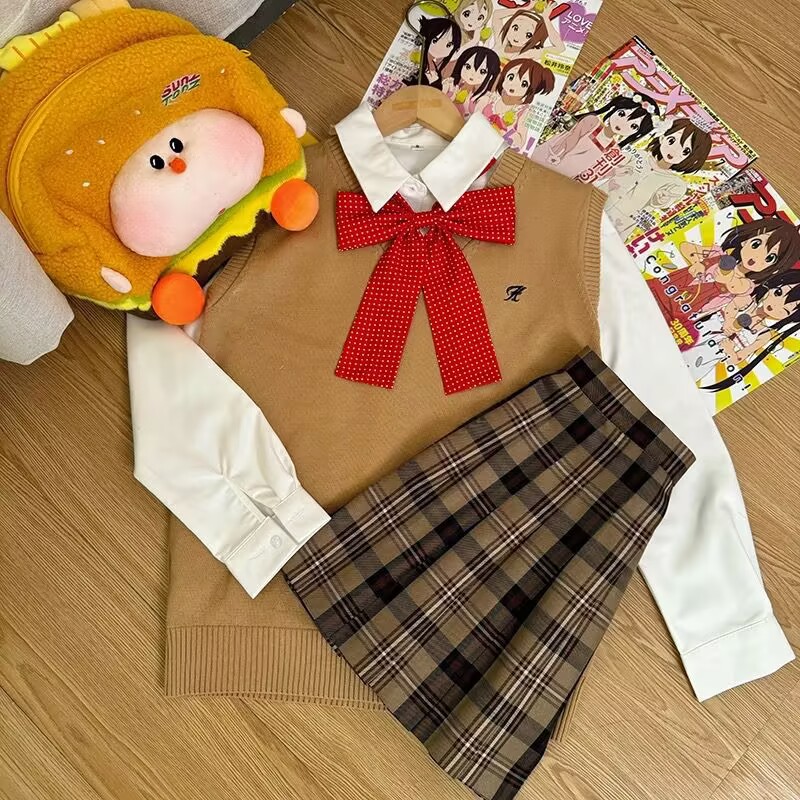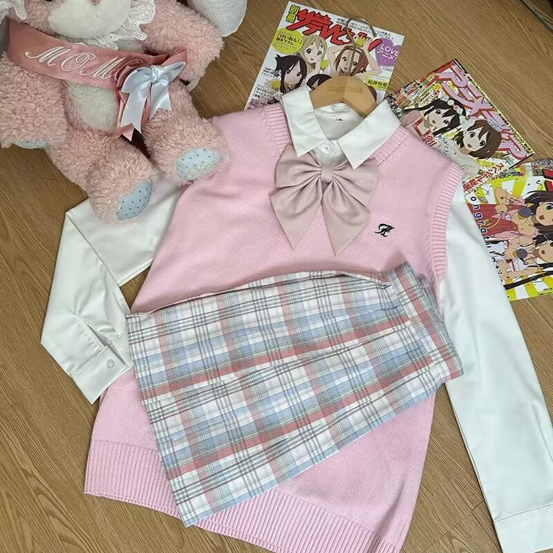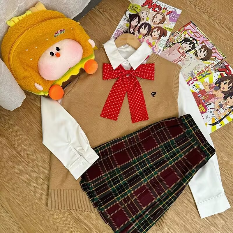 Темно-серая жилетка + рубашка с длинными рукавами + клетчатая юбка Хацунэ + зеленый галстук-бабочка; Темно-серая жилетка + большая синяя клетчатая юбка + рубашка с длинными рукавами + красный галстук-бабочка в горошек; Темно-серая жилетка + клетчатая юбка из морских водорослей + рубашка с длинными рукавами + красный галстук-бабочка в горошек; Темно-серая жилетка + клетчатая юбка глоду + рубашка с длинными рукавами + красный галстук-бабочка в горошек; Темно-серая жилетка + черно-белая клетчатая юбка + рубашка с длинными рукавами + красный галстук-бабочка в горошек; Темно-серая жилетка + не только согревающая клетчатая юбка + рубашка с длинными рукавами + розовый галстук-бабочка в горошек; Темно-синий жилет + клетчатая юбка глоду + рубашка с длинными рукавами + красный галстук-бабочка в горошек; Темно-синий жилет + согревающая клетчатая юбка + рубашка с длинными рукавами + темно-синий галстук-бабочка в горошек; Коричневый жилет + клетчатая юбка глоду + рубашка с длинными рукавами + красный галстук-бабочка в горошек; Коричневый жилет + маленькая коричневая клетчатая юбка + рубашка с длинными рукавами + красный галстук-бабочка в горошек; Коричневый жилет + юбка в клетку любви оранжевого цвета + рубашка с длинными рукавами + красный галстук-бабочка в горошек; Розовый жилет + более теплая клетчатая юбка + рубашка с длинными рукавами + розовый галстук-бабочка; Розовый жилет + клетчатая юбка Yunyao + рубашка с длинными рукавами + розовый галстук-бабочка; Розовый жилет + клетчатая юбка Pomelo Love Letter + рубашка с длинными рукавами + розовый галстук-бабочка; Желтый жилет + клетчатая юбка со свежим молочным пудингом + рубашка с длинными рукавами + розовый галстук-бабочка в горошек; Желтый жилет + клетчатая юбка Pomelo Love Letter + рубашка с длинными рукавами + розовый галстук-бабочка в горошек; Светло-серый жилет + не только согревающая клетчатая юбка + рубашка с длинными рукавами + розовый галстук-бабочка; Светло-серый жилет + клетчатая юбка Yunya + рубашка с длинными рукавами + розовый галстук-бабочка