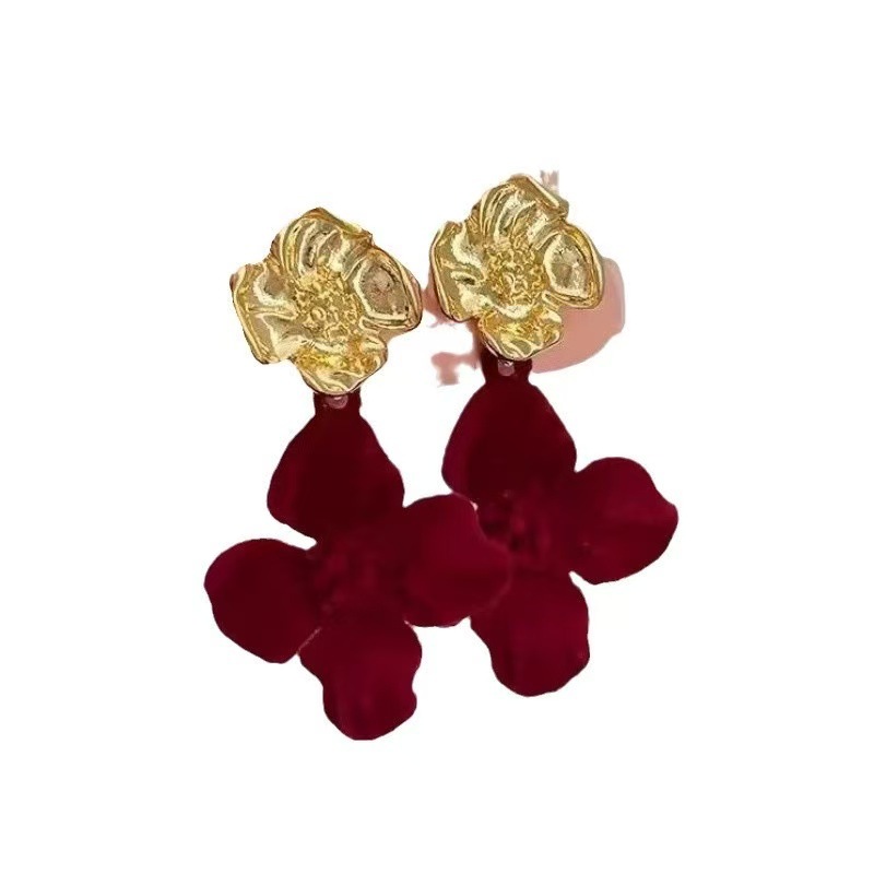 Специальное предложение: винтажные бархатные серьги с цветочным узором в контрастных тонах, осенне-зимние, элитные, элегантные и эффектные банкетные серьги, цвет Ancora red.