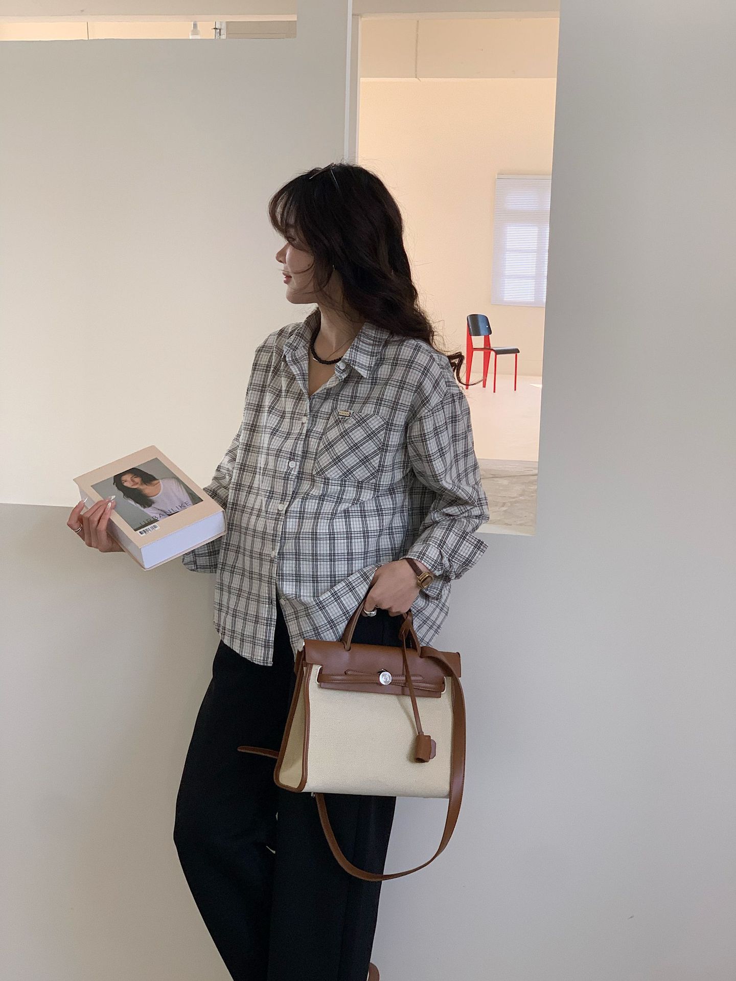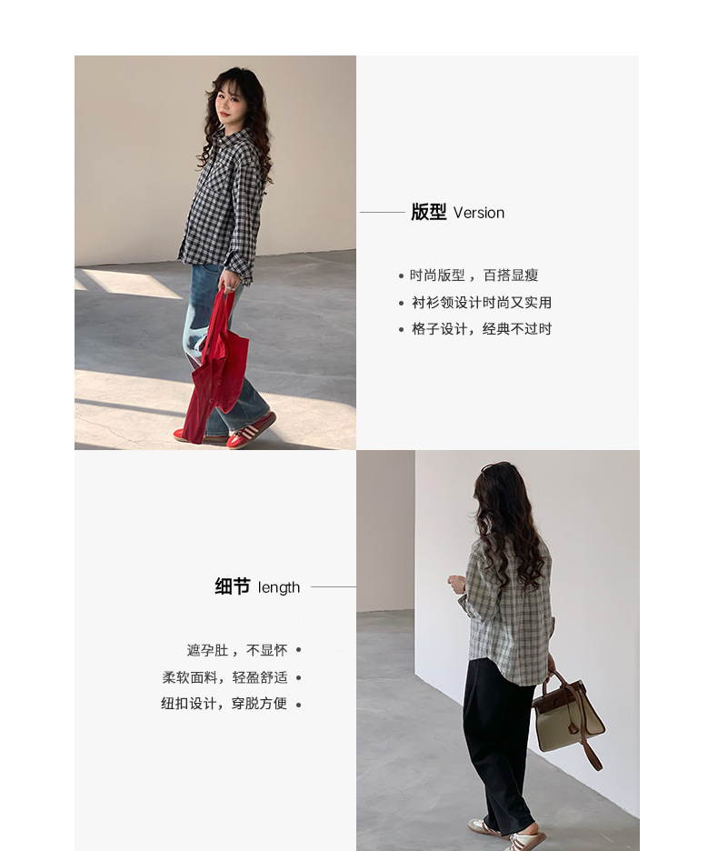 Весенняя новая корейская версия платья для беременных с отворотом в клетку рубашка модная повседневная дышащая кожа с длинными рукавами на рубашке для беременных