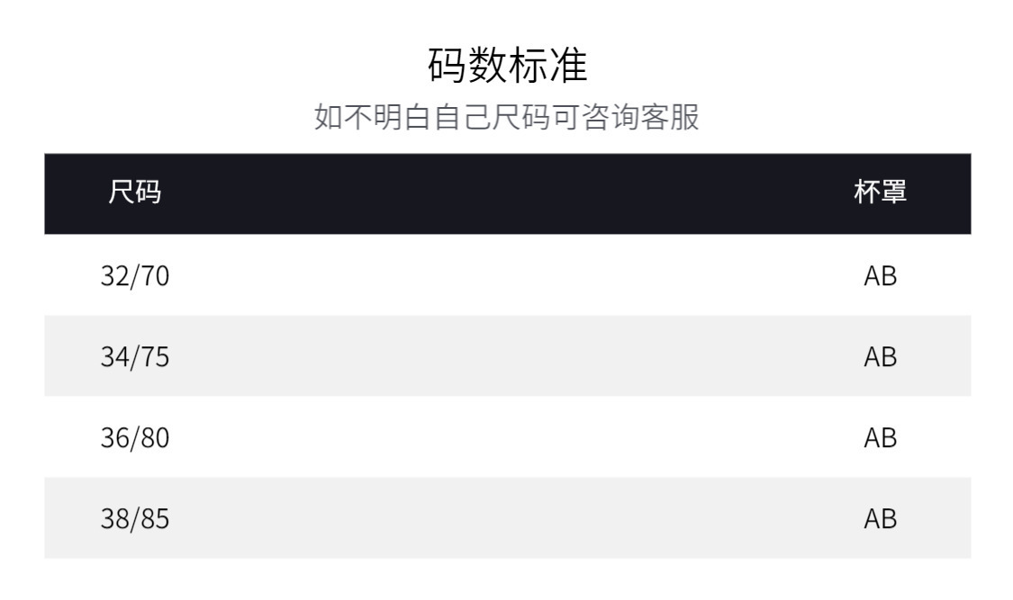 S【32/70ABC】; Размер М [34/75ABC]; Размер L [36/80ABC]; Код XL [38/85ABC]