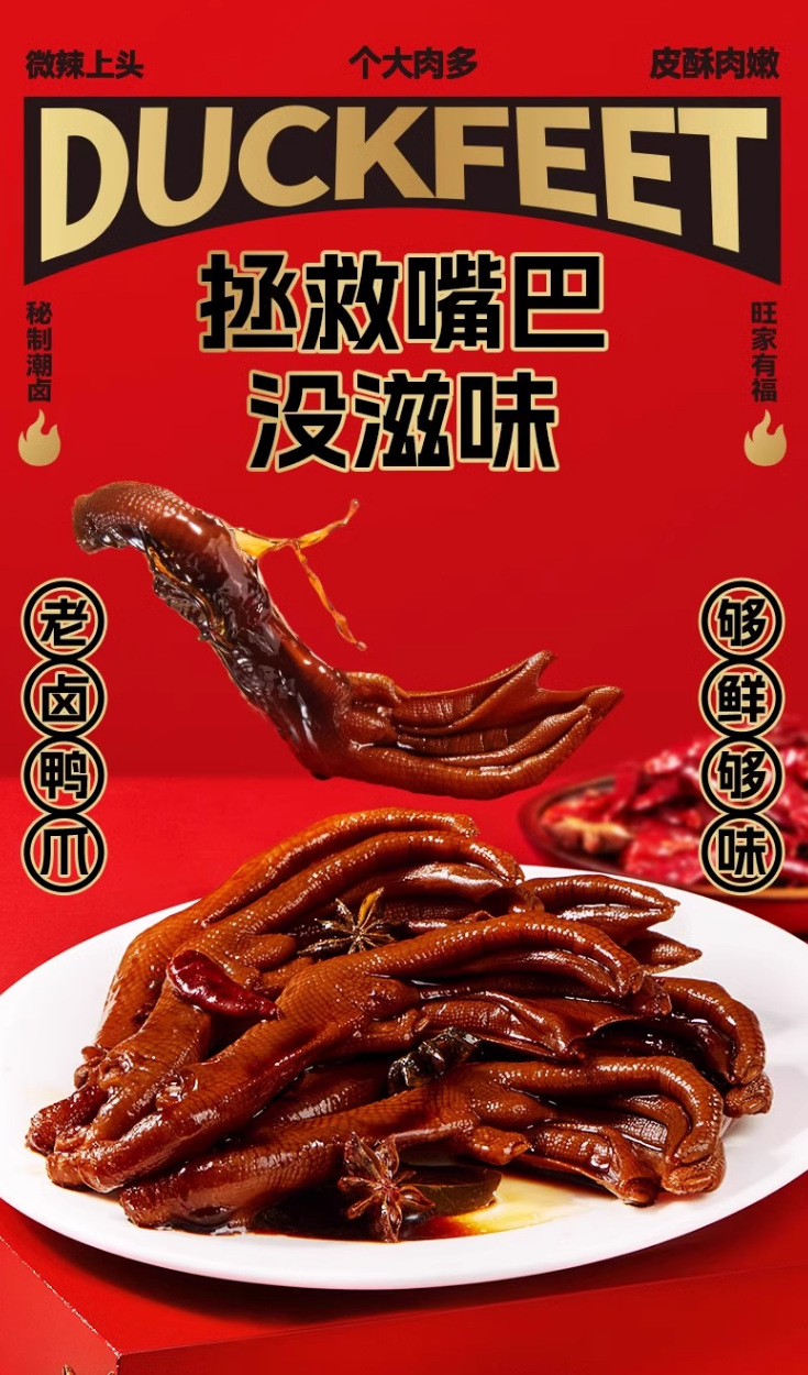 Вангцзяфу тушеные утиные лапки и лапки утки, острые смешанные тушеные утиные мясные закуски, готовые к употреблению, оптом для офиса