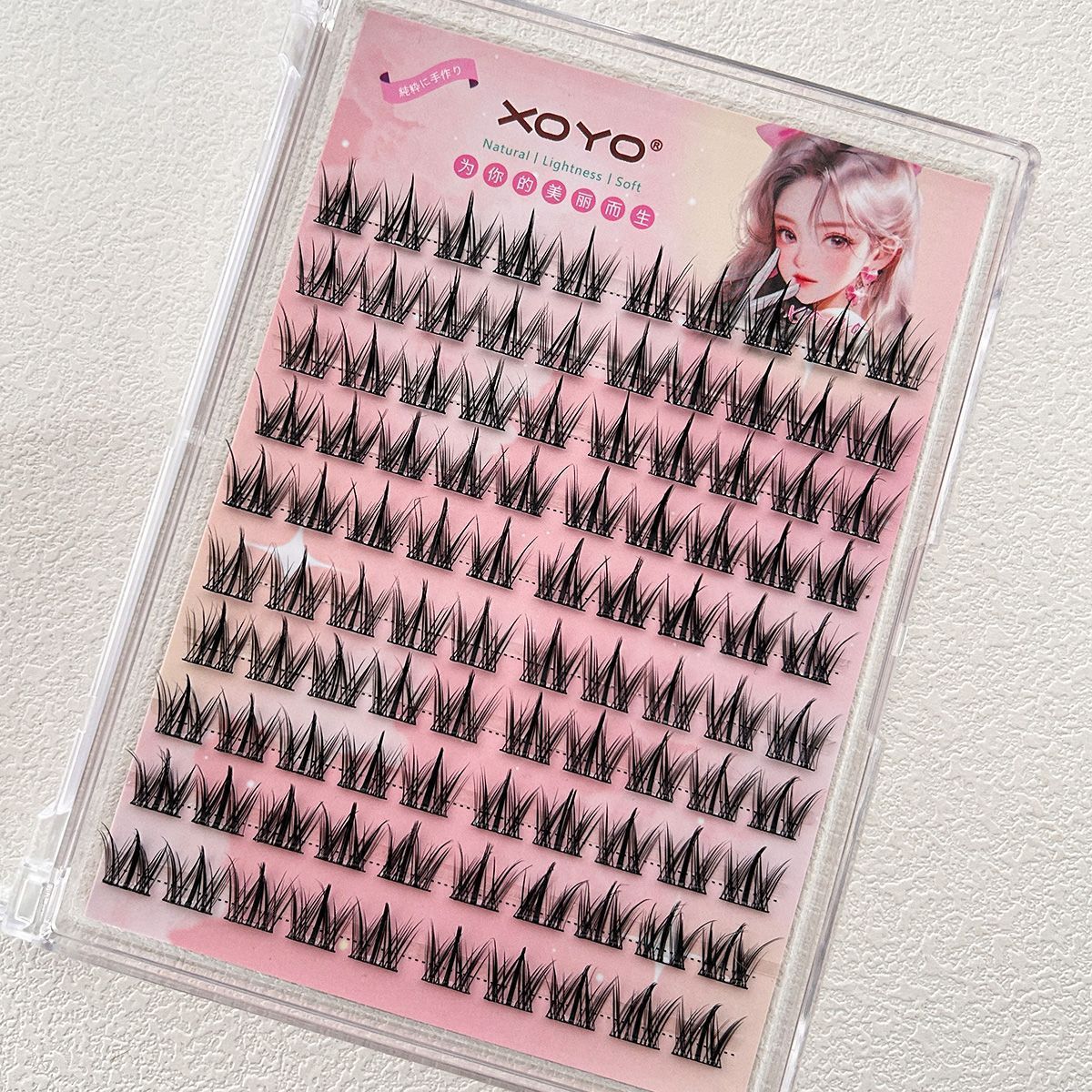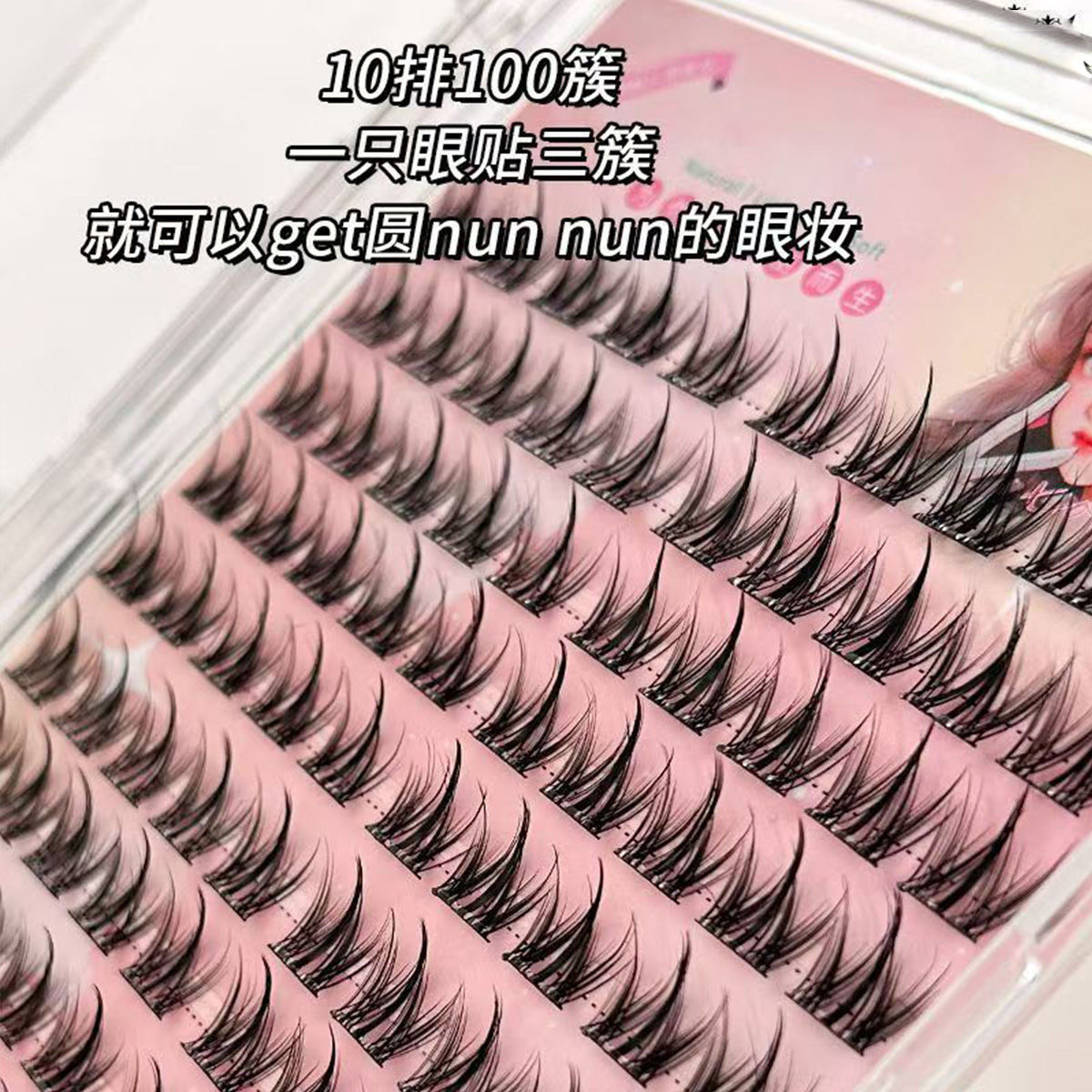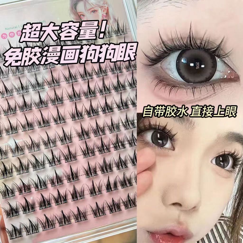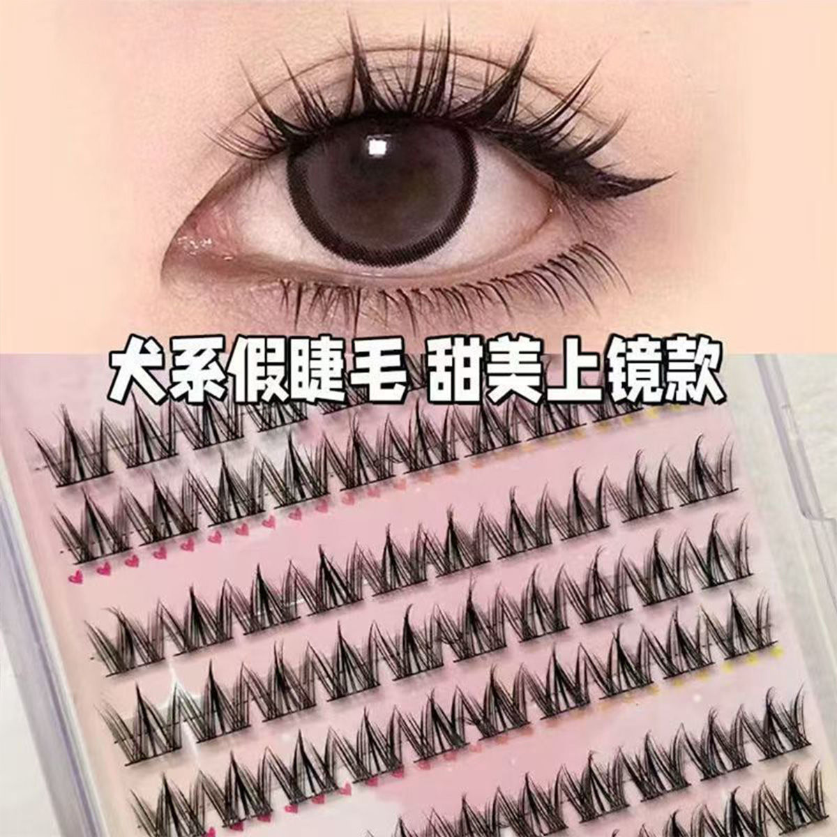 100 пучков накладных ресниц в стиле «собачьи глазки», без клея, густые и естественные, для начинающих, сегментированные, для создания естественного объема.