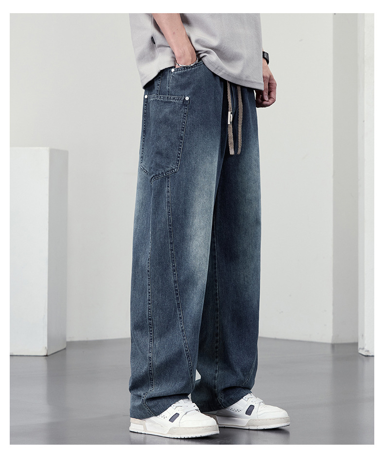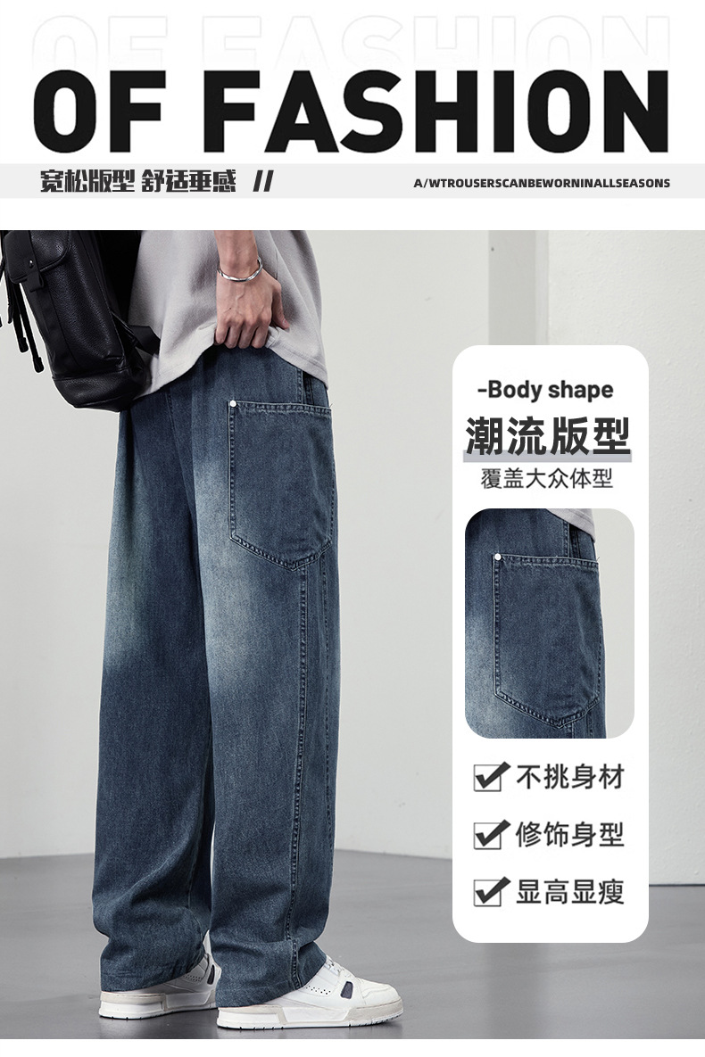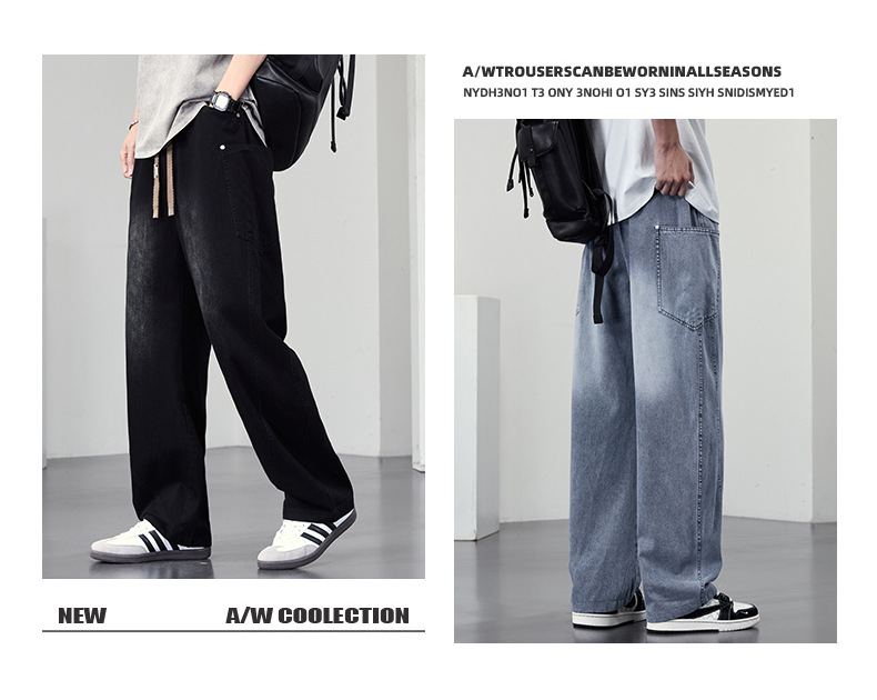 JYF-2575 джинсы Мужские 2025 весенние свободные прямые повседневные брюки подростковая стирка в американском стиле