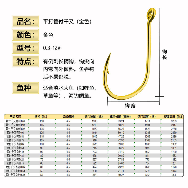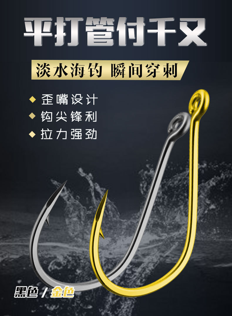 Плоская труба-тысяча и золотой черный кривой рот с колючим широким крючком